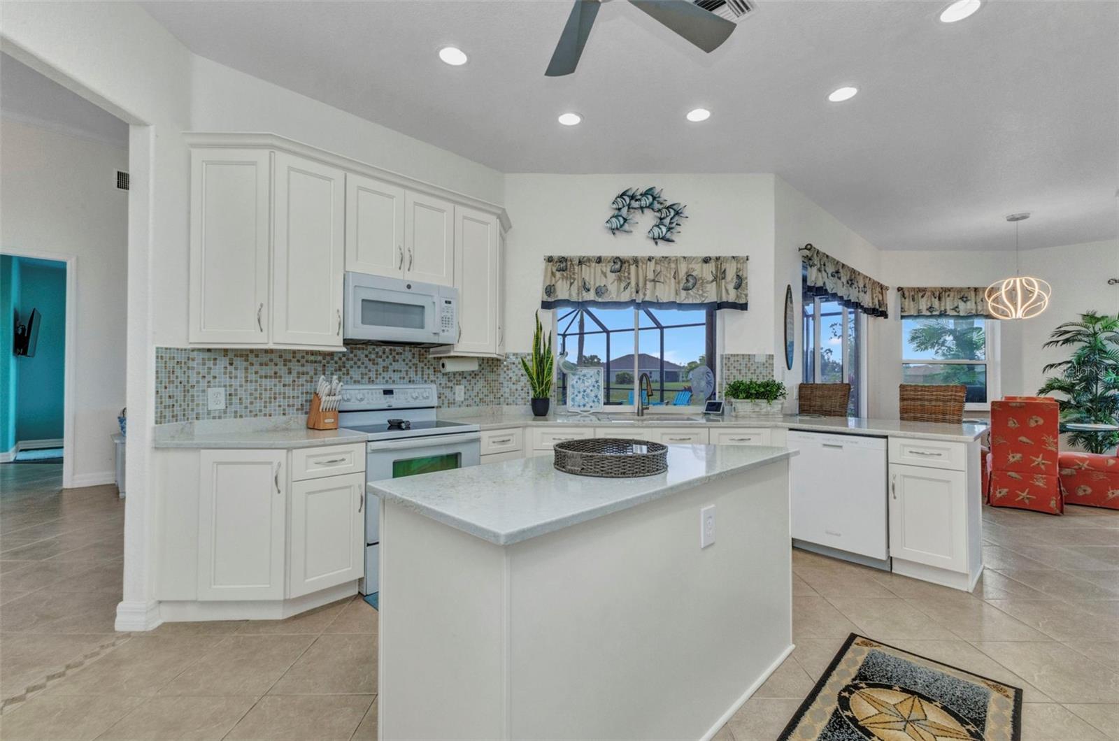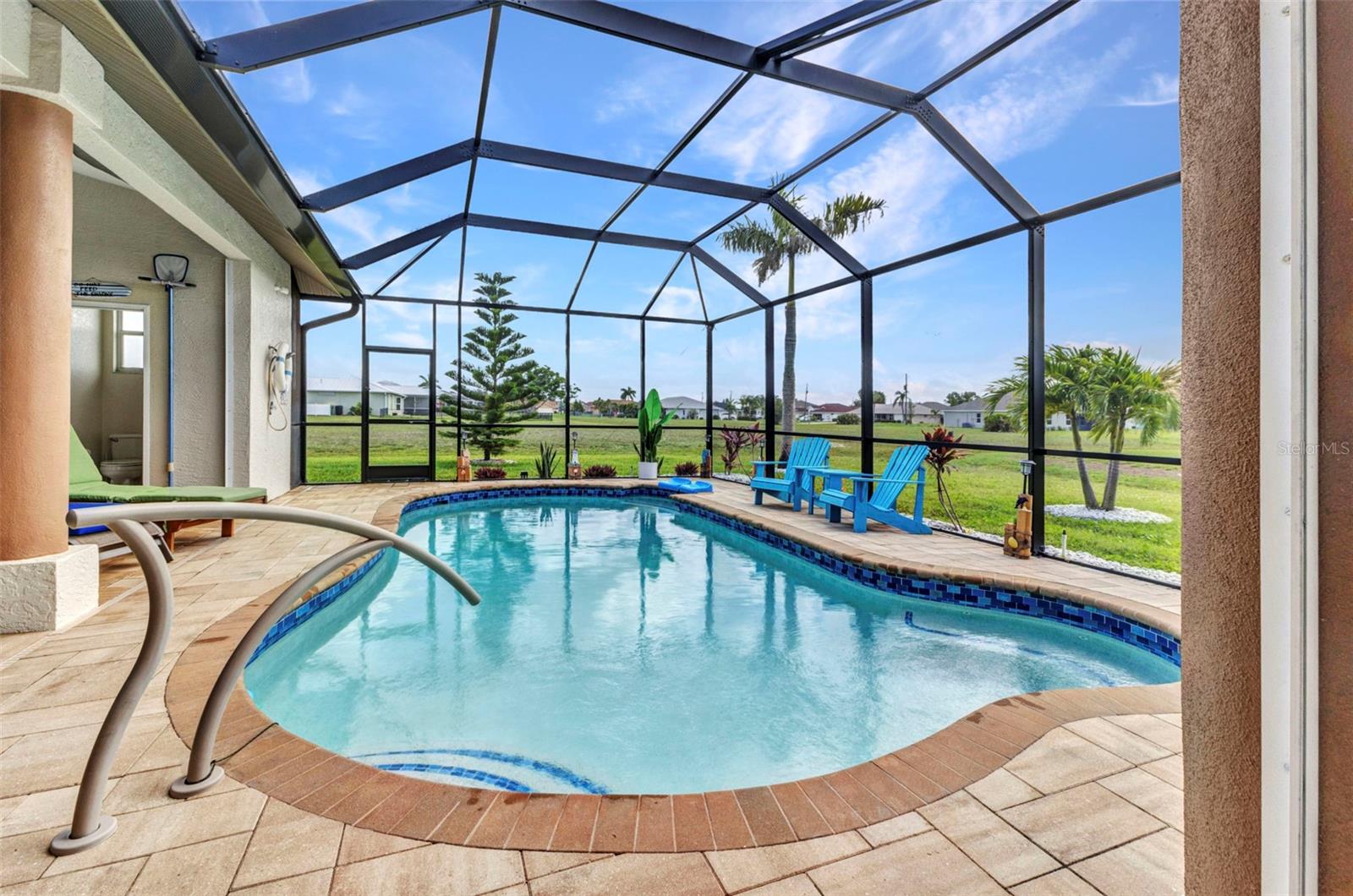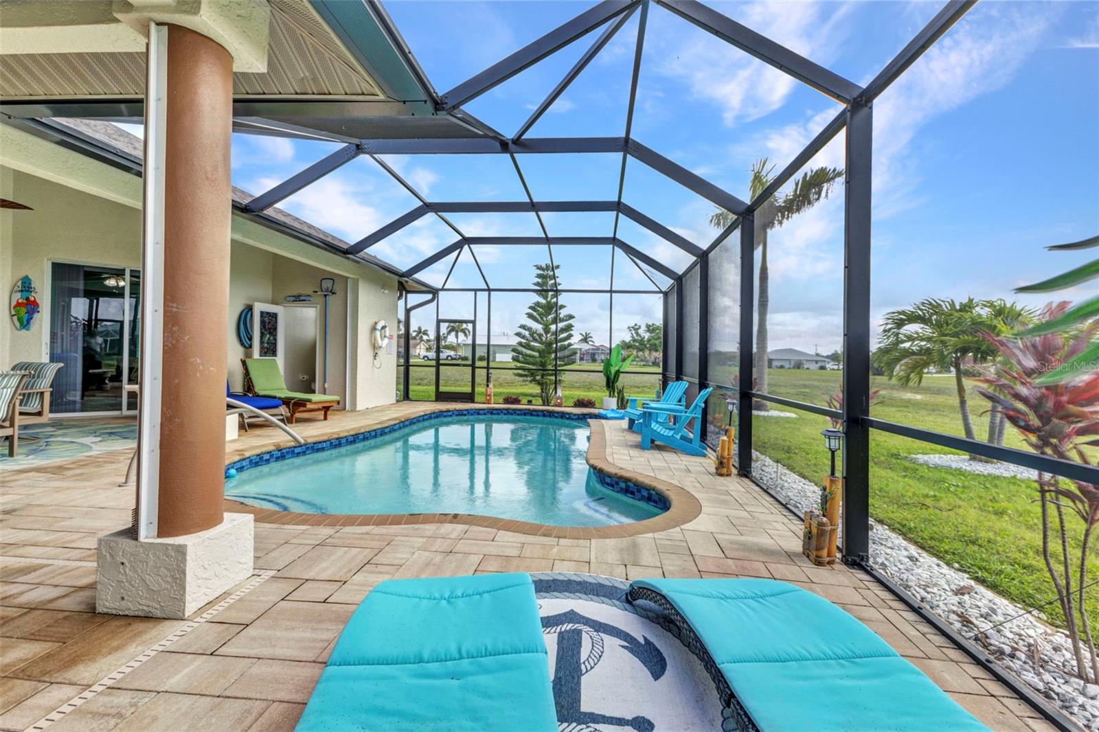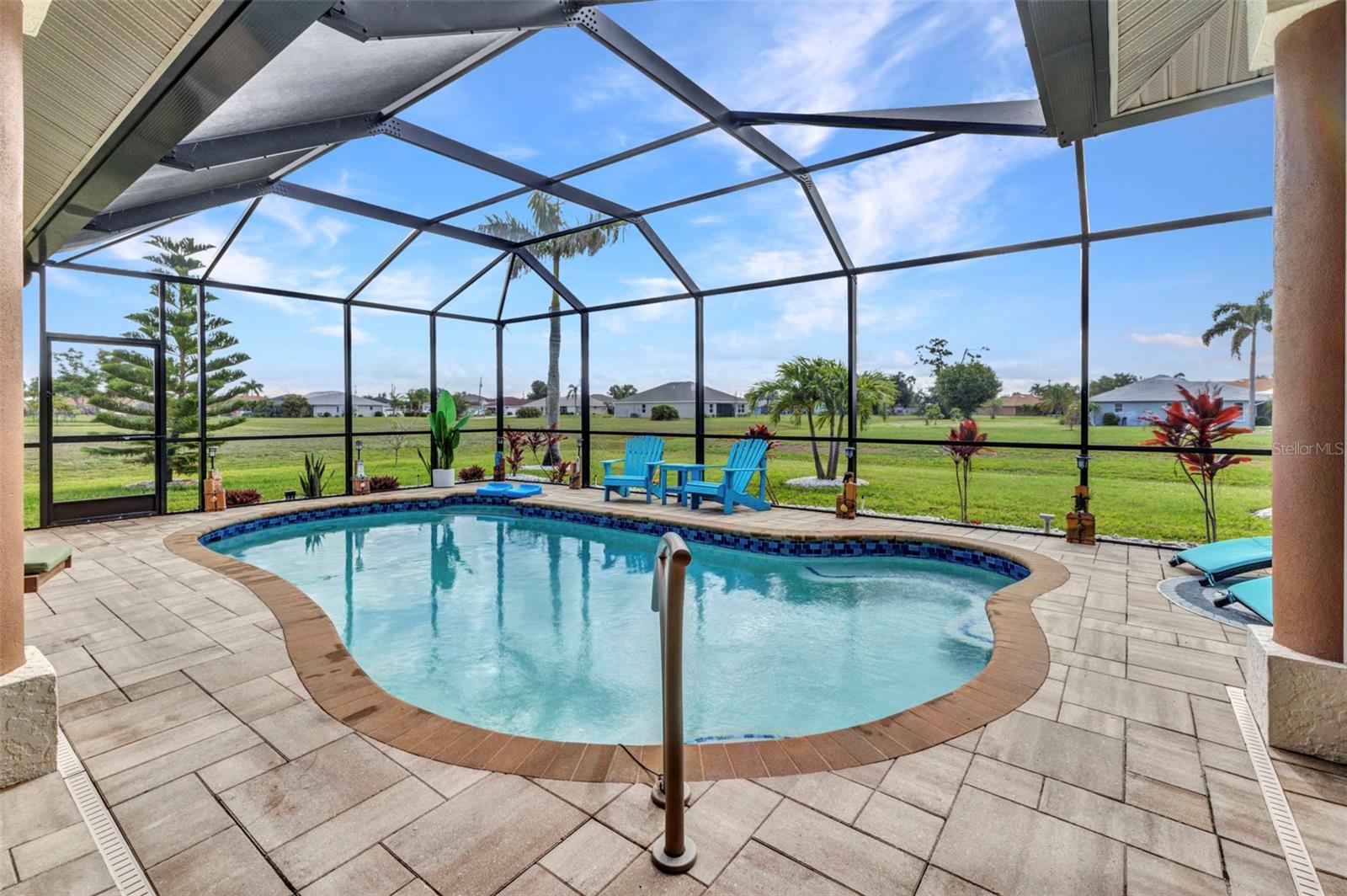 Welcome to 1499 Nuremberg Blvd, a well-maintained home located in the highly desired community of Deep Creek in beautiful Southwest Florida. This home features three bedrooms, two full bathrooms, one half bathroom, a two car garage, and a generous 2,198 square feet of living space, making this home a must see for all types of buyers! On top of those great features, you also get a large heated pool that not only has color changing LED lights but is also 6ft deep at one end and lies within a screened-in lanai with high quality bug proof screening that was done just two years ago. The view from your screened-in lanai is priceless as this great home sits on not one, but two expansive greenbelts giving you additional space and privacy to the side and rear. The layout of this home flows nicely, and from the moment you enter the front door you will be immediately presented with the vast views through the formal living room and into the lanai and beyond! On the left of the home you will find your primary bedroom suite with an oversized bedroom, two large walk-in closest, and a spacious bathroom with a convenient fan to help keep you cool while getting ready. Continuing to the right of the home you will find an area at the front of the home perfect for a formal dining room or office space. Beyond that you enter into the large kitchen with crown molding, plenty of cabinets, quartz countertops, and quite spacious family room, both with grand views of the lanai and into the community. Finally on the right side of this spectacular home you will find your two bedrooms, second full bathroom, and laundry room with exterior door leading to the garage. Let’s now head to the pool area and you will quickly realize you are entering paradise. Sparkling heated water, endless views, a half bathroom, pool shower, and plenty of room under cover or in the open make this space in the home quite often a favored spot for all. From get togethers to quietly relaxing, whatever your mind can think of can be achieved out here! Back inside the home we have to mention more great updates and features including the elegant stamped driveway, sliding garage door screen, 13ft ceilings, wifi controlled thermostat, wifi controlled patio lights, ceiling fans in all rooms, additional water treatment system, full covered external security camera system, city water and sewer but well-fed irrigation to save on watering costs, professional landscaping including high end rocks and palm trees, hurricane windows and doors with additional hurricane shutters, 150mps impact Kevlar roll down screens in the lanai, exterior garage door opener, and flood lights around the home. Don’t forget to check out the 3D virtual tour and floorplan to get a great idea of the home layout before calling your favorite real estate agent to see this immaculate home in person! With very low annual HOA Fee of less than $15/month, no flood insurance required, and close proximity to I75 and lots of great shops, dining, and entertainment, this home might be exactly what you have been looking for. You might as well stop by downtown Punta Gorda, which is just about 10 minutes away, and treat yourself to waterfront dining and some of the best fishing and boating Florida has to offer! Welcome to paradise!