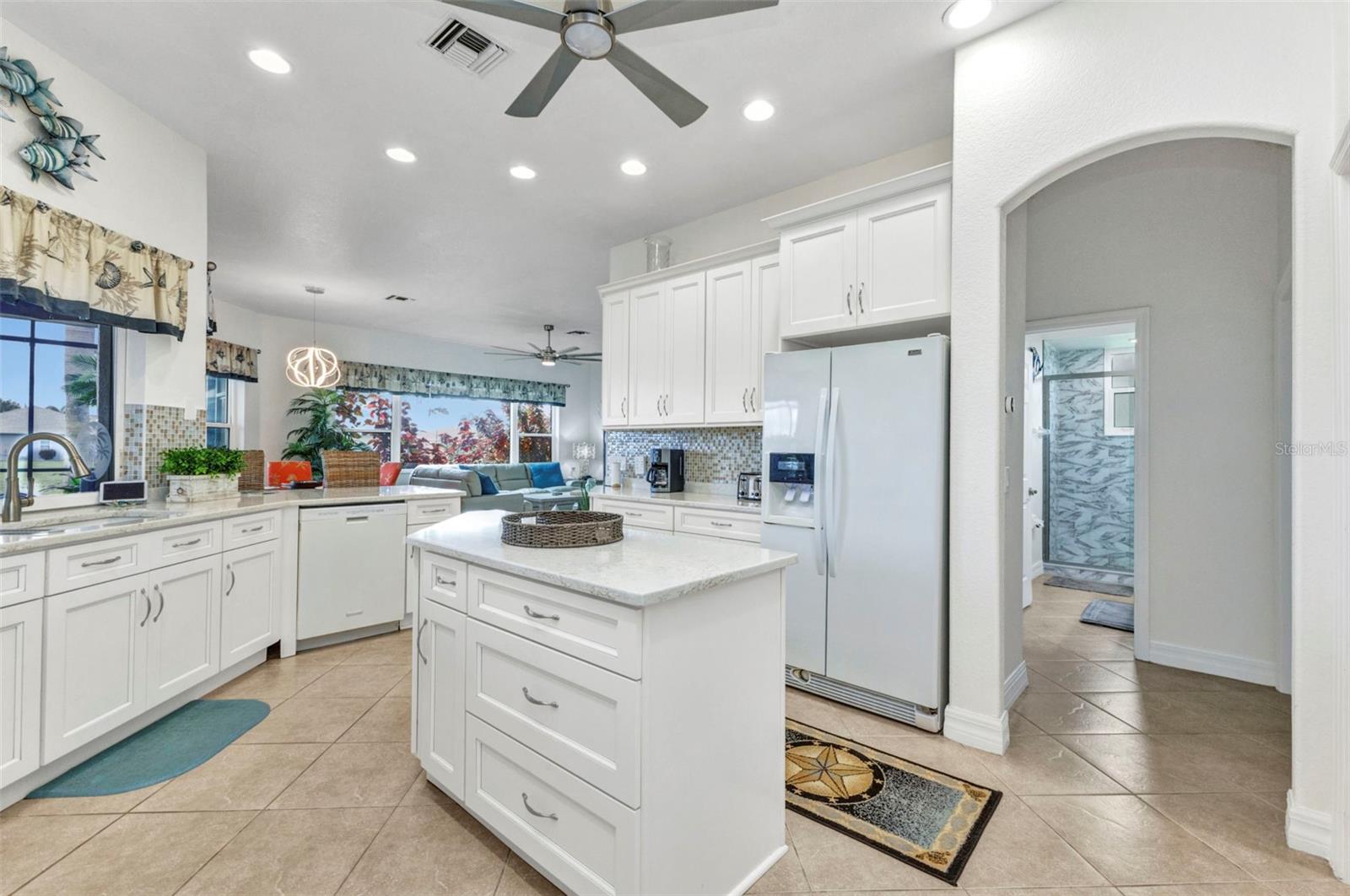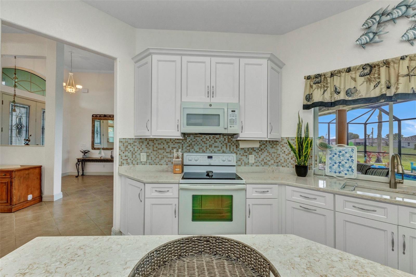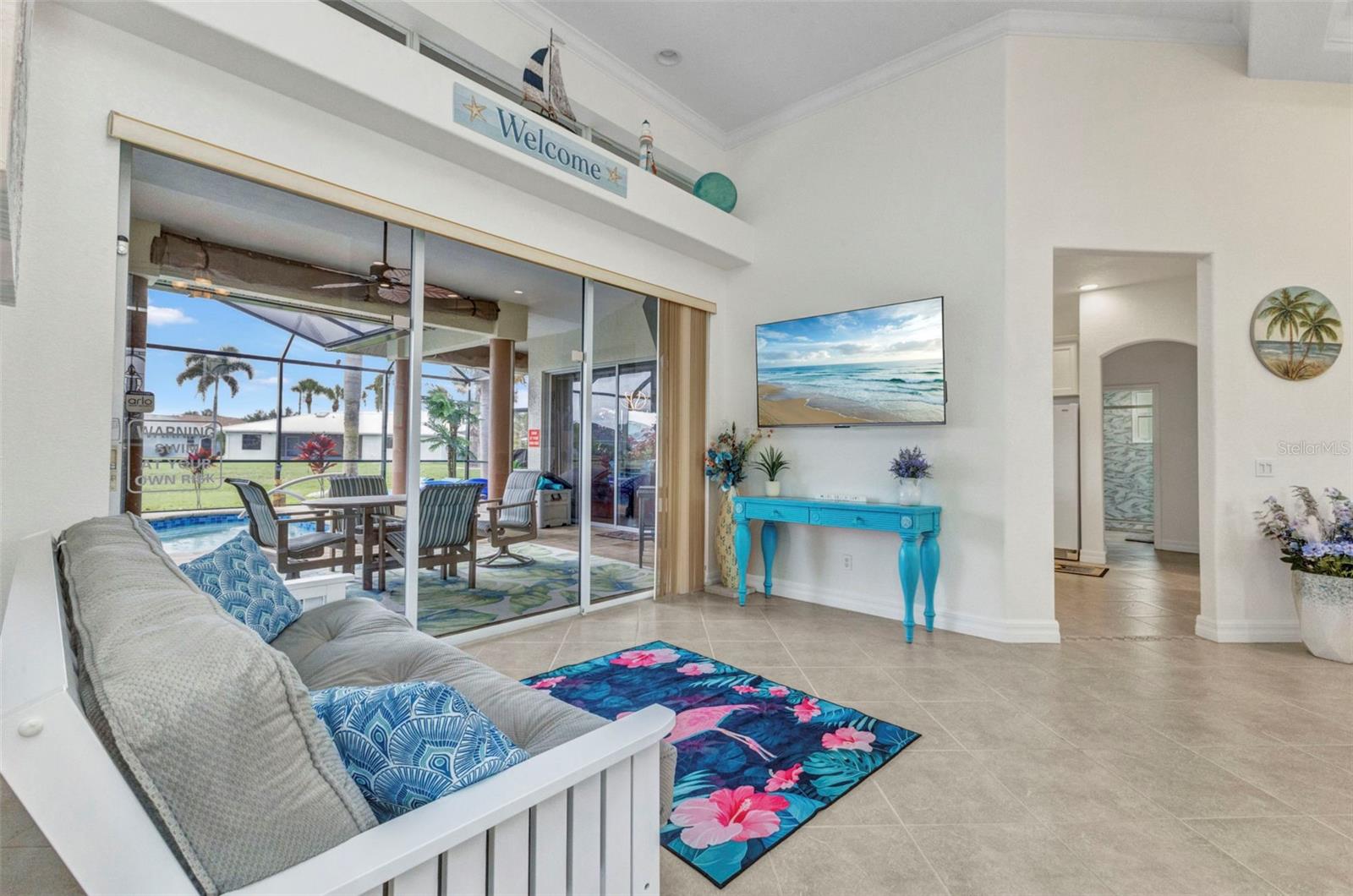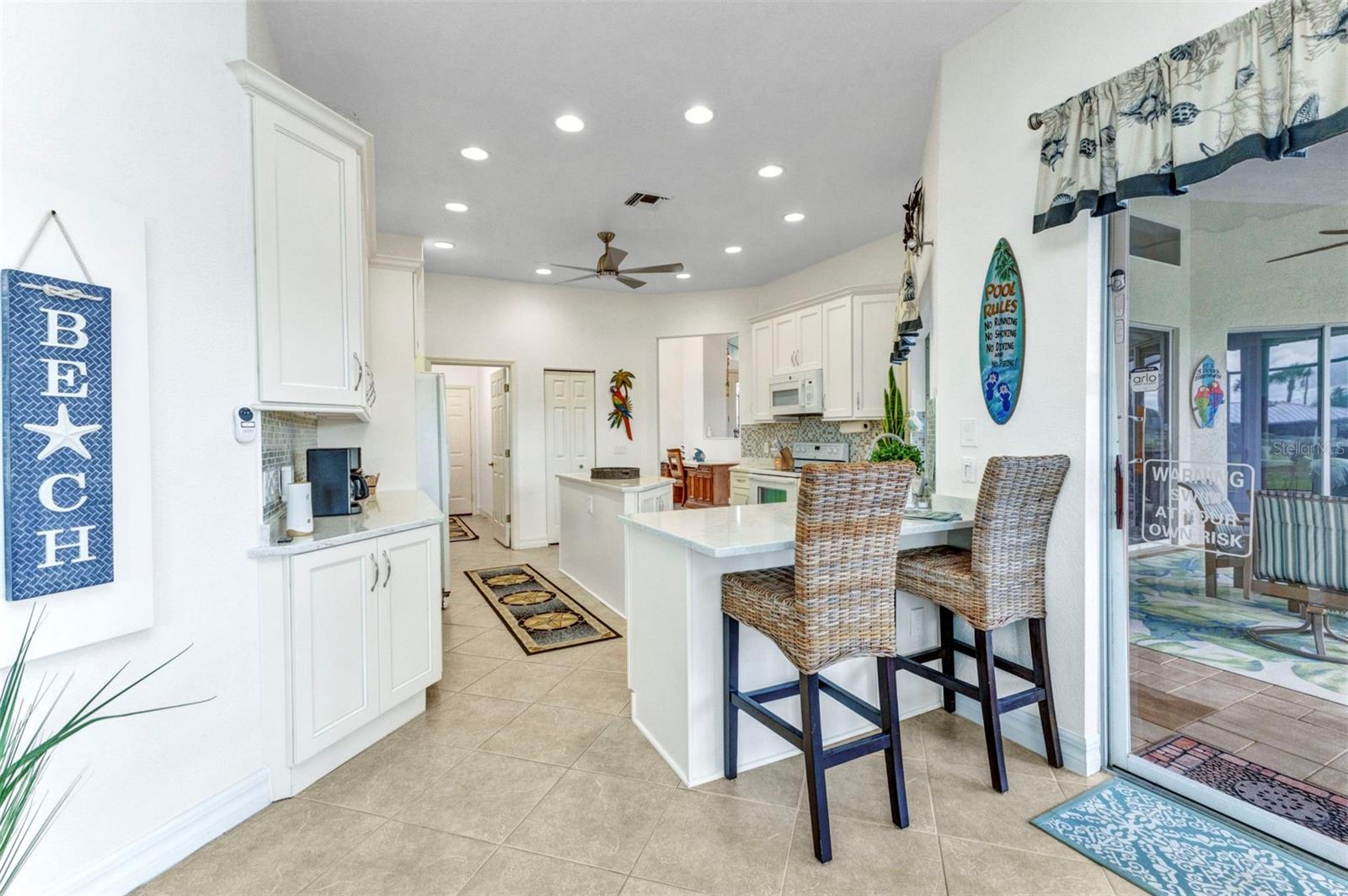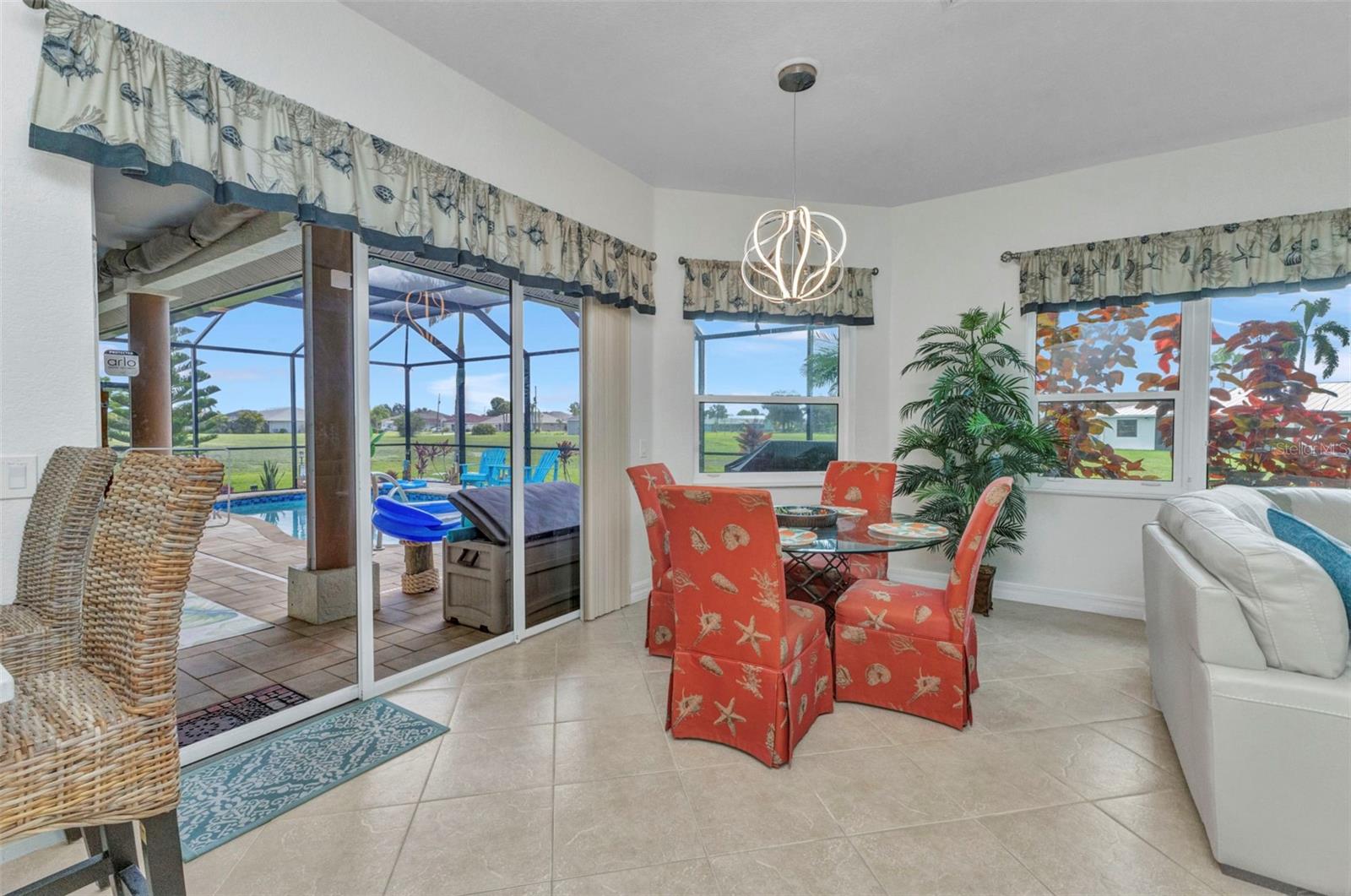 Welcome to 1499 Nuremberg Blvd, a well-maintained home located in the highly desired community of Deep Creek in beautiful Southwest Florida. This home features three bedrooms, two full bathrooms, one half bathroom, a two car garage, and a generous 2,198 square feet of living space, making this home a must see for all types of buyers! On top of those great features, you also get a large heated pool that not only has color changing LED lights but is also 6ft deep at one end and lies within a screened-in lanai with high quality bug proof screening that was done just two years ago. The view from your screened-in lanai is priceless as this great home sits on not one, but two expansive greenbelts giving you additional space and privacy to the side and rear. The layout of this home flows nicely, and from the moment you enter the front door you will be immediately presented with the vast views through the formal living room and into the lanai and beyond! On the left of the home you will find your primary bedroom suite with an oversized bedroom, two large walk-in closest, and a spacious bathroom with a convenient fan to help keep you cool while getting ready. Continuing to the right of the home you will find an area at the front of the home perfect for a formal dining room or office space. Beyond that you enter into the large kitchen with crown molding, plenty of cabinets, quartz countertops, and quite spacious family room, both with grand views of the lanai and into the community. Finally on the right side of this spectacular home you will find your two bedrooms, second full bathroom, and laundry room with exterior door leading to the garage. Let’s now head to the pool area and you will quickly realize you are entering paradise. Sparkling heated water, endless views, a half bathroom, pool shower, and plenty of room under cover or in the open make this space in the home quite often a favored spot for all. From get togethers to quietly relaxing, whatever your mind can think of can be achieved out here! Back inside the home we have to mention more great updates and features including the elegant stamped driveway, sliding garage door screen, 13ft ceilings, wifi controlled thermostat, wifi controlled patio lights, ceiling fans in all rooms, additional water treatment system, full covered external security camera system, city water and sewer but well-fed irrigation to save on watering costs, professional landscaping including high end rocks and palm trees, hurricane windows and doors with additional hurricane shutters, 150mps impact Kevlar roll down screens in the lanai, exterior garage door opener, and flood lights around the home. Don’t forget to check out the 3D virtual tour and floorplan to get a great idea of the home layout before calling your favorite real estate agent to see this immaculate home in person! With very low annual HOA Fee of less than $15/month, no flood insurance required, and close proximity to I75 and lots of great shops, dining, and entertainment, this home might be exactly what you have been looking for. You might as well stop by downtown Punta Gorda, which is just about 10 minutes away, and treat yourself to waterfront dining and some of the best fishing and boating Florida has to offer! Welcome to paradise!