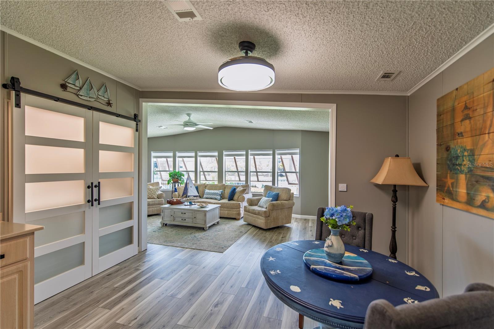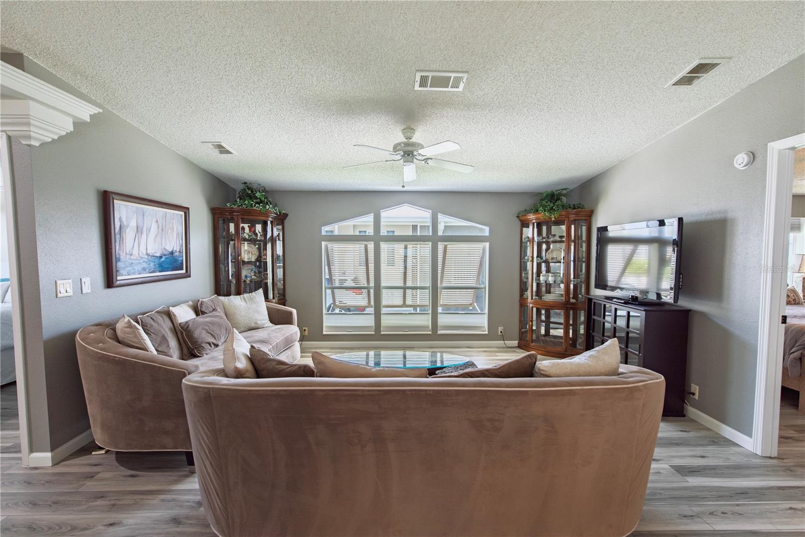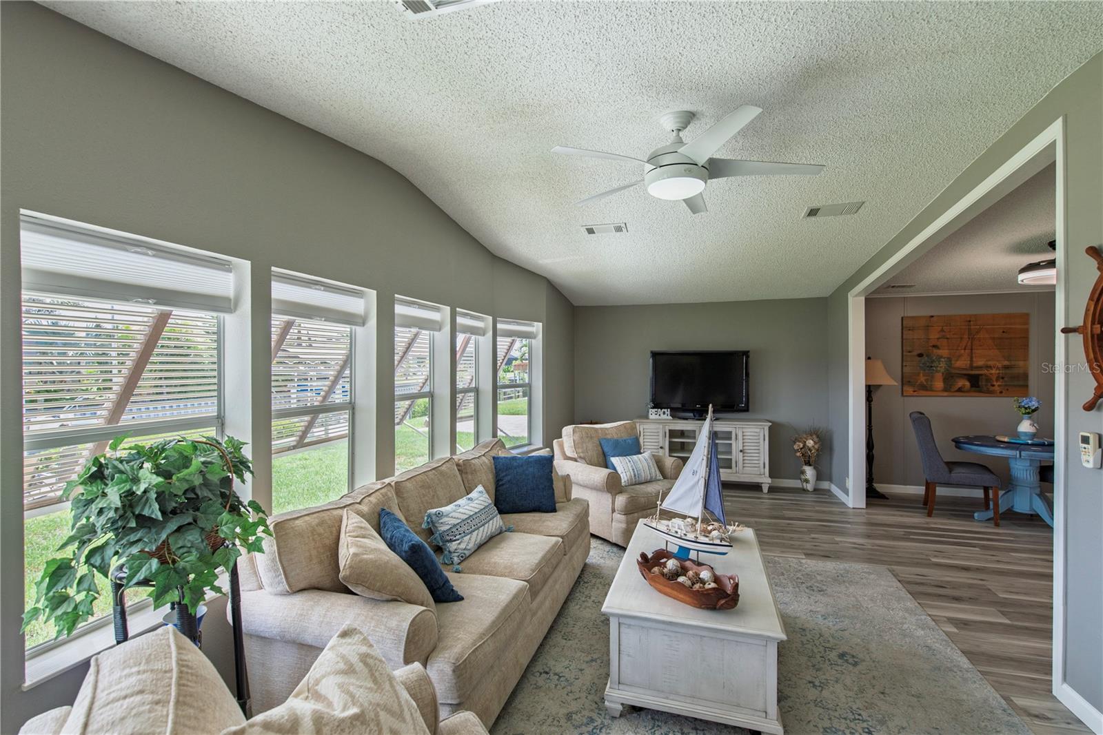 Discover your dream home in the vibrant, resident-owned 55+ Windmill Village, a stunning waterfront community! This waterfront spacious 3-bedroom, 2-bathroom home boasts 1,782 square feet of open-concept living with modern upgrades and includes a dock and 8 lb boat lift. Enjoy luxury vinyl plank flooring, fresh neutral paint, and drywall in living areas. The generous kitchen features solid wood cabinets, new appliances, under-counter warm lighting, and dual sinks. The primary bedroom offers two large closets and a dual-sink bathroom, while the third bedroom, with a Murphy bed, doubles as an office. Relax in the bonus room overlooking the Tarpon Canal, complete with an 8,000 lb boat lift. Additional highlights include in-ceiling Bluetooth speakers, reversible pull-up/down blinds, ceiling fans, a large workshop/storage space with front and back doors, and a handicap lift under cover if needed. For just $260 monthly, water, sewer, and yard care are included. This active community offers two private marinas, a boat ramp, trailer storage, horseshoe pits, shuffleboard, bocce ball, billiards, indoor pickleball, a large community center, a heated pool with a new pavilion, and clubs for every interest. The purchase price excludes a refundable $20,285 Buy-In Share and Bond. Schedule a showing today to claim your slice of paradise!
