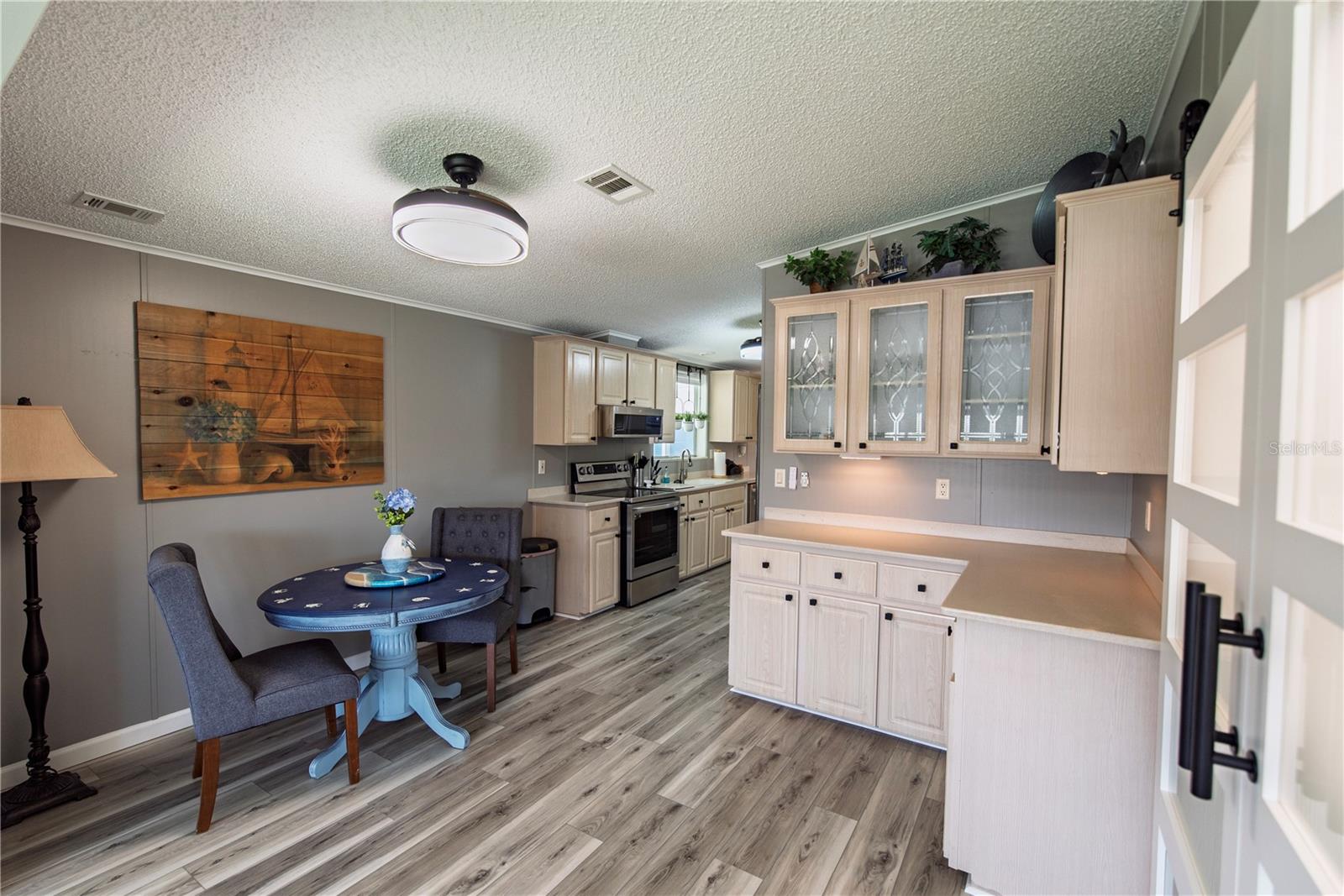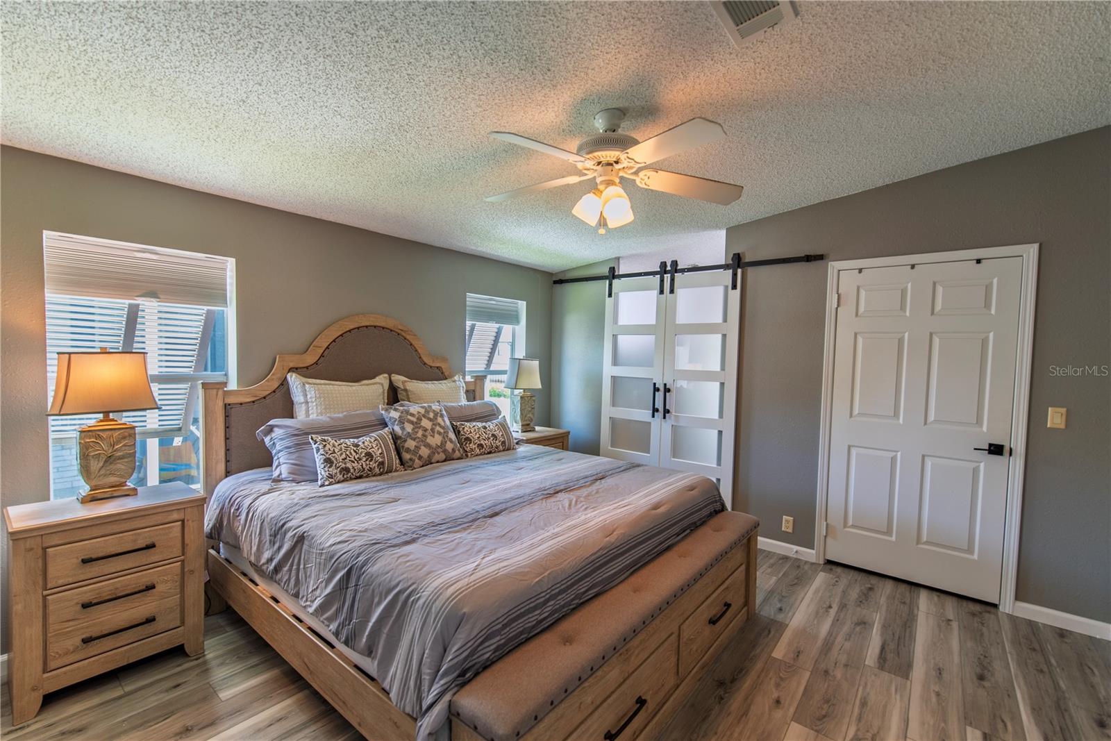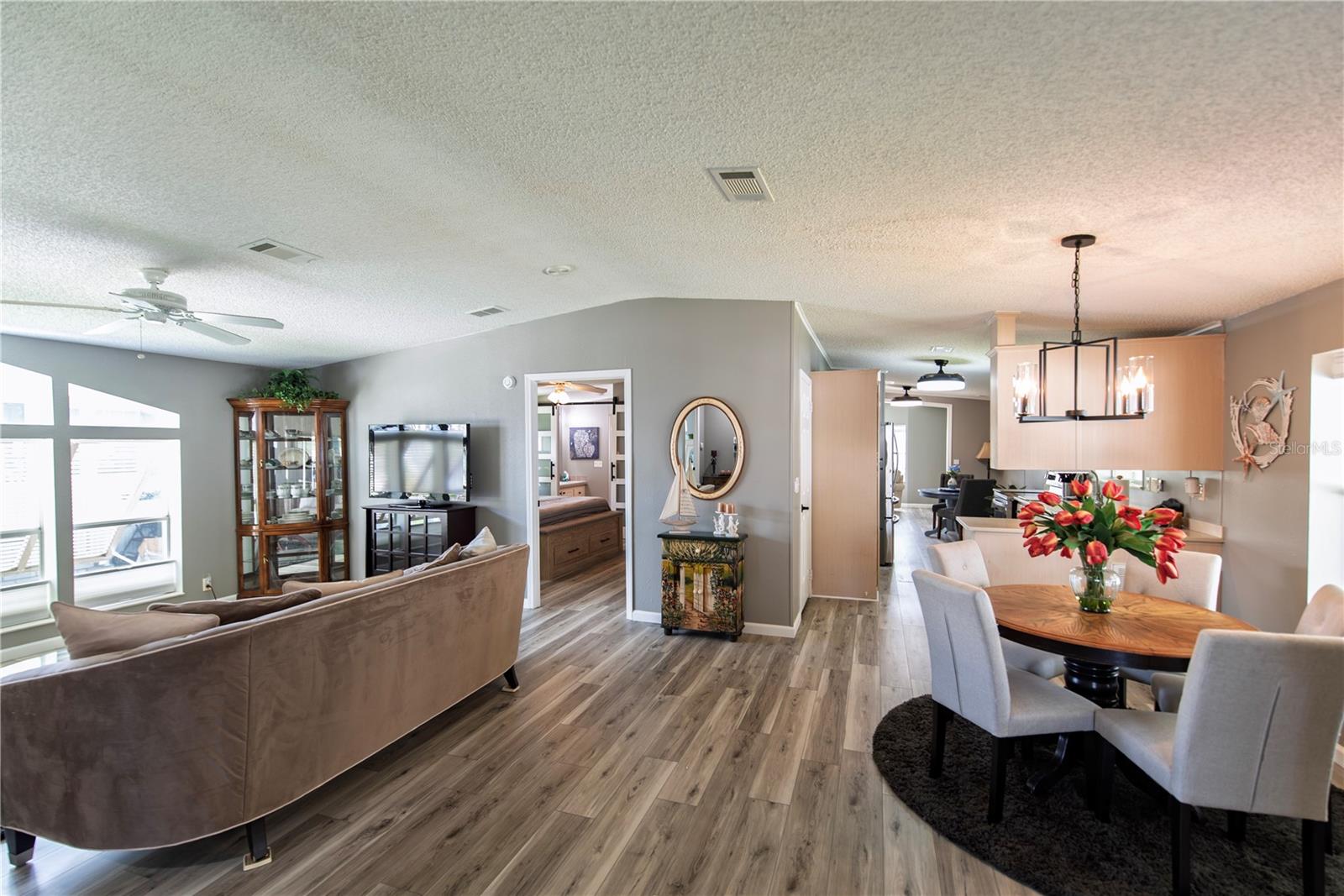Discover your dream home in the vibrant, resident-owned 55+ Windmill Village, a stunning waterfront community! This waterfront spacious 3-bedroom, 2-bathroom home boasts 1,782 square feet of open-concept living with modern upgrades and includes a dock and 8 lb boat lift. Enjoy luxury vinyl plank flooring, fresh neutral paint, and drywall in living areas. The generous kitchen features solid wood cabinets, new appliances, under-counter warm lighting, and dual sinks. The primary bedroom offers two large closets and a dual-sink bathroom, while the third bedroom, with a Murphy bed, doubles as an office. Relax in the bonus room overlooking the Tarpon Canal, complete with an 8,000 lb boat lift. Additional highlights include in-ceiling Bluetooth speakers, reversible pull-up/down blinds, ceiling fans, a large workshop/storage space with front and back doors, and a handicap lift under cover if needed. For just $260 monthly, water, sewer, and yard care are included. This active community offers two private marinas, a boat ramp, trailer storage, horseshoe pits, shuffleboard, bocce ball, billiards, indoor pickleball, a large community center, a heated pool with a new pavilion, and clubs for every interest. The purchase price excludes a refundable $20,285 Buy-In Share and Bond. Schedule a showing today to claim your slice of paradise!
