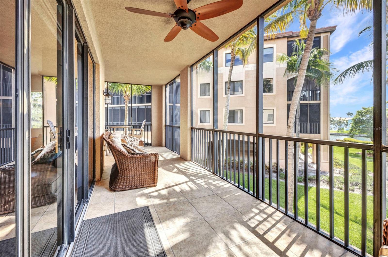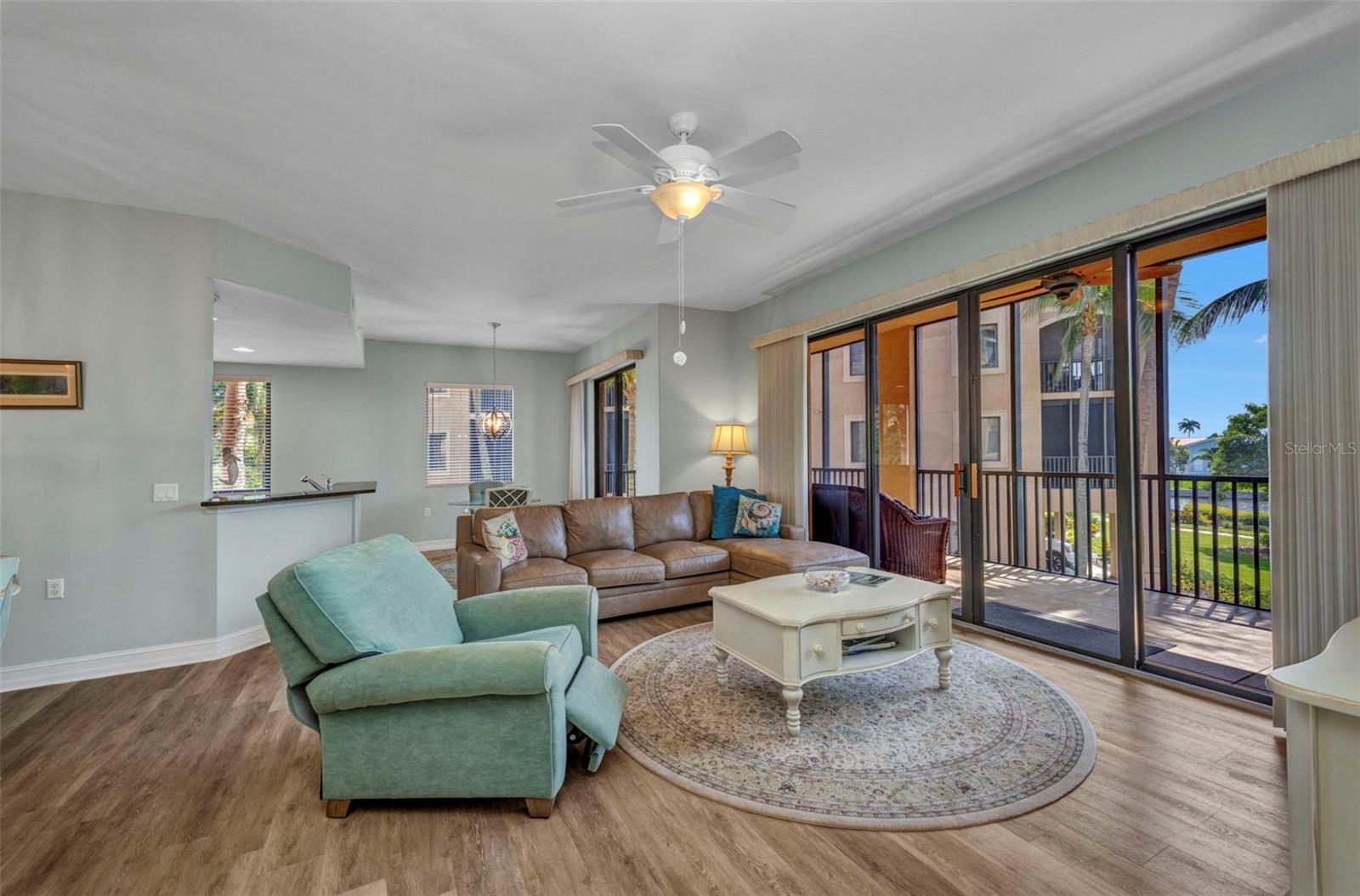 END UNIT WITH BREATHTAKING LAKE VIEWS, 2 DEEDED PARKING SPOTS, PRIVATE STORAGE, AND LUXURY RESORT AMENITIES – FLORIDA LIVING AT ITS FINEST! Step into comfort, style, and ease in this stunning second-floor condo located in the exclusive, gated Vivante community in Punta Gorda Isles. This end unit offers peaceful privacy, exceptional natural light from extra windows, and sweeping lakefront views that instantly calm the senses. With 1,803 square feet of thoughtfully designed living space, this 2-bedroom, 2-bath residence is perfect for those seeking year-round enjoyment or a seasonal escape. Inside, you'll find luxury vinyl flooring flowing seamlessly through the main living areas, custom paint tones, and elegant touches like tray ceilings and oversized 8-foot sliders that lead to your expansive, screened lanai—perfect for morning coffee or evening wine overlooking the water. The open-concept layout is ideal for entertaining, with a spacious living room and dining area that blend beautifully into the well-equipped kitchen. Granite countertops, solid wood cabinetry, a breakfast bar, pantry, and stainless steel appliances make this kitchen as functional as it is beautiful. A charming dinette area offers the perfect spot to enjoy meals with a view. The oversized primary suite is a private retreat, complete with direct lanai access, two large walk-in closets, and a spa-like en suite bathroom featuring a soaking tub, glass-enclosed shower, dual vanities, and a private water closet. The split bedroom design offers guests their own serene space with an adjacent full bath, ensuring comfort and privacy for all. This condo comes with two deeded, under-building parking spaces—a rare find—along with a private, climate-controlled storage unit just steps from your door. The building offers elevator access and is meticulously maintained. Vivante’s resort-style amenities elevate everyday living. Spend your days lounging at the lakeside infinity-edge pool or getting your laps in at the separate lap pool. Enjoy the spa-like atmosphere of the steam room, dry sauna, and private salon. Stay active with a state-of-the-art fitness center, play a match on the lighted tennis courts, or unwind in the clubhouse with billiards, a media room, library, and social spaces. Surrounded by natural beauty and coastal charm, this location is just minutes to Fishermen’s Village, Ponce de Leon Park, and vibrant downtown Punta Gorda. Explore local marinas, kayak along the Peace River, or tee off at nearby golf courses. Enjoy fresh seafood, boutique shopping, live music, and community events—all within easy reach. With water, sewer, trash, basic cable, and exterior maintenance included in your HOA dues, carefree living has never been so effortless. This is more than a condo—it's your gateway to the relaxed, sun-soaked lifestyle you've been dreaming of.