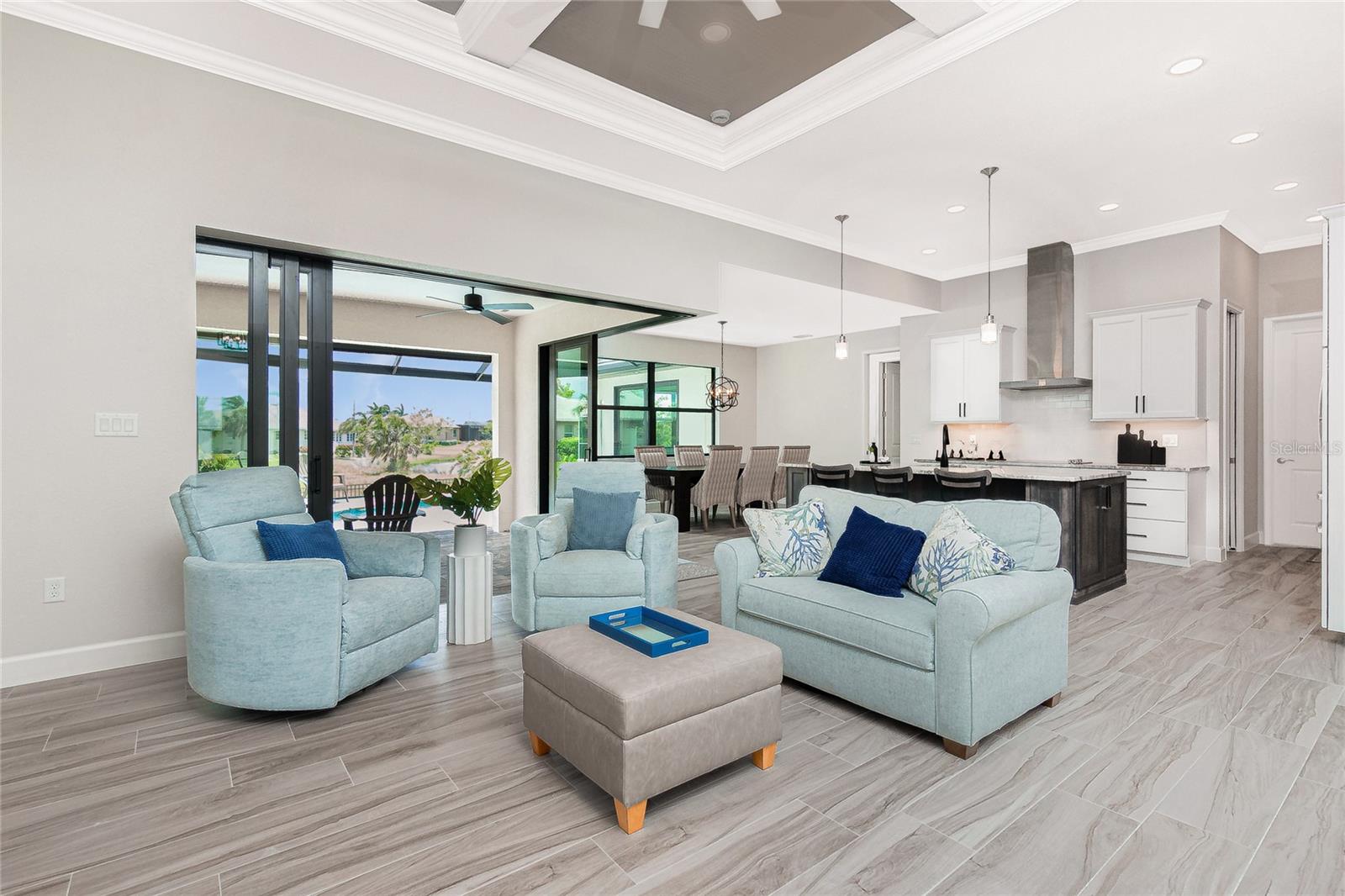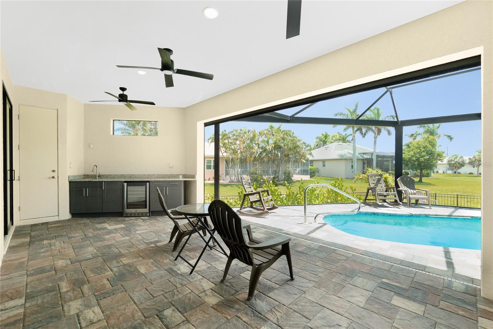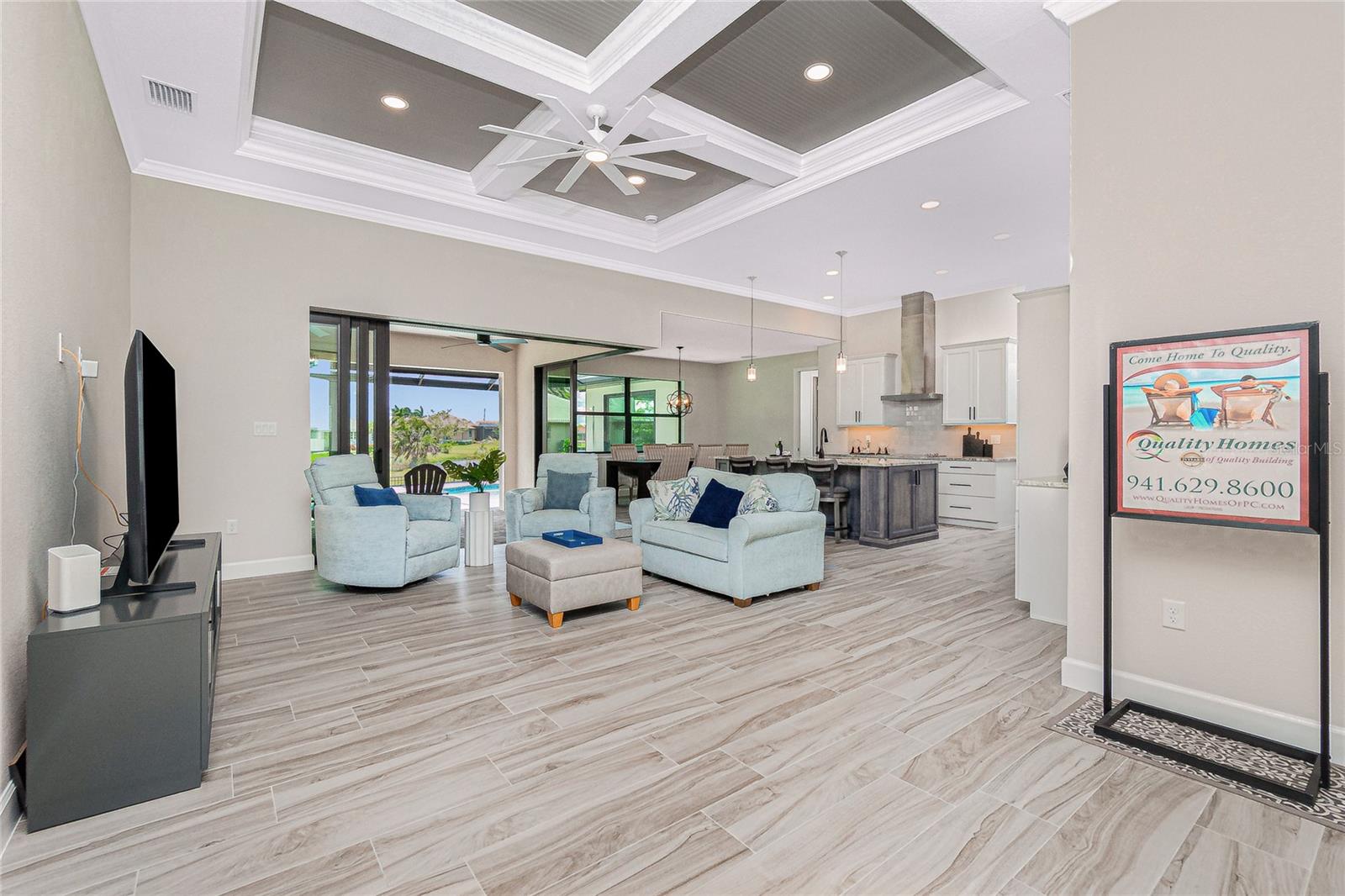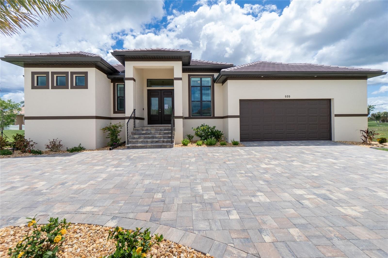 Luxury Golf Course Living with Lake Views on Twin Isles Country Club. Nestled in an unparalleled setting of tranquility and sophistication, this stunning home is a masterpiece of design and luxury living. Situated on an oversized lot, the property offers sweeping views of manicured greens and a shimmering lake that creates an ambiance of serene beauty. Step into this elegant residence as you are greeted by an open-concept layout, seamlessly blending indoor and outdoor living, with zero corner sliding glass doors. Expansive windows bathe the home in natural light. Fine details abound, from soaring coffered ceilings and custom millwork, to a chef-inspired kitchen outfitted with top-of-the-line appliances, granite countertops, a spacious island and butler pantry, perfect for entertaining. The owner's suite is a private retreat, a spa-like en suite bathroom, a large walk-in shower with rain shower head, floor to ceiling tile and sitting bench. Dual sinks with plenty of storage along with a separate makeup vanity. Dual walk-in closets with custom built-in dressers and wood shelving. With a split plan, the additional bedrooms ensure comfort and privacy for family and guests alike. Bonus office/den with beautiful double doors for privacy along with a half bath The outdoor living area is equally impressive, featuring a covered lanai overlooking the salt water-heated pool, with picture window screening. The outdoor kitchen is ideal for entertaining. Fenced in backyard with lush landscaping, an additional large paver patio and custom-built sandbox. Imagine starting your day with coffee overlooking the tranquil lake or unwinding at sunset. Oversized garage with overhead storage. Garage floors are epoxy painted. This Home is on a 7-course stem wall, which meets the new FEMA requirements. Impact windows, except for the lanai. The lanai is protected with a Kevlar Hurricane Screen, which can be operated electronically or manually. Radiant Barrier insulation helps reduce your energy costs. This home is not just a residence; it is a lifestyle. Perfectly positioned for golfers and nature enthusiasts, and with amenities that cater to modern luxury, this property invites you to experience a life of unparalleled elegance and ease. Imagine starting your day with coffee overlooking the tranquil lake or unwinding at sunset. Don’t miss this rare opportunity to own a piece of paradise on the golf course with mesmerizing views. It is conveniently located to Downtown Punta Gorda and all of its restaurants, shopping with world class fishing and boating. 10 minutes to Punta Gorda airport, the HUB for Allegiant Air.