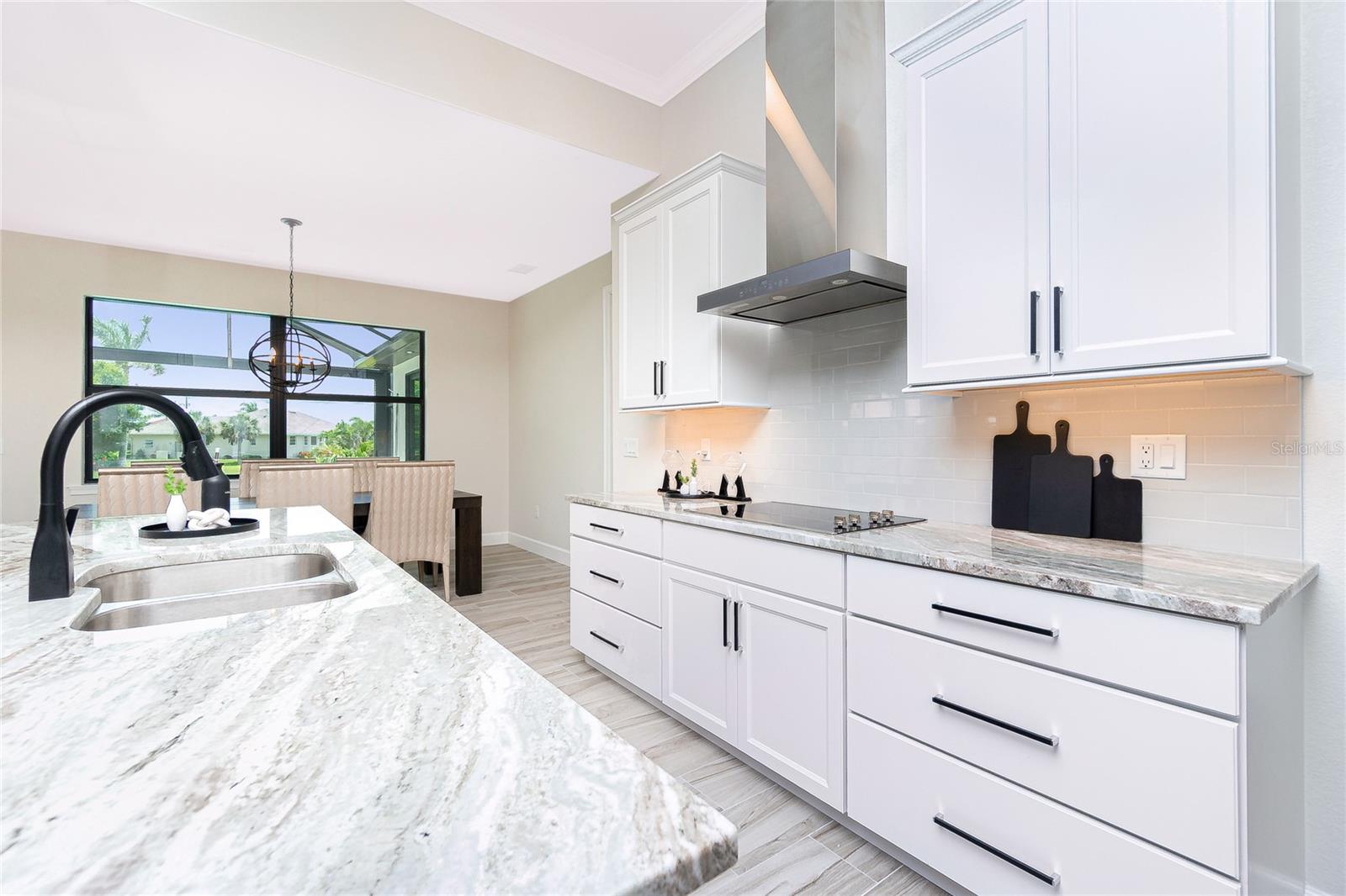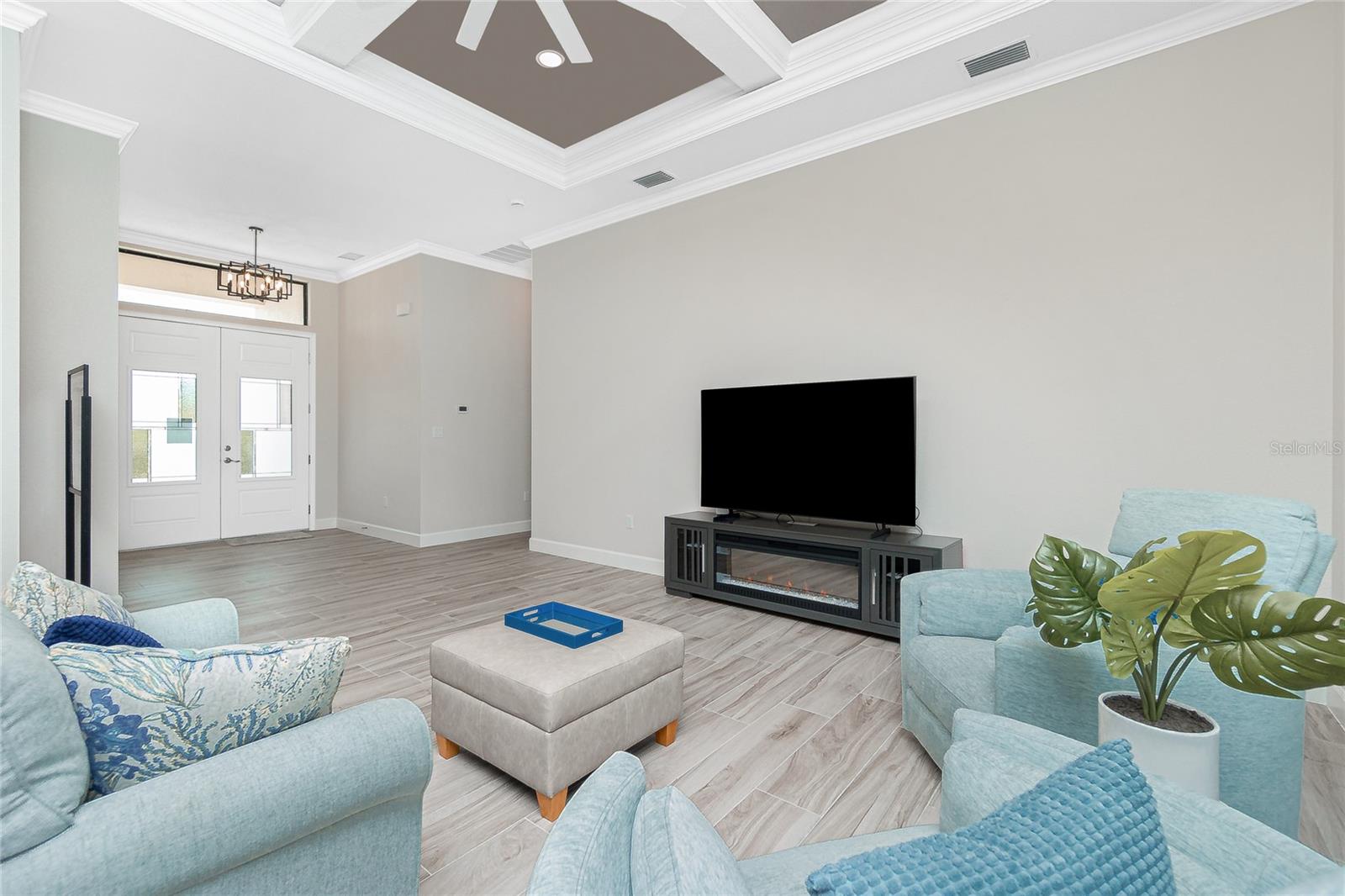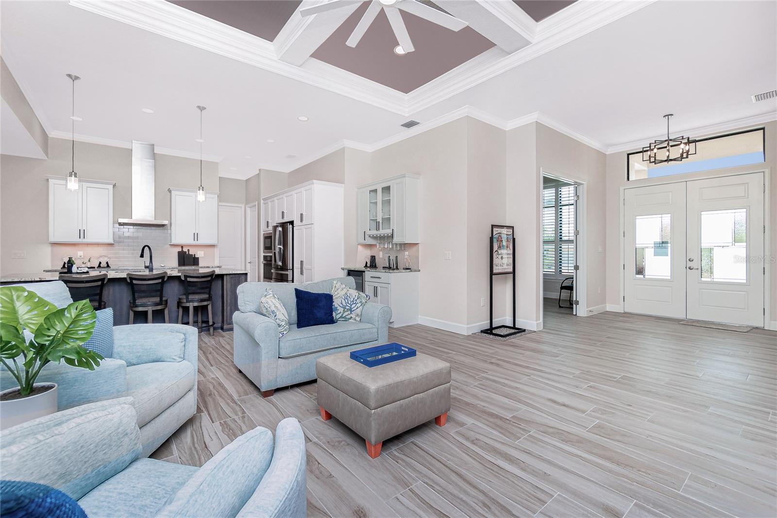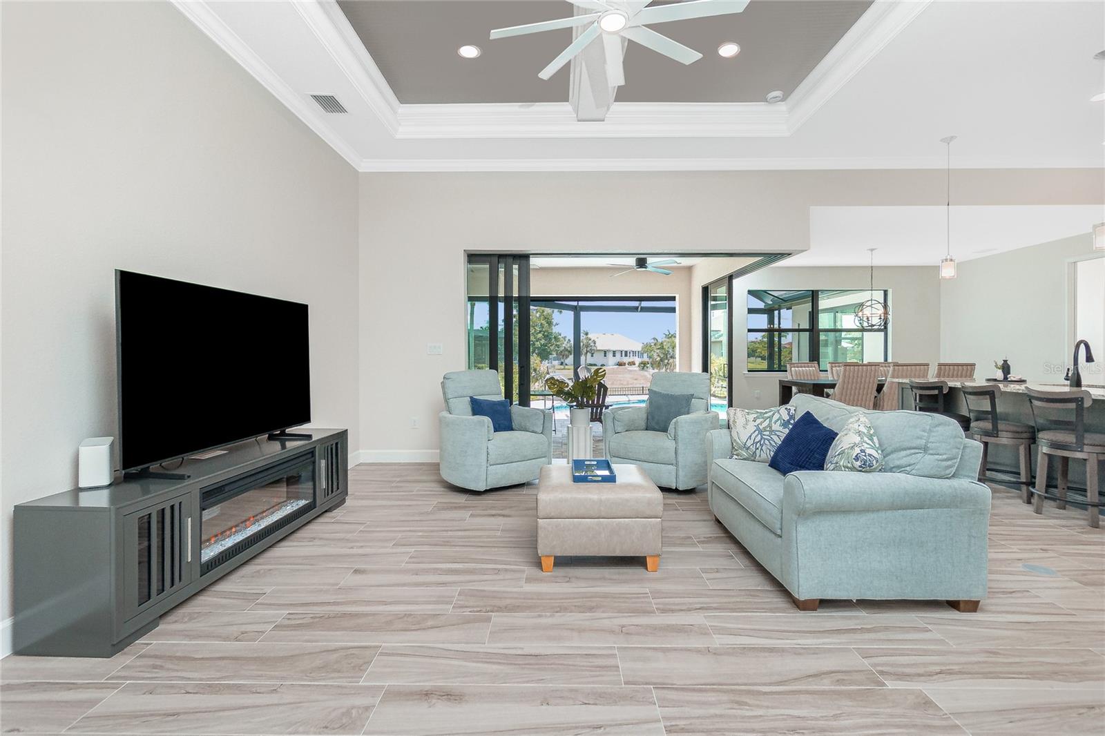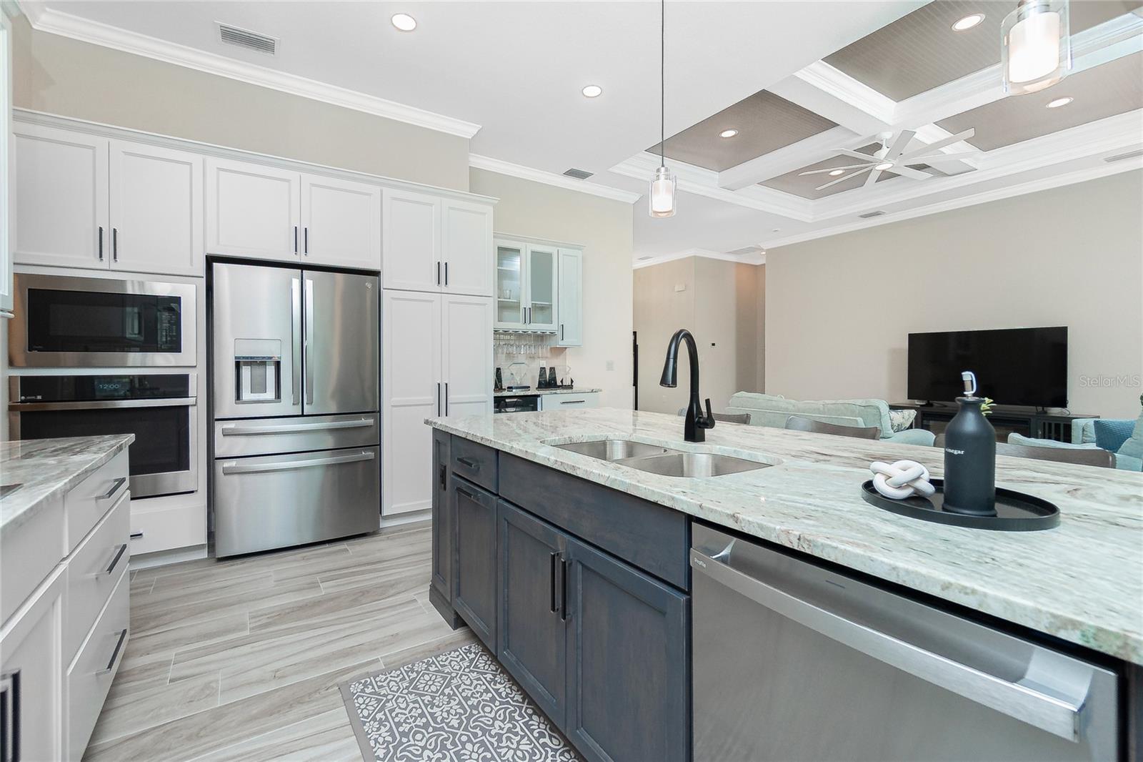 Luxury Golf Course Living with Lake Views on Twin Isles Country Club. Nestled in an unparalleled setting of tranquility and sophistication, this stunning home is a masterpiece of design and luxury living. Situated on an oversized lot, the property offers sweeping views of manicured greens and a shimmering lake that creates an ambiance of serene beauty. Step into this elegant residence as you are greeted by an open-concept layout, seamlessly blending indoor and outdoor living, with zero corner sliding glass doors. Expansive windows bathe the home in natural light. Fine details abound, from soaring coffered ceilings and custom millwork, to a chef-inspired kitchen outfitted with top-of-the-line appliances, granite countertops, a spacious island and butler pantry, perfect for entertaining. The owner's suite is a private retreat, a spa-like en suite bathroom, a large walk-in shower with rain shower head, floor to ceiling tile and sitting bench. Dual sinks with plenty of storage along with a separate makeup vanity. Dual walk-in closets with custom built-in dressers and wood shelving. With a split plan, the additional bedrooms ensure comfort and privacy for family and guests alike. Bonus office/den with beautiful double doors for privacy along with a half bath The outdoor living area is equally impressive, featuring a covered lanai overlooking the salt water-heated pool, with picture window screening. The outdoor kitchen is ideal for entertaining. Fenced in backyard with lush landscaping, an additional large paver patio and custom-built sandbox. Imagine starting your day with coffee overlooking the tranquil lake or unwinding at sunset. Oversized garage with overhead storage. Garage floors are epoxy painted. This Home is on a 7-course stem wall, which meets the new FEMA requirements. Impact windows, except for the lanai. The lanai is protected with a Kevlar Hurricane Screen, which can be operated electronically or manually. Radiant Barrier insulation helps reduce your energy costs. This home is not just a residence; it is a lifestyle. Perfectly positioned for golfers and nature enthusiasts, and with amenities that cater to modern luxury, this property invites you to experience a life of unparalleled elegance and ease. Imagine starting your day with coffee overlooking the tranquil lake or unwinding at sunset. Don’t miss this rare opportunity to own a piece of paradise on the golf course with mesmerizing views. It is conveniently located to Downtown Punta Gorda and all of its restaurants, shopping with world class fishing and boating. 10 minutes to Punta Gorda airport, the HUB for Allegiant Air.