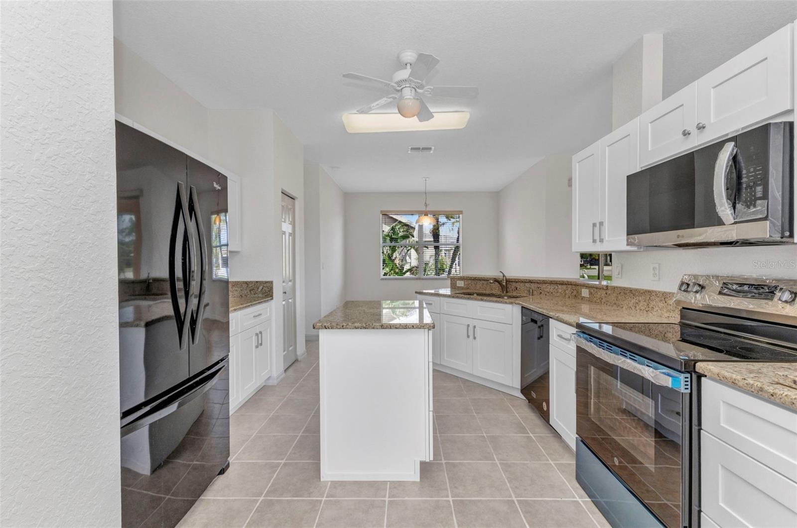 One or more photo(s) has been virtually staged. SENSATIONAL BRISTOL floor plan with UNIQUE KITCHEN FEATURES in the gated golf course/active resort of highly desirable Kings Gate, a 55+ community that is NOT in a flood zone and in evacuation zone d (have never been under evacuation order). This nicely updated home features a 2023 Roof, 2017 AC, 2025 updated kitchen - including slow close cabinets and granite counters and also features an Island (not typically found in a Bristol model). Also newly installed luxury vinyl plank in living room, dining room and all 3 bedrooms. This house also features storm protection with accordion shutters and has a lanai that's enclosed with acrylic windows. Step into this home and you'll instantly notice the new flooring and appreciate the easy flow between living room - dining room - kitchen and lanai. Plenty of open space in back of lanai - (can not be built on). The split floor plan has the master bedroom to the back right of the home with the guest bedrooms/bathroom to the back left - providing both you and your guests plenty of privacy. No question though - you're going to love the view and the cool breeze on the lanai with your morning cup of coffee or your favorite after dinner drink. And if you haven't been to Kings Gate before - you're going to love the options for activity (Olympic size heated swimming pool and spa, tennis courts, pickle ball, lawn bowling, shuffle board, bocce, horseshoes, gym, billiards, library, euchre, bingo, bridge, Texas hold em, poker, mahjong and more). The onsite AND NEWLY REMODELED Lions Den restaurant and bar is super convenient and also offers Tuesday night Karaoke and monthly trivia contests. Many residents love the fact that they are just a golf cart ride away from the shopping plaza that provides you access to grocery store (ALDI), drug store, bank, restaurants and shopping. Want to explore outside of Kings Gate – you are minutes away from the restaurants and shops of downtown Punta Gorda and Fisherman's village. And if you want to explore more of Florida's fun spots you’re near I75 to quickly head north or south. A SENSATIONAL home that is updated - with a great lanai view in a PREMIER gated community needs to be experienced. Call today for a private showing and a golf cart tour of the community/amenities.