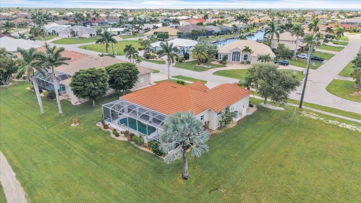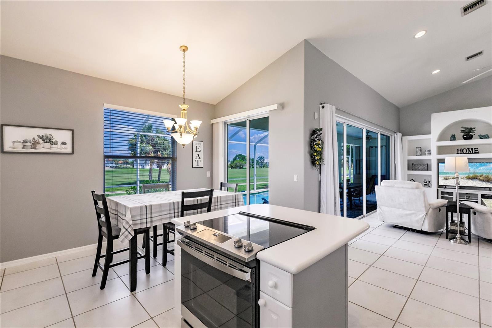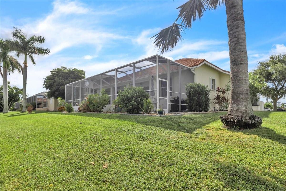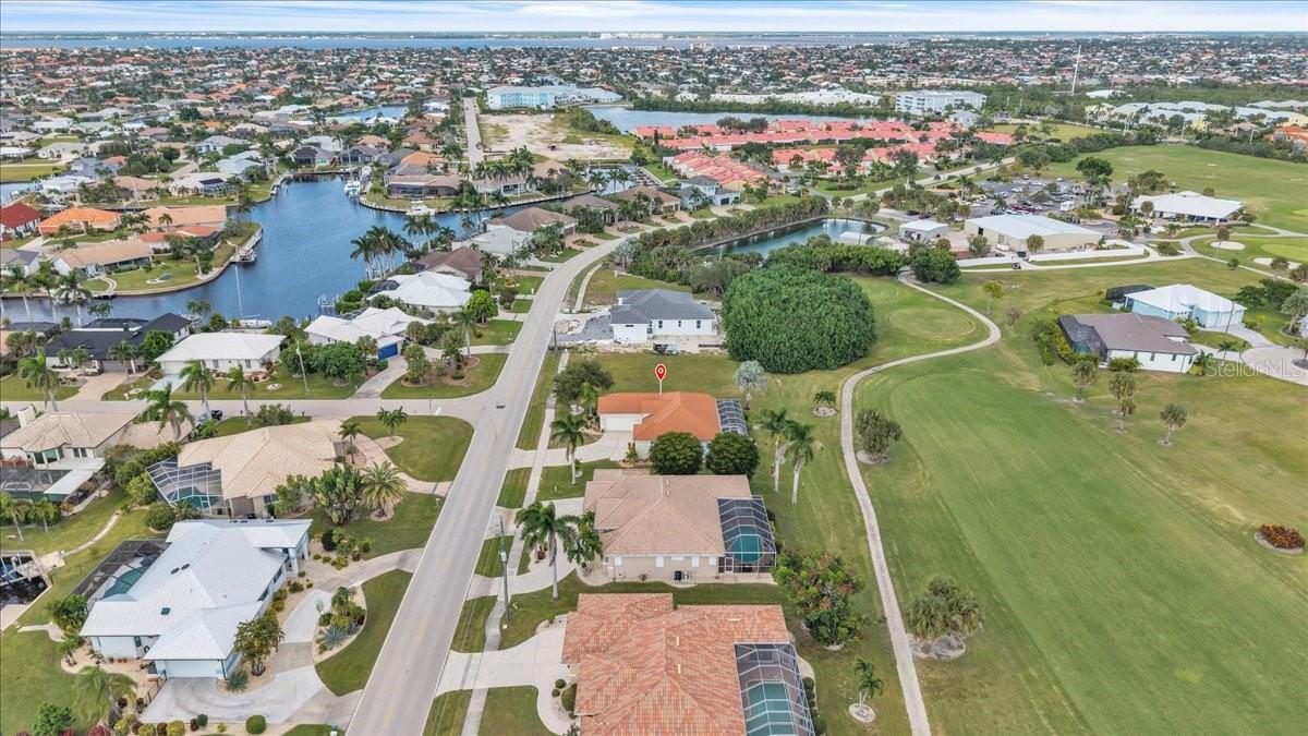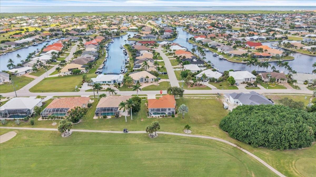 Stunning Pool Home on the 10th Fairway – Punta Gorda Isles! Experience Florida living at its finest in this meticulously maintained 2002-built pool home, perfectly positioned on the 10th fairway of the prestigious St. Andrews Golf Course in Punta Gorda Isles. With 1,624 square feet of living space, this home offers 3 bedrooms (or 2 bedrooms plus a den), 2 full bathrooms, and an attached 2-car garage. From the moment you arrive, you'll be captivated by the home’s exceptional curb appeal, featuring a durable metal roof, nicely landscaped with outdoor lighting, full window storm protection, and a curved driveway leading to a welcoming screened-in front porch. Step inside to a bright and airy open-concept living area highlighted by soaring ceilings, tile flooring throughout, and tall 8-foot sliding doors that fill the space with natural light and offer seamless access to the lanai. A built-in entertainment center anchors the spacious living room, perfect for relaxed Florida living. The eat-in kitchen serves as the heart of the home, complete with new stainless-steel appliances, a center island with seating, sleek white cabinetry, a pantry closet, and direct access to the outdoor living area—ideal for entertaining. The expansive primary suite is a true retreat, featuring private pool access, dual closets (including one walk-in), and a luxurious en-suite bath with a soaking tub, walk-in shower, dual vanities, private water closet, and generous storage. Guests will appreciate two well-appointed secondary bedrooms—each with built-in closets—and a shared guest bath offering an extended vanity and walk-in tiled shower. The third bedroom, with French doors, also functions perfectly as a home office or den. Step outside to your easterly-facing lanai, designed for comfort and relaxation. Lounge in the shade or take a dip in the large, heated pool, complete with a new variable-speed pool pump and heater. Best of all, the screened lanai overlooks the scenic 10th fairway, offering tranquil golf course views that enhance the outdoor living experience. Additional features include an interior laundry room, Central Vac, outdoor pool shower, a new hot water heater (2024), A/C (2014), and a RainBird irrigation system with updated sprinkler heads. The roof and driveway were recently professionally power washed, enhancing the home’s overall curb appeal. Conveniently located near I-75 and US-41, this home is just minutes from Fishermen’s Village, historic downtown Punta Gorda, waterfront dining, boutique shopping, and some of Southwest Florida’s best boating and fishing. This spotless, move-in-ready home is your gateway to the Florida lifestyle