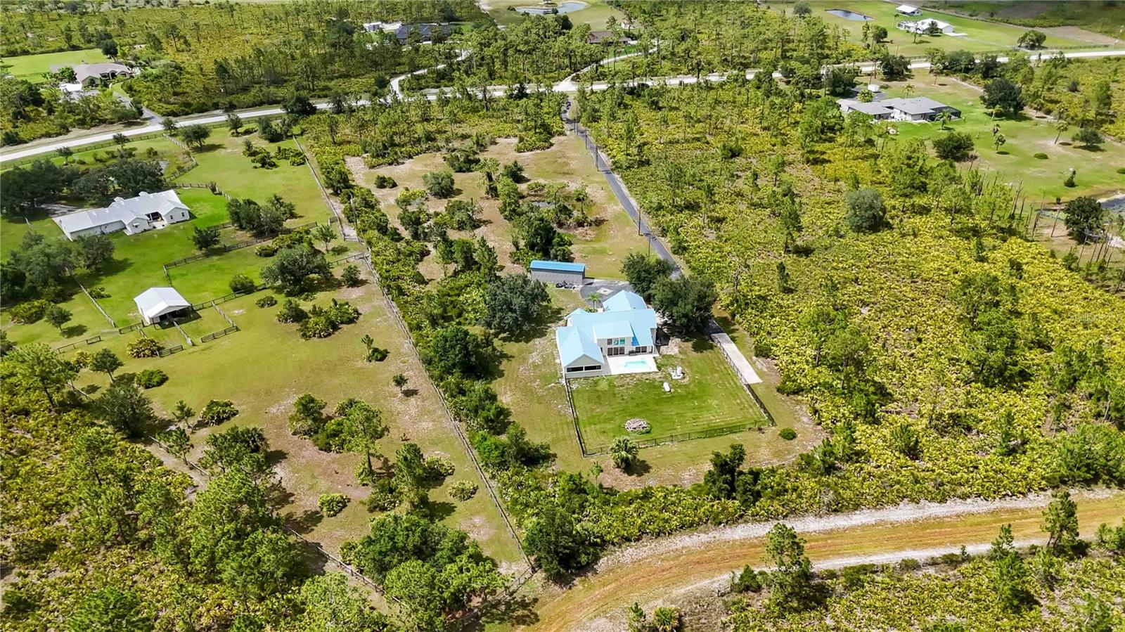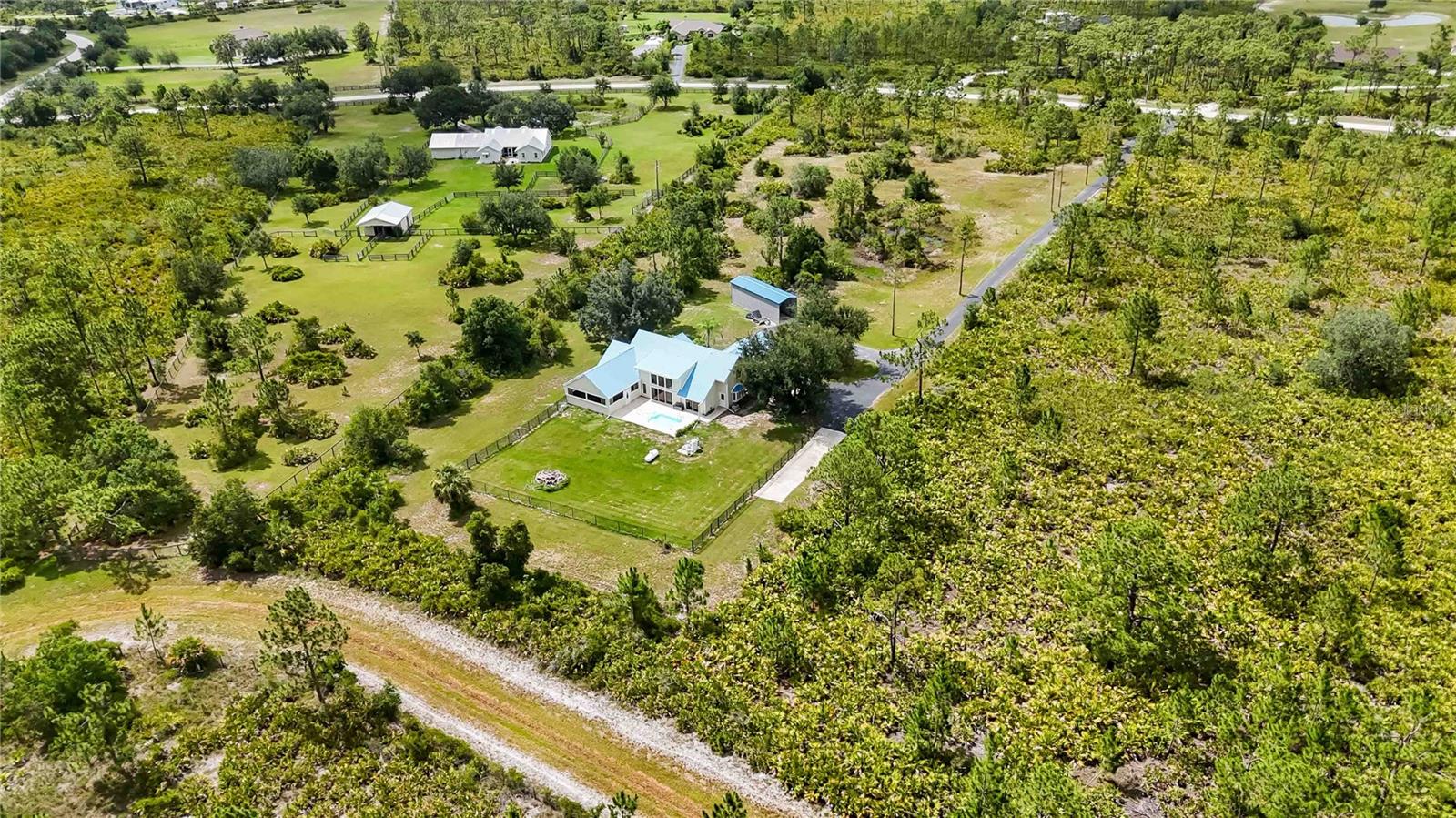 Welcome to this exceptional 4-bedroom, 2.5-bathroom custom home nestled within Prairie Creek, a sought-after equestrian community ZONED FOR HORSES. Situated on 5 PRIVATE ACRES in a NO FLOOD ZONE, this 3,326 sq ft under air residence offers the perfect blend of country living and modern comfort. A picturesque, tree-lined driveway leads you to the home, which backs up to 22 miles of horseback riding trails and features a IN-GROUND POOL and fenced-in backyard—ideal for enjoying the peaceful outdoor setting and Florida lifestyle. Inside, you’ll find an open and spacious layout with SOARING CEILINGS, thoughtfully designed for both functionality and comfort. The primary suite is located on the first floor and features an en-suite bath, while a second bedroom and half bath are also downstairs—ideal for multi-generational living or guests. Upstairs, two more bedrooms, a full bathroom, and a large loft-style living space offer endless possibilities for a playroom, media room, or secondary lounge area. This move-in ready home also includes a NEW A/C system, NEW hot water heater, and updated LVP flooring, all completed within the last two years. The heart of the home is the well-equipped kitchen, featuring wood cabinetry, granite countertops, newer stainless steel appliances, and a generous WALK IN PANTRY, flowing easily into the main living areas. Just off the kitchen is a formal dining space, perfect for hosting holiday meals or family gatherings. The home also includes a pool table that can stay with the sale, offering a great bonus for entertaining. Step outside into the expansive 580 sq ft enclosed patio/bonus room, ideal for year-round enjoyment. Additional features include an attached oversized 2-car garage, and a 12x40 RV-STYLE CARPORT equipped with 220-volt power—perfect for RVs, boats, or extra storage. With move-in ready condition and room to grow, this property offers the lifestyle and freedom you've been looking for, just a short drive from town but a world away from the hustle—and conveniently located with easy access to I-75. Properties like this—especially at this price—don’t last long. Come see it for yourself before it's gone!