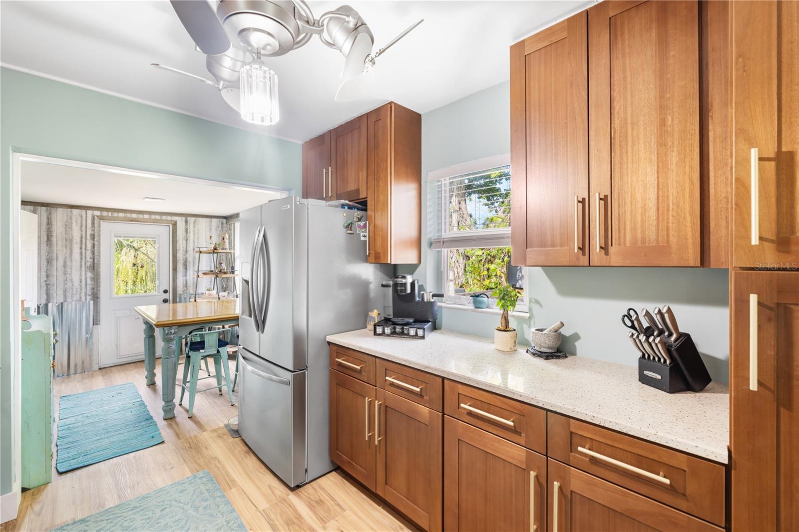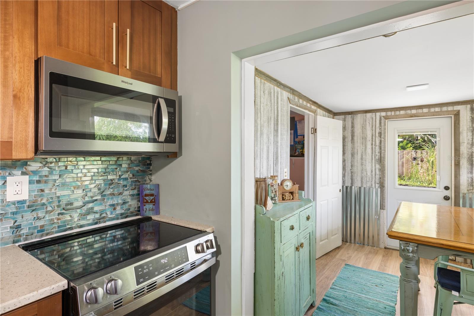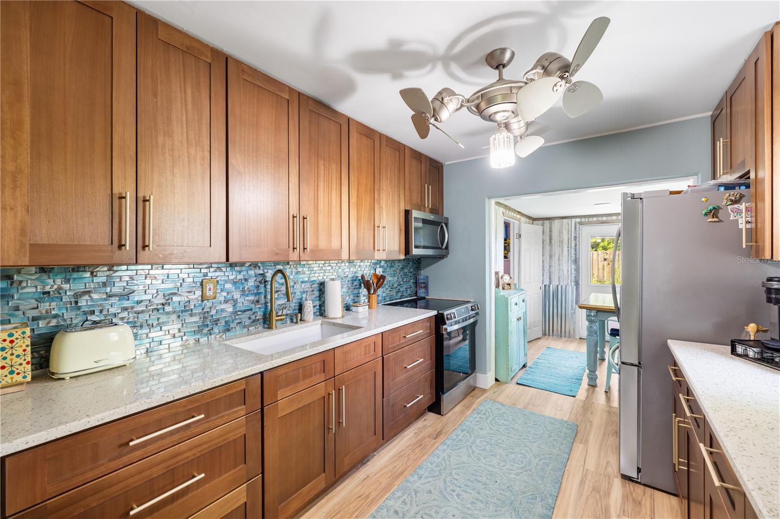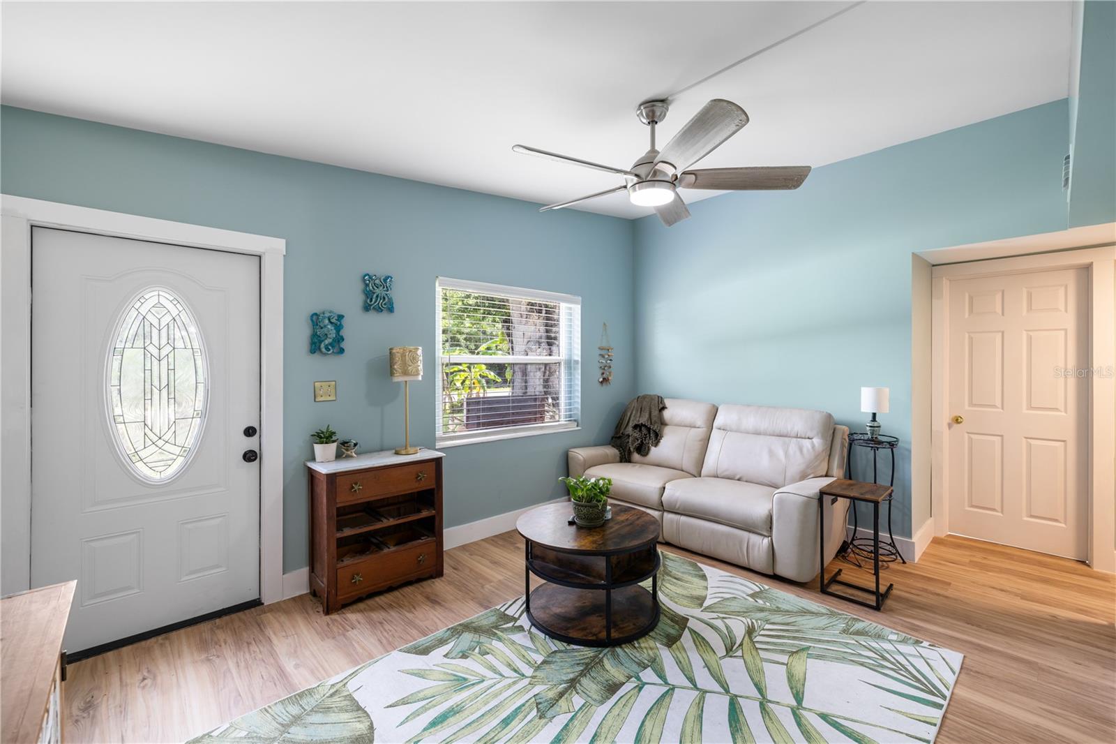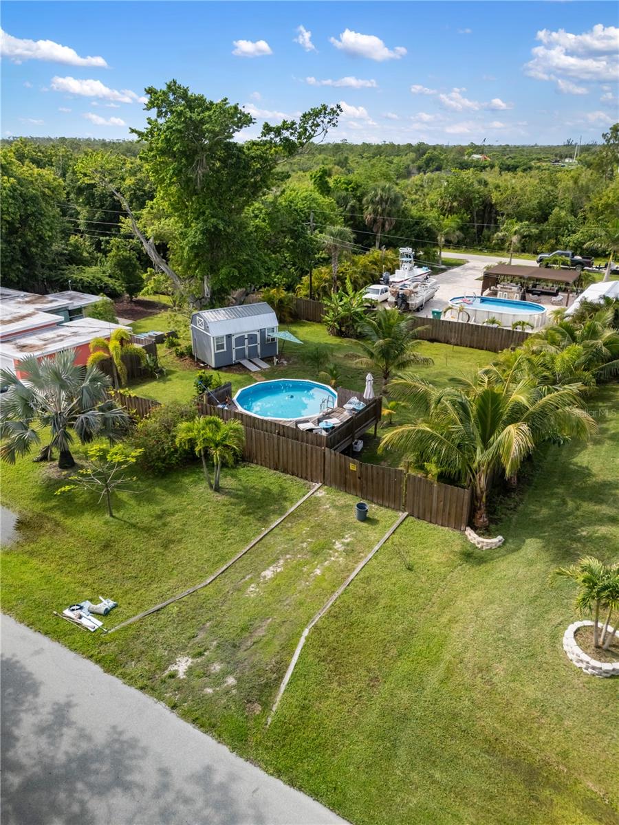 REDUCED OVER $10,000! Welcome to your tropical retreat in beautiful Southwest Florida! This meticulously maintained 3 Bedroom, 1 Bath home sits on a spacious Double Lot offering 0.34 acre of lush tropical trees, fruit trees, and open space. This lovely oasis has been fully remodeled with high-end finishes and an inviting coastal paint palette. Home features include high ceilings and ceiling fans throughout, an open living area, and upscale CORELUX luxury vinyl plank flooring in all living areas and bedrooms. Kitchen and bath are tiled. The fully remodeled kitchen boasts solid wood cabinets with soft-close doors, gleaming savii quartz countertops, a composite granite sink, and new stainless steel appliances. The bathroom has also been beautifully updated with a modern vanity and a sleek walk-in shower. Step outside and discover your private paradise. A 6-foot privacy fence with a 10-foot gate provides secure storage for your RV, boat, or other toys. Enjoy Florida’s sunshine in your 18-foot round above-ground pool, complete with a new pump (2025) and a robot cleaner for easy maintenance. The large shed out back offers extra space with sleeping accommodations—ideal for some staycation camping fun. Tropical murals and the abundance of various fruit trees in the large backyard complete the lush, resort-like feel. Additional upgrades include new outdoor A/C components elevated 30 inches for flood protection and a roll-out roof installed in 2021. With no HOA, no deed restrictions, and no CDD, this home offers freedom and flexibility, whether you're looking for a full-time residence, a winter retreat, or a rental investment. Located just 10 minutes from downtown Punta Gorda, I-75, and the Punta Gorda airport, you also have quick access to world-class fishing, boating, biking, and walking areas. Some of Florida’s most beautiful beaches are a short drivable distance for fun-filled day trips! Don’t miss your chance to own a slice of paradise!
