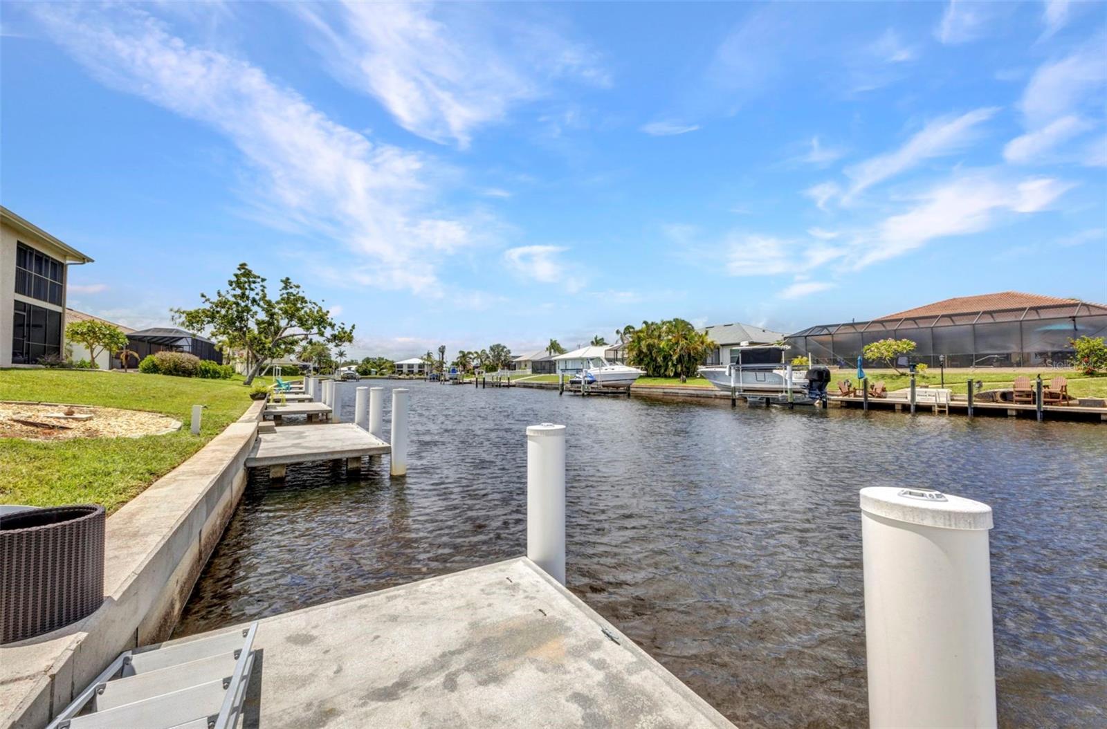 One or more photo(s) has been virtually staged. Live your Florida waterfront dream in this immaculate, fully updated 2-bedroom condo in Punta Gorda Isles is just a 12-minute boat ride to Fisherman’s Village! Dock your boat or jet ski at the permitted floating dock (pilings redone 2023) and enjoy world-class boating and fishing from your backyard. Inside, you’ll find impact windows, luxury vinyl flooring, and a modern kitchen with top-of-the-line GE Monogram appliances, Bosch dishwasher, and reverse osmosis water filtration. The 2021-renovated bath features a rain shower and sleek storage, while the second bedroom includes a Murphy bed and barn door for flexible use. Newer AC, water heater, (2021) metal roof (2022), and impact windows and hurricane shutters ensure peace of mind. HOA covers flood insurance, sewer, water, trash, pest control and lawn care for truly maintenance-free living. Pet-friendly, with assigned parking, storage, and guest spots. Enjoy the active Punta Gorda Isles lifestyle—tennis, pickleball, local festivals, and an easy stroll to waterfront dining. This move-in-ready condo offers comfort, convenience, and a true coastal lifestyle. One or more photos virtually staged.