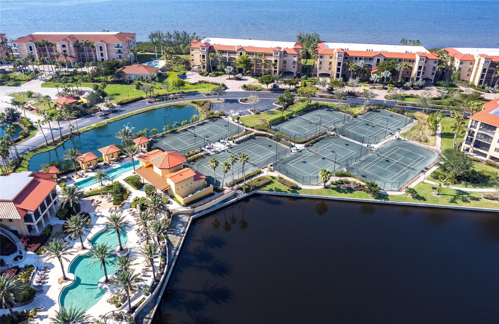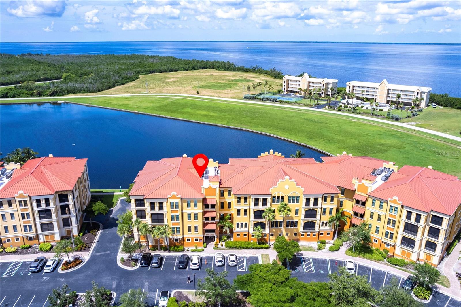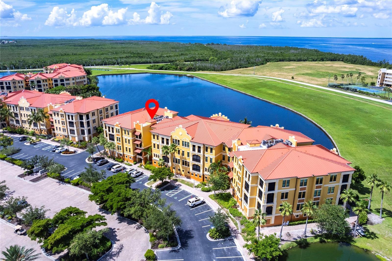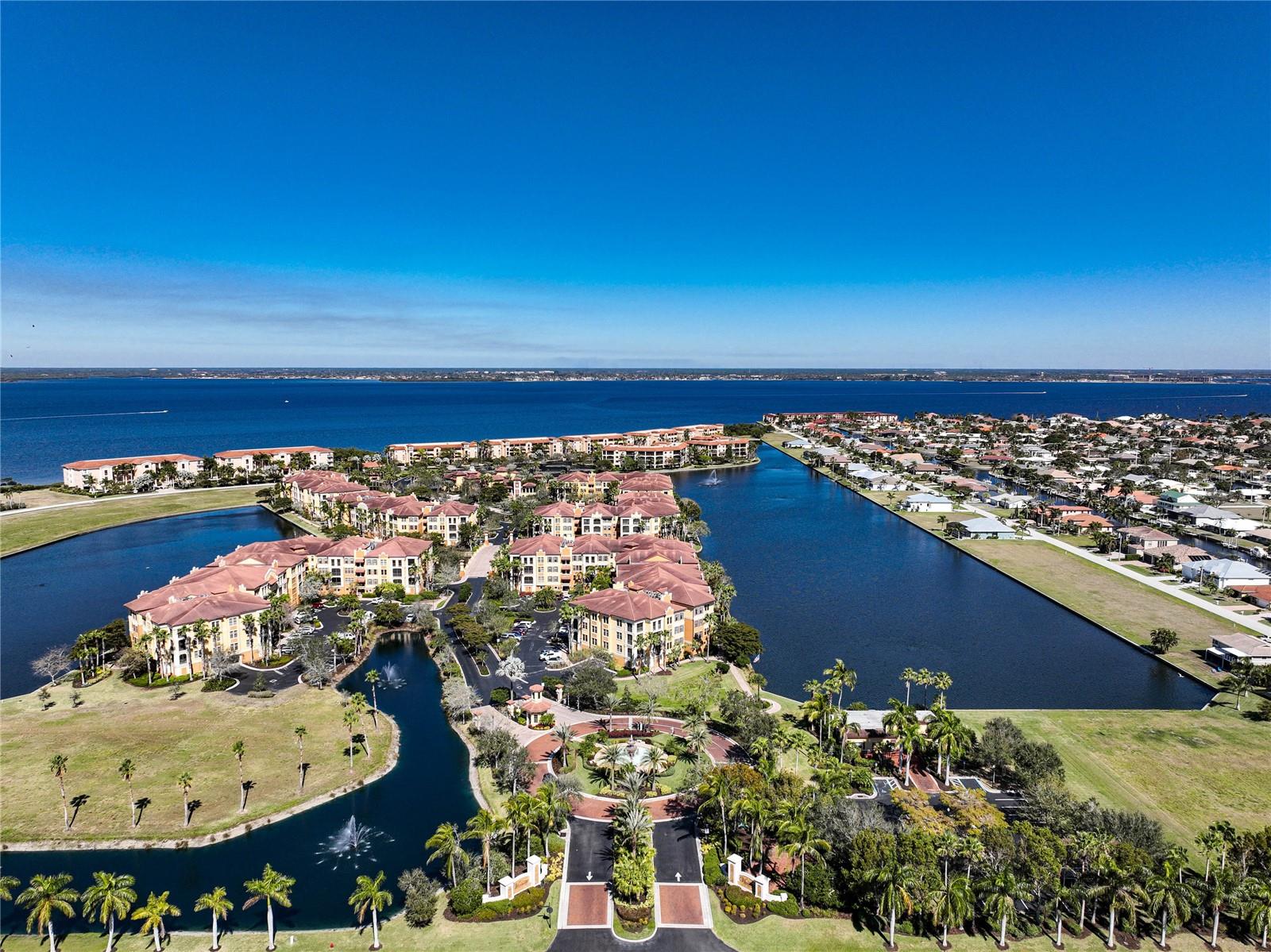 ** MUST SEE ** Top-Floor Corner Unit in Boca Lago at Vivante! Mediterranean-inspired condo in Punta Gorda’s premier gated, resort-style community. NO ASSESSMENTS AND COMES WITH THREE DEEDED GARAGES—a rare find! Enjoy upscale living with spacious interiors, privacy, and access to world-class amenities in a waterfront setting. This spacious and beautifully maintained top-floor corner unit offers 1,915 square feet of living space, featuring 3 bedrooms and 2 baths. Inside, the home is bright, open, and inviting, with a desirable split floor plan and three separate access points to the expansive wraparound lanai, where you’ll enjoy 180-degree waterfront views—perfect for sipping your morning coffee while taking in the serene coastal breeze. The foyer features a convenient closet and flows seamlessly into the dining area and spacious great room highlighted by tile flooring and soaring ceilings. The kitchen overlooks your great room and features granite counter-tops, GE Profile stainless steel appliances (2022), pantry closet, raised panel wood cabinets with upper crown molding, accent lighting under cabinets, desk area and lovely breakfast nook. The primary bedroom invites you to relax and unwind with warm wood flooring (also in guest bedrooms), a ceiling fan, and dual closets, including a spacious walk-in. The en-suite bathroom offers separate his-and-her vanities, a luxurious garden tub, and a Roman-style walk-in shower with sleek frameless glass wall. The split bedroom floor plan has large guest rooms perfect for hosting out of town guests. One guest room offers walk-out access to the lanai. Guest bathroom features large walk-in shower. In 2025, the home received significant upgrades, including new impact windows, sliding glass doors, lanai screens, lanai railings, and a new roof. Additional features include three deeded garage spaces with garage door openers, a spacious laundry room with new washer/dryer (2021) and extra storage, new water heater in 2021 and electric hurricane shutters on the lanai for added peace of mind. Unit is a short walk from the clubhouse that features a fitness center, billiards room, sauna plus two in-ground heated pool, six tennis courts and so much more. Ponce De Leon Park & Peace River Wildlife center is a one mile walk away and overlooks the vast expanse of Charlotte Harbor. The parks amenities include a boat ramp, fishing piers, mangrove boardwalk, small playground, open air chapel area, and picnic pavilion. The park also has a sandy beach area that is popular for watching the sunset and the boats cruising in and out of the channel into Punta Gorda Isles canal system. Nearby to Fishermen's Village, downtown Punta Gorda shops & restaurants, great boating, fishing, sailing, and more. This home is the one. Come see it today! **PLEASE ENJOY THE 3D INTERACTIVE VIRTUAL TOUR ASSOCIATED WITH THIS LISTING**