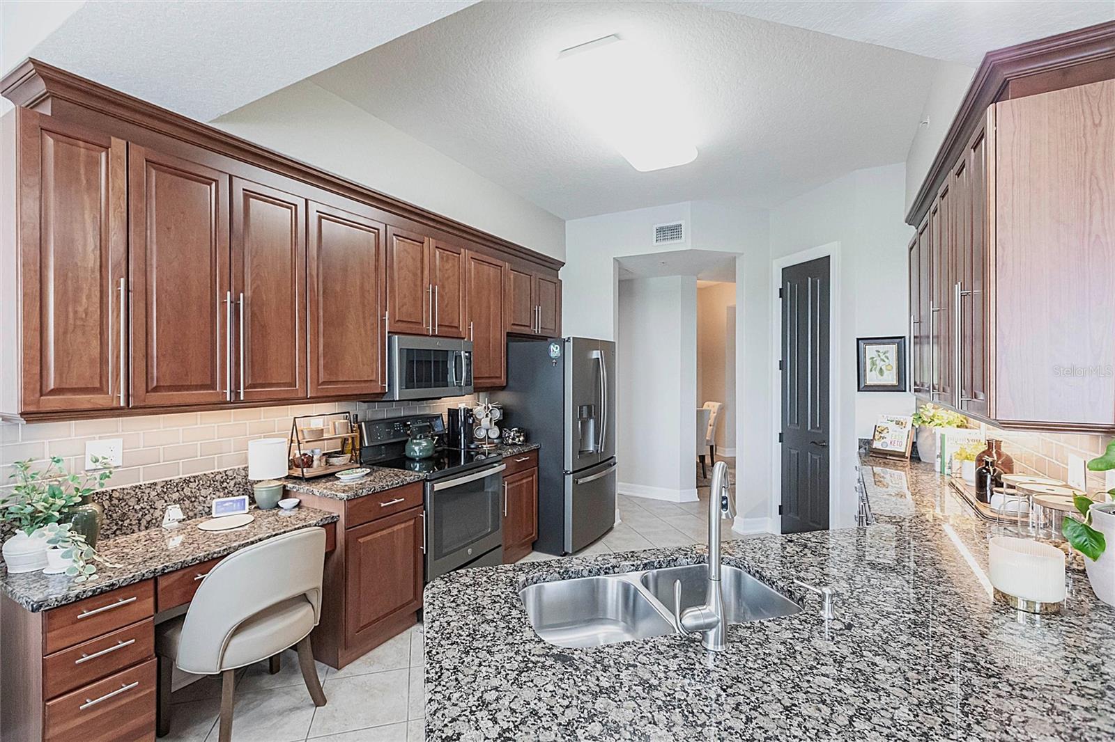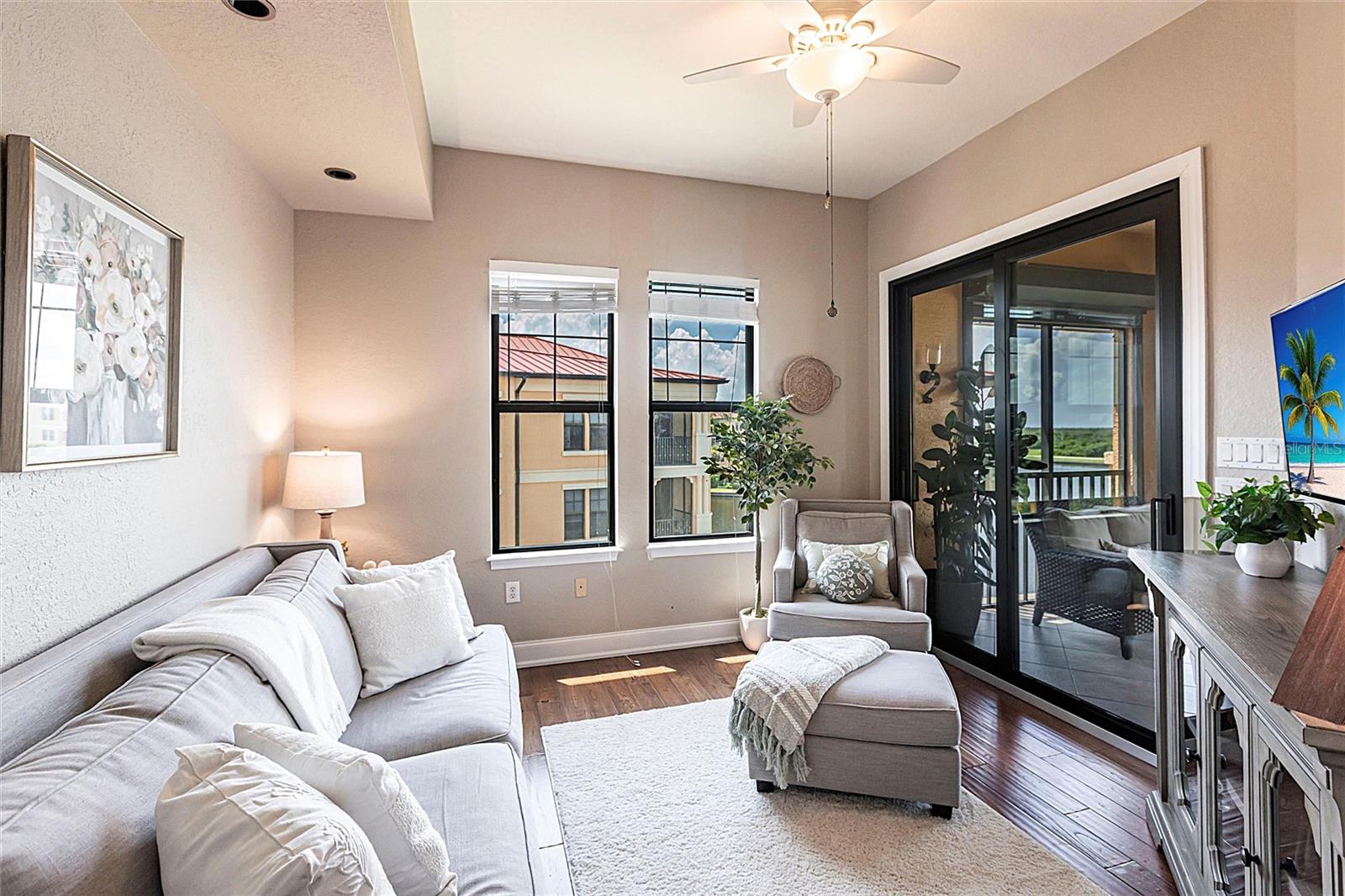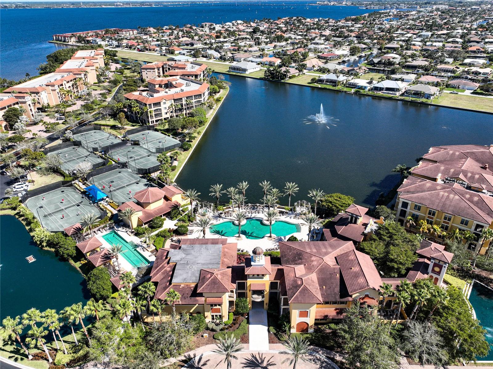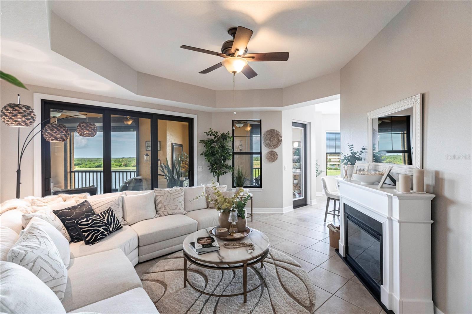 ** MUST SEE ** Top-Floor Corner Unit in Boca Lago at Vivante! Mediterranean-inspired condo in Punta Gorda’s premier gated, resort-style community. NO ASSESSMENTS AND COMES WITH THREE DEEDED GARAGES—a rare find! Enjoy upscale living with spacious interiors, privacy, and access to world-class amenities in a waterfront setting. This spacious and beautifully maintained top-floor corner unit offers 1,915 square feet of living space, featuring 3 bedrooms and 2 baths. Inside, the home is bright, open, and inviting, with a desirable split floor plan and three separate access points to the expansive wraparound lanai, where you’ll enjoy 180-degree waterfront views—perfect for sipping your morning coffee while taking in the serene coastal breeze. The foyer features a convenient closet and flows seamlessly into the dining area and spacious great room highlighted by tile flooring and soaring ceilings. The kitchen overlooks your great room and features granite counter-tops, GE Profile stainless steel appliances (2022), pantry closet, raised panel wood cabinets with upper crown molding, accent lighting under cabinets, desk area and lovely breakfast nook. The primary bedroom invites you to relax and unwind with warm wood flooring (also in guest bedrooms), a ceiling fan, and dual closets, including a spacious walk-in. The en-suite bathroom offers separate his-and-her vanities, a luxurious garden tub, and a Roman-style walk-in shower with sleek frameless glass wall. The split bedroom floor plan has large guest rooms perfect for hosting out of town guests. One guest room offers walk-out access to the lanai. Guest bathroom features large walk-in shower. In 2025, the home received significant upgrades, including new impact windows, sliding glass doors, lanai screens, lanai railings, and a new roof. Additional features include three deeded garage spaces with garage door openers, a spacious laundry room with new washer/dryer (2021) and extra storage, new water heater in 2021 and electric hurricane shutters on the lanai for added peace of mind. Unit is a short walk from the clubhouse that features a fitness center, billiards room, sauna plus two in-ground heated pool, six tennis courts and so much more. Ponce De Leon Park & Peace River Wildlife center is a one mile walk away and overlooks the vast expanse of Charlotte Harbor. The parks amenities include a boat ramp, fishing piers, mangrove boardwalk, small playground, open air chapel area, and picnic pavilion. The park also has a sandy beach area that is popular for watching the sunset and the boats cruising in and out of the channel into Punta Gorda Isles canal system. Nearby to Fishermen's Village, downtown Punta Gorda shops & restaurants, great boating, fishing, sailing, and more. This home is the one. Come see it today! **PLEASE ENJOY THE 3D INTERACTIVE VIRTUAL TOUR ASSOCIATED WITH THIS LISTING**