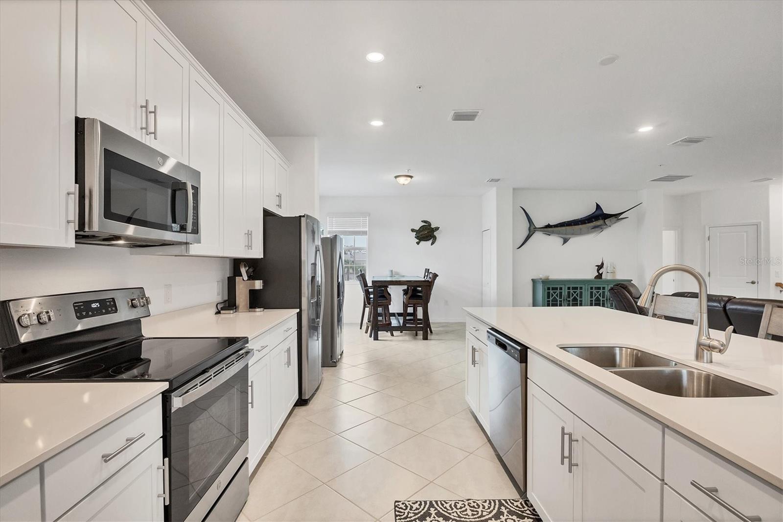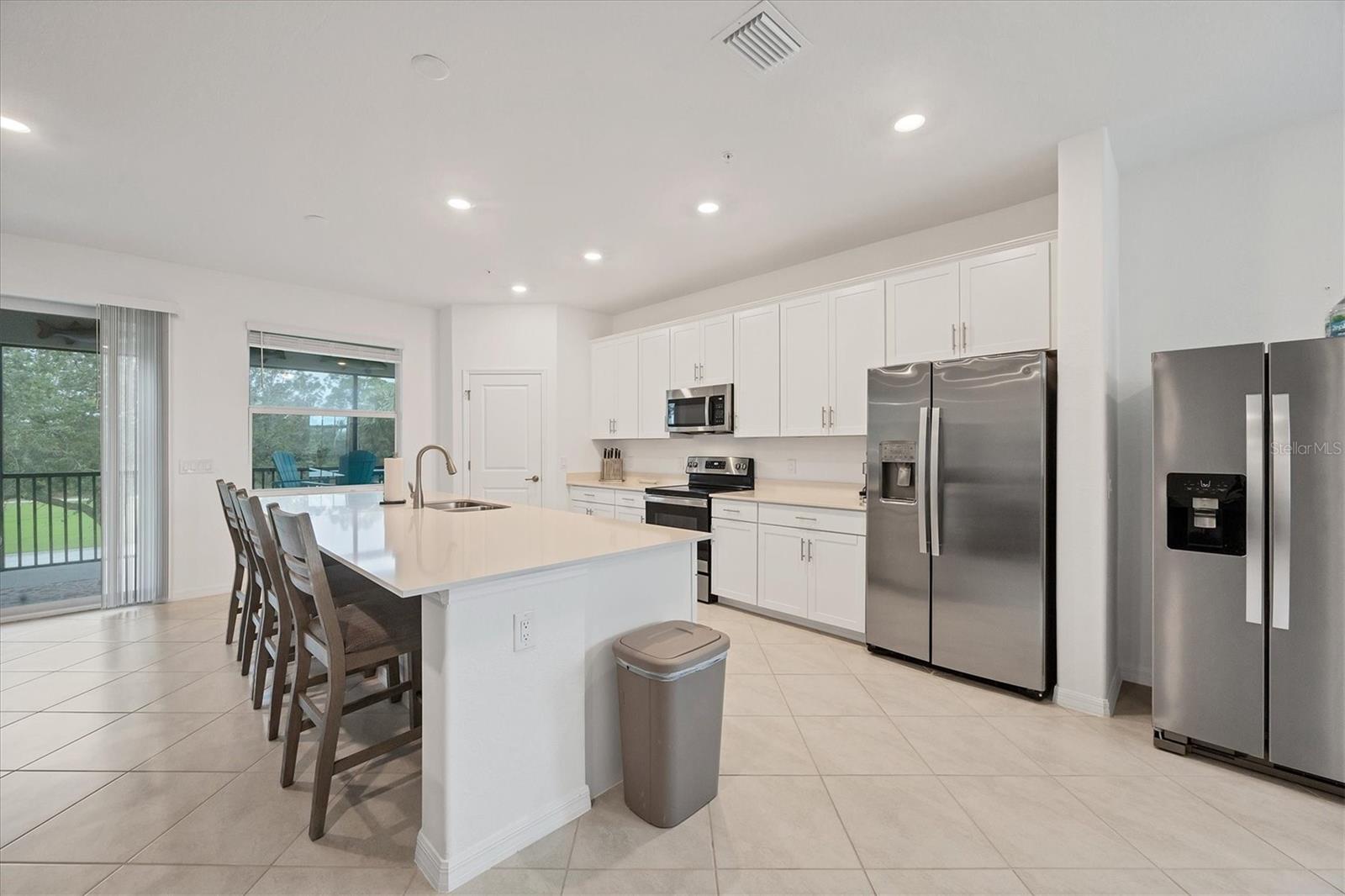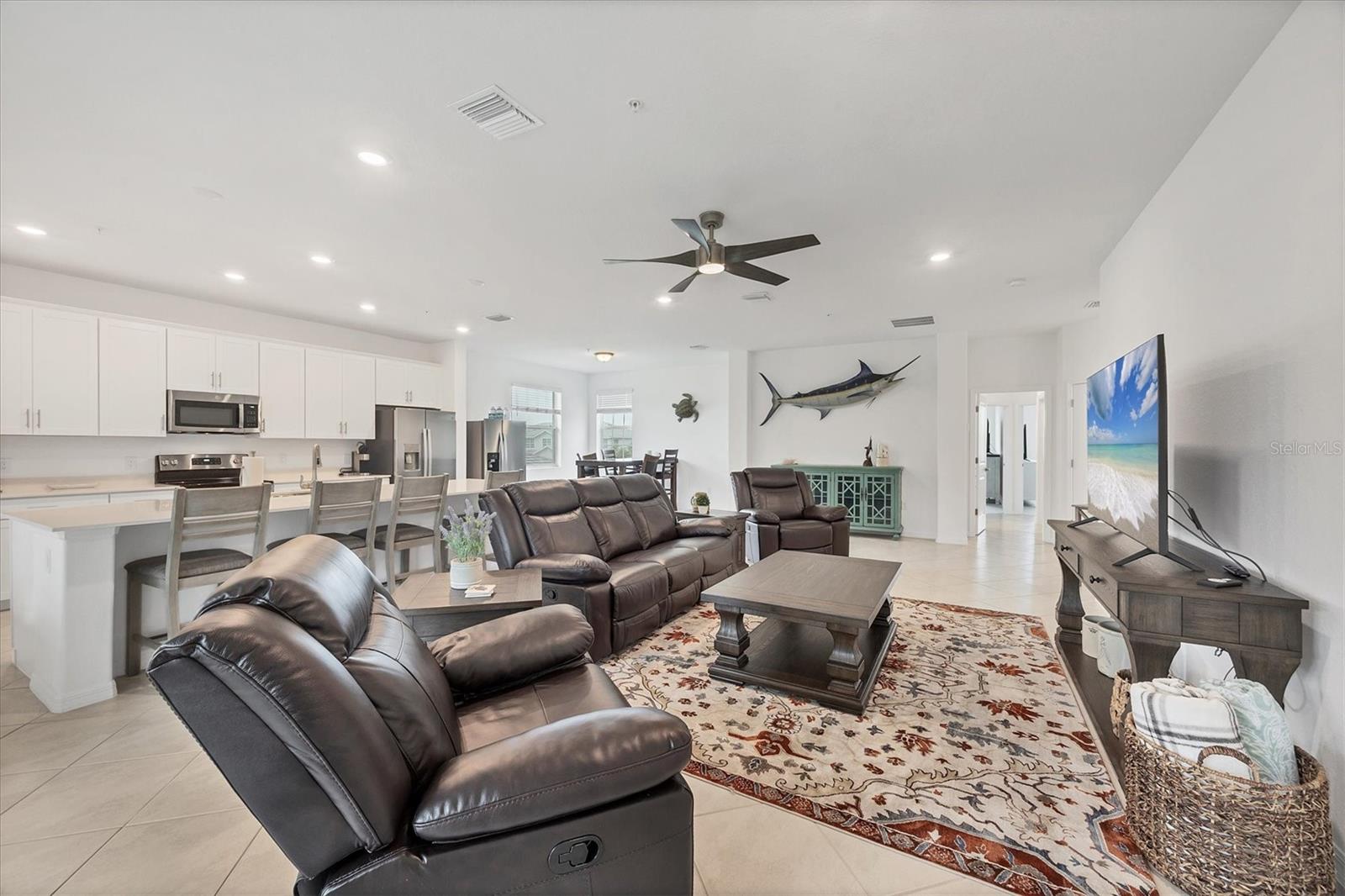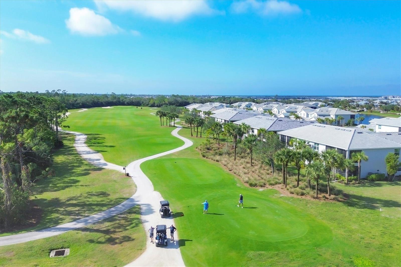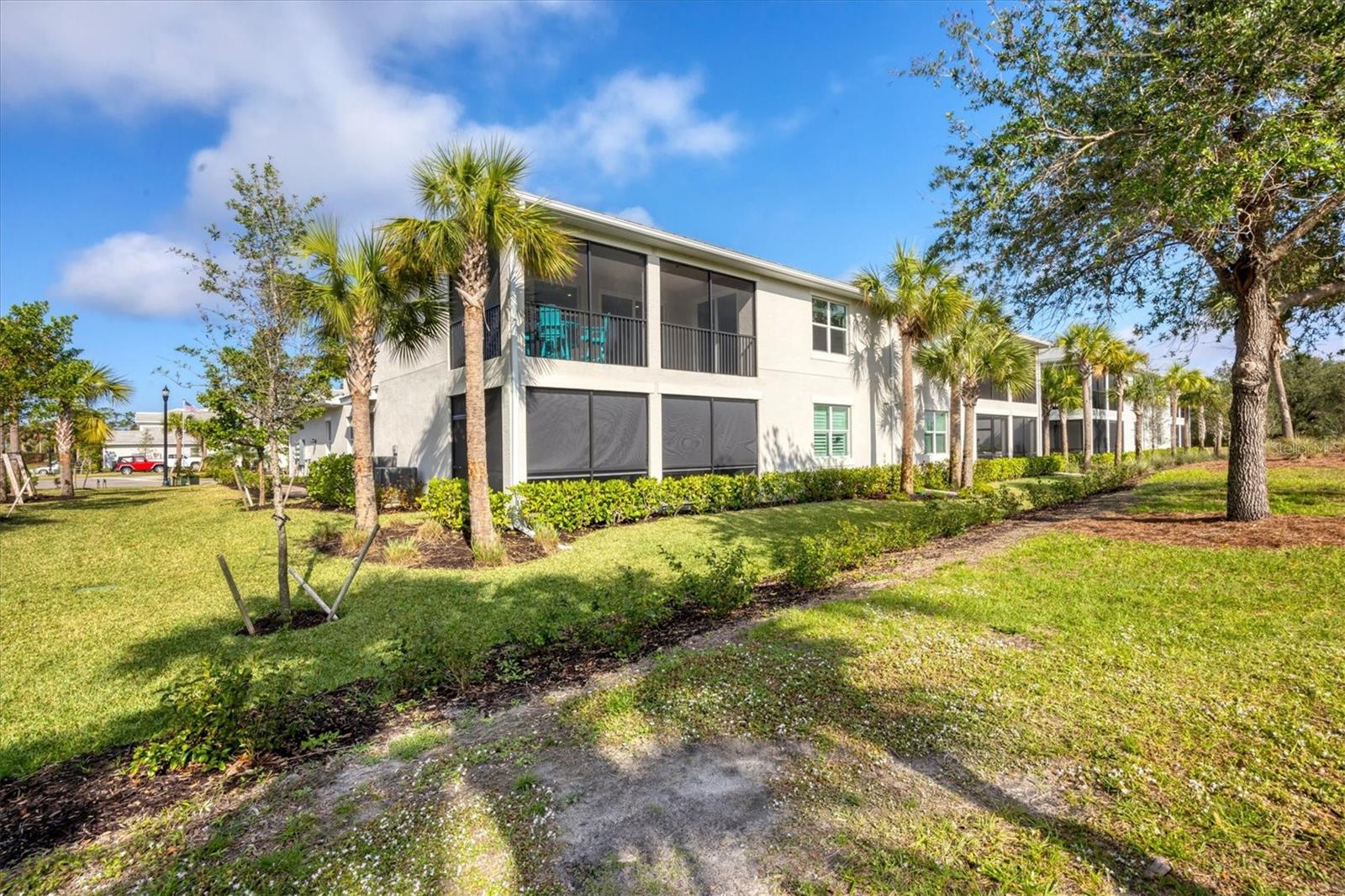 GOLF MEMBERSHIP INCLUDED! You'll love this light and airy 3-bedroom, 2-bathroom Bay Creek model coach home that blends modern design with breathtaking golf course views. ** One of only a few golf coach homes featuring updated gray tile and quartz countertops! **Situated on the second floor, this open-concept home boasts an expansive great room filled with natural light, creating an inviting space for entertaining or relaxing after a day on the course. The primary suite offers a serene retreat with walk-in closets and a spa-like en-suite bathroom. Enjoy front- row seats to the action on the championship golf course from your screened lanai. Don't be fooled! The only way to be a member of Heritage Landing is to own a Golf Membership home! Heritage Landing offers an unparalleled resort lifestyle with amenities designed to enrich your day-to-day living. Enjoy a guard-gated entry, a resort-style pool with lap lanes, and a state-of-the-art fitness center. Relax and rejuvenate at the full-service spa or challenge friends on the 6 Har-Tru tennis courts, 6 pickleball courts, and 2 bocce courts. The pool café will feature a full bar, a delicious menu, and poolside service, adding a touch of luxury to every visit. Don't miss your chance to own this exceptional property and become part of the exclusive Heritage Landing Golf Club community.