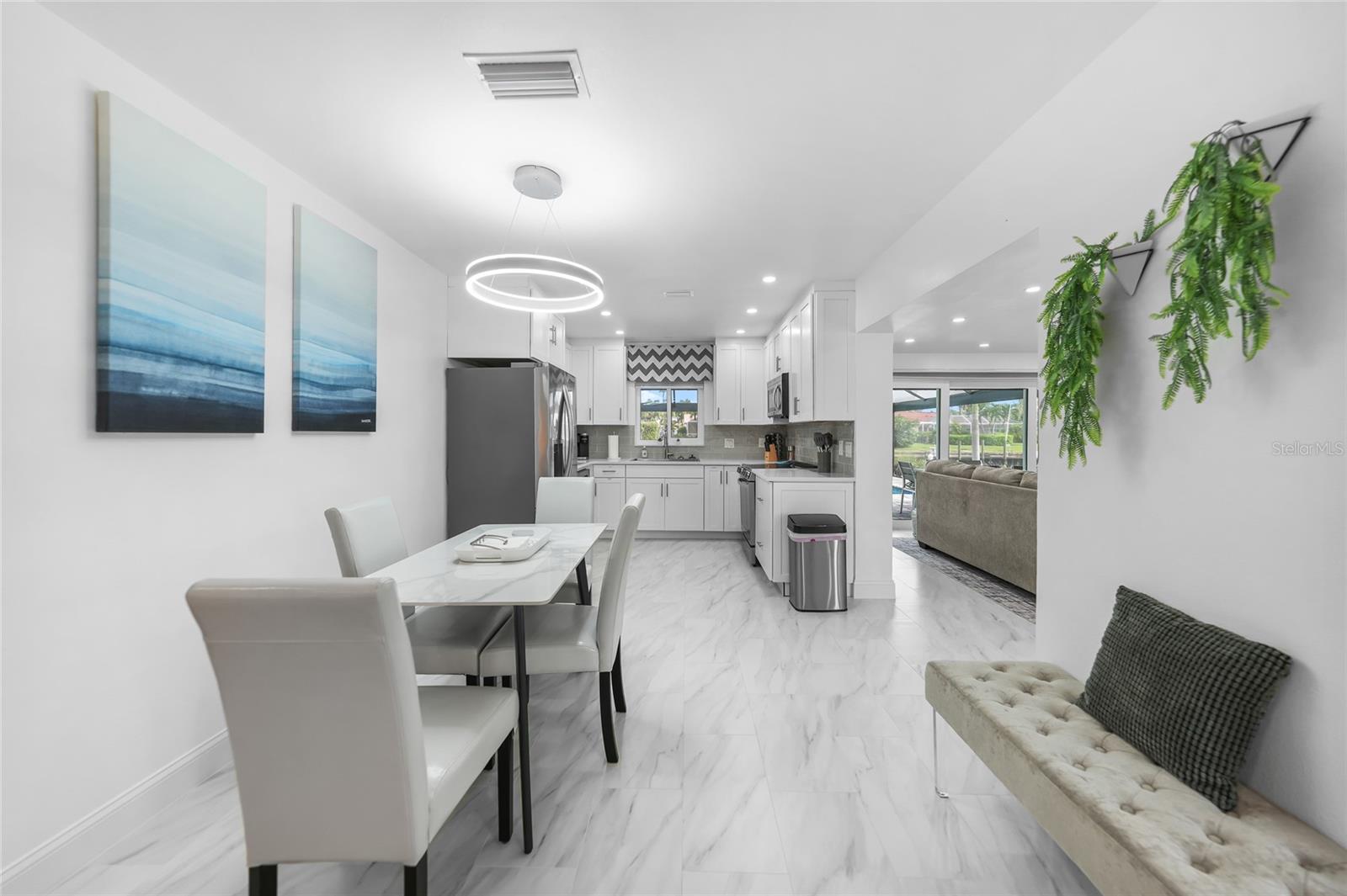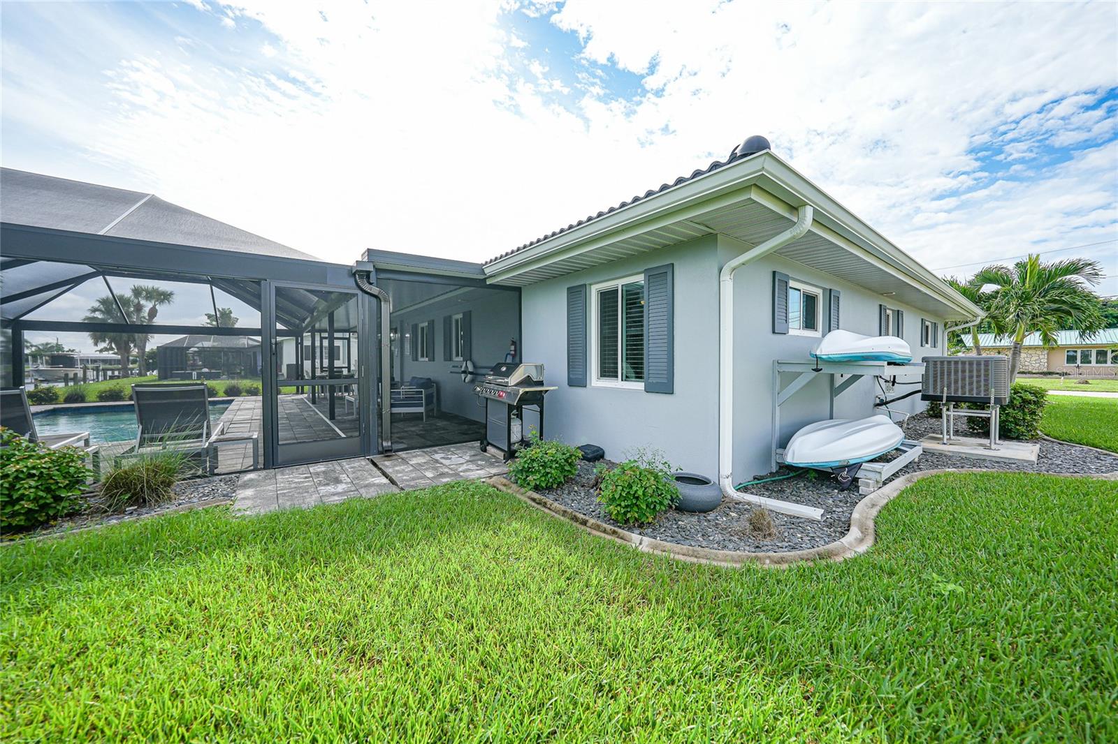 Welcome to 440 Capri Isles Court (Villa Capri) — a fully renovated, turn-key waterfront masterpiece in the heart of Punta Gorda Isles, offering modern elegance, resort-style living, and exceptional short-term rental potential. Perfect as a primary residence, vacation retreat, or income-producing investment, this contemporary villa is ideally located along the picturesque Swordfish Strait, just a scenic 30-minute walk to Fisherman’s Village. Every detail of this home has been thoughtfully curated. Inside, motorized living room shades and abundant natural light create a bright, open atmosphere that highlights the home’s sleek, modern design. The open-concept living and dining areas flow seamlessly into a stunning gourmet kitchen with quartz countertops, custom cabinetry, and high-end appliances. Impact-rated doors and windows frame beautiful water views while enhancing comfort, security, and energy efficiency. The owner’s suite serves as a private retreat with a spa-inspired ensuite bath and generous closet space, while additional bedrooms provide flexibility for family, guests, or rental use. The interior has been completely renovated, with all-new furnishings, fixtures, finishes, and décor— ready for move-in or rental. No detail has been overlooked. Step outside to experience true Florida waterfront living. The heated saltwater pool (2020) is surrounded by a screened lanai and enhanced by a 2023 picture-frame lanai that offers uninterrupted canal and dock views from the new dock built in 2021. Professionally landscaped tropical grounds, a propane gas grill, and tranquil water vistas make this outdoor space ideal for entertaining or relaxing at sunset. This home offers outstanding peace of mind with a new roof (2023), impact-rated windows and doors (2020), and added exterior security features, including a Ring doorbell and security system, remote water shut off system ( Wter Hero), exterior floodlight cameras, My Q remote garage door and a noise monitoring device — all designed to support responsible short-term rental use while maintaining privacy (no interior or pool-area cameras). Adding to its exceptional value, the property includes bicycles, kayaks, and fishing gear, enhancing both lifestyle enjoyment and vacation appeal. With direct water access, a prime Punta Gorda Isles location, and pristine condition throughout, Villa Capri stands out as a rare opportunity to own a stylish, secure, and income-ready waterfront home. Schedule your private showing today and experience the unmatched beauty, functionality, and Florida lifestyle of 440 Capri Isles Court.