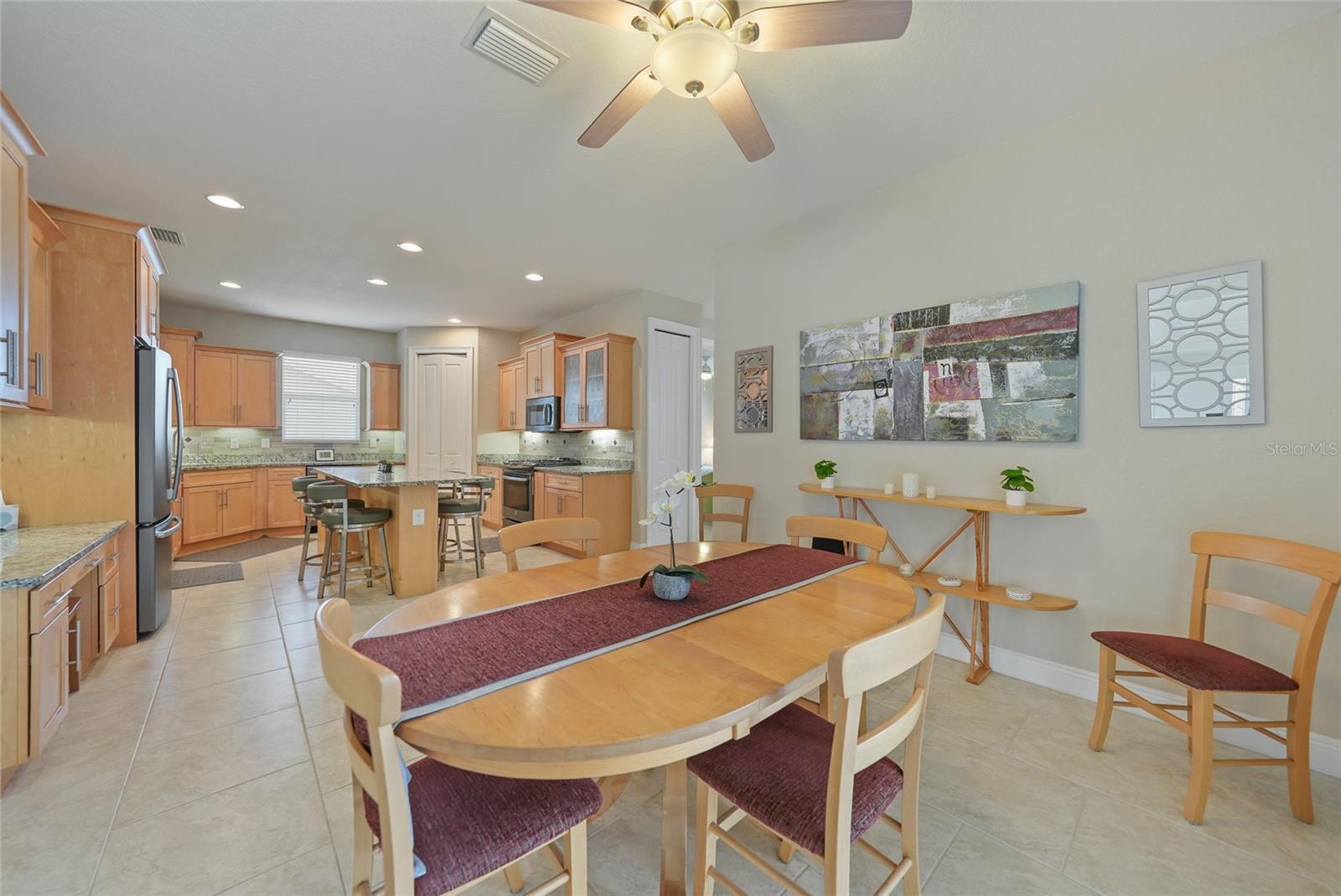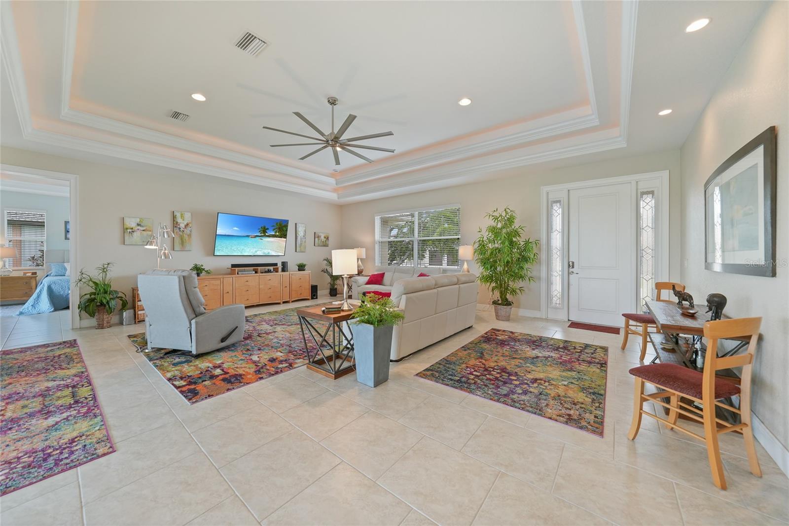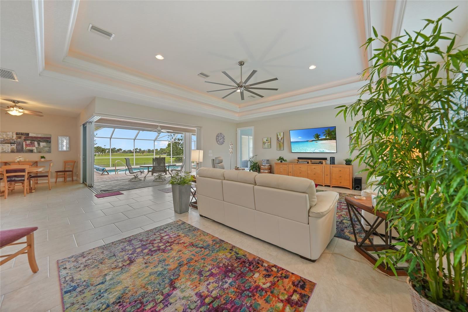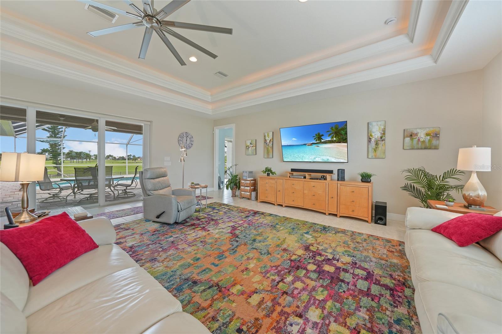 Welcome to 3829 Bordeaux Drive, perfectly situated on an oversized lot along the Twin Isles Golf Course in the sought-after community of Burnt Store Isles. Tucked away on a quiet street, this beautifully maintained home offers 3 bedrooms, 2 baths, and an oversized 3-car garage with 10 foot high doors and one of the bays is 30ft deep. It also features epoxy flooring and attic access. From the moment you step inside, the views will take your breath away. The expansive great room features backlit double tray ceilings with crown molding. The adjacent dining area as well as the great room boasts 8-foot hurricane-rated sliders that open fully to reveal the sparkling gas and/or solar-heated pool and spa overlooking the golf course and pond. The screened lanai is designed for relaxation and entertaining with paver flooring, wood ceilings, and a fully fenced backyard for added privacy. The chef’s kitchen showcases rich wood cabinetry with pull-out drawers, a tiled backsplash, stainless steel appliances, granite countertops, a GAS cooktop and oven, and a large 8-foot center island with seating. Just off the kitchen, a spacious utility room provides additional cabinetry, washer/dryer, utility tub, broom closet, and an extended home office area. The luxurious primary suite also opens to the lanai and features backlit tray ceilings, dual walk-in closets, a spa-like bathroom with Jacuzzi tub, walk-in shower, dual sinks, two linen closets, and a private water closet. A split floor plan ensures privacy, with two generously sized guest bedrooms on the opposite side of the home. They share a beautifully appointed full bath with dual sinks, granite counters, a linen closet, walk-in shower, and convenient pool access. Additional highlights include: tile flooring throughout (no carpet), reverse osmosis system, gas water heater, new HVAC (2023), and fresh exterior paint (2025). New Sprinkler Control Box (2025). Full Hurricane Protection. Homeowners Association is voluntary, and membership to Twin Isles Golf and Country Club is optional. This home is also conveniently located within close proximity to famous Fishermen’s Village, shopping, major highways and airports, and just a few minutes to downtown Punta Gorda, where you can enjoy its unique restaurants, pickle ball, biking, and waterfront activities.