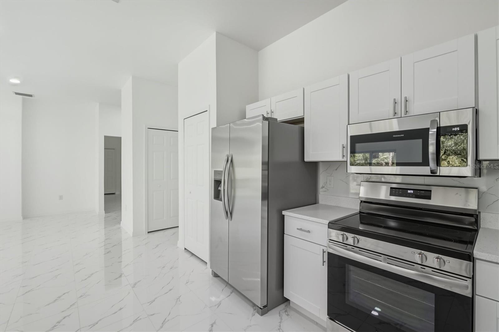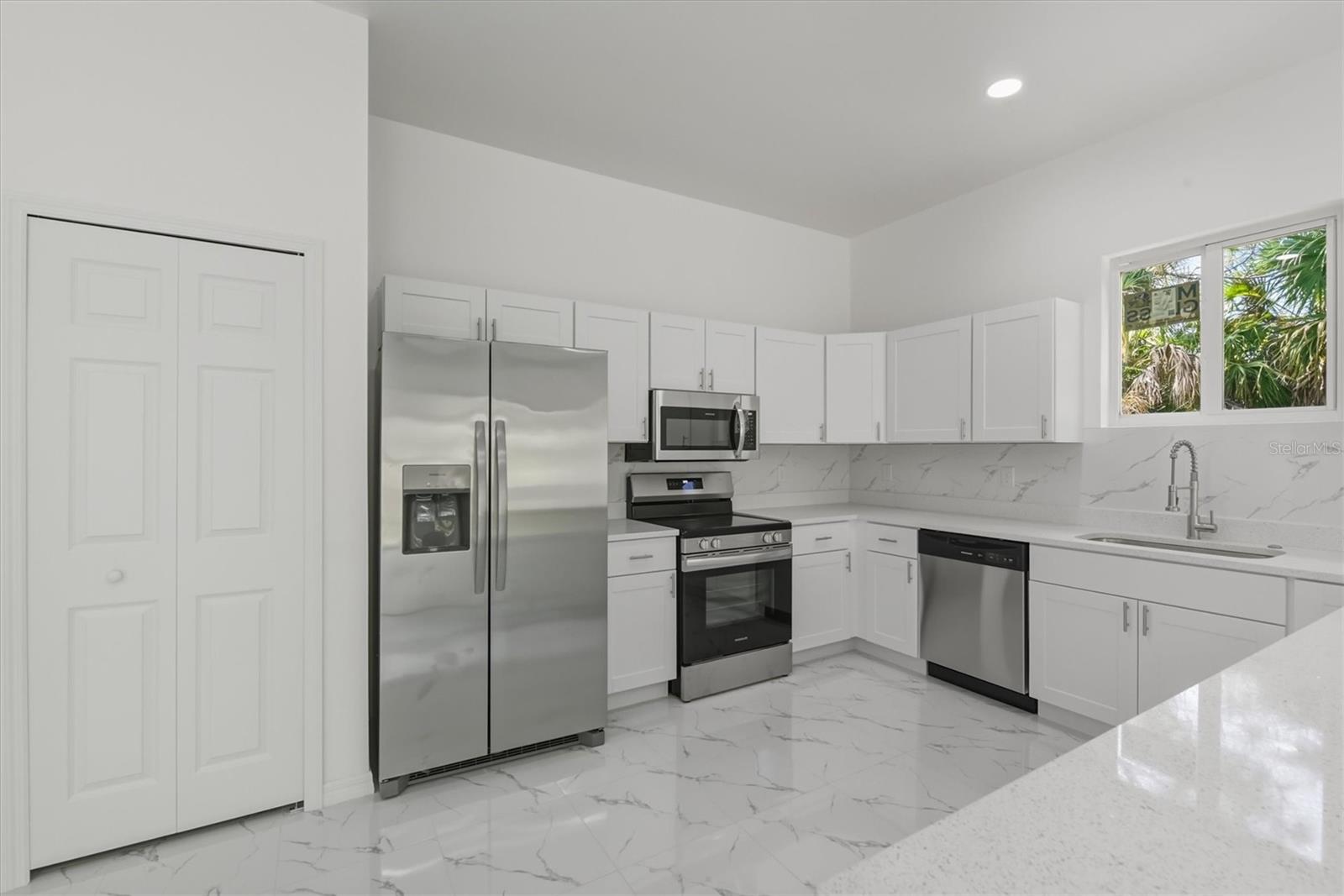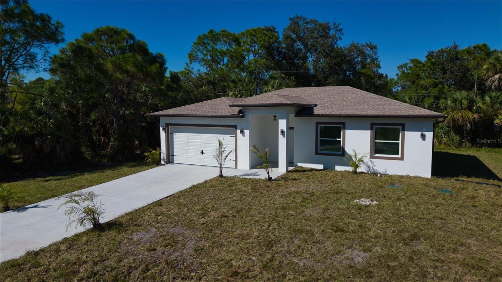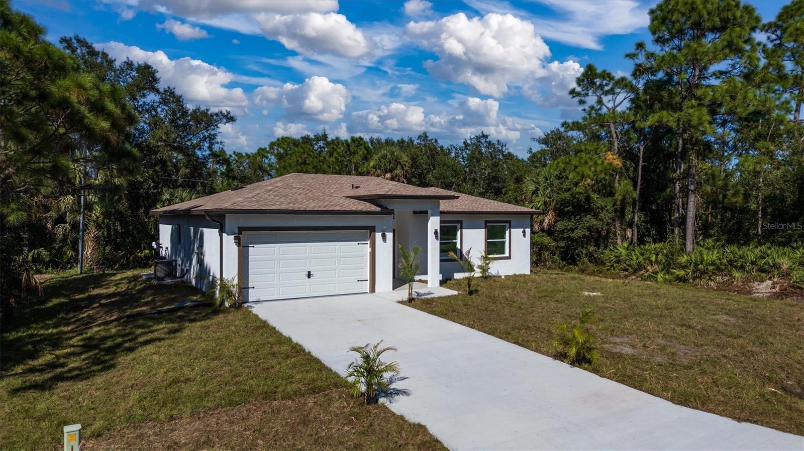 One or more photo(s) has been virtually staged. New Construction Oasis in Quiet South Punta Gorda! Welcome Home to this absolutely immaculate, newly constructed residence, fully finished and eagerly awaiting its first owner. Located on a serene, wooded lot in a quiet section of South Punta Gorda, this stunning 3-bedroom, 2-bathroom home offers modern luxury and peaceful Florida living. Key Features Include: Spacious Great Room: The heart of the home, perfect for families and entertaining, featuring high ceilings with recessed lighting and an open-concept design. Gourmet Kitchen: Equipped with sleek stainless steel appliances and elegant stone countertops. Modern Touches: Enjoy stylish tile flooring throughout the entire home and a sophisticated feature wall in the living area, complete with built-in recessed space for a television and an area for an electric fireplace. Luxurious Master Suite: A generous master bedroom boasting a large walk-in closet and an ensuite bathroom with stone counters and beautiful tiling. Elegant Bathrooms: Both full bathrooms feature modern tile work and durable stone countertops. Exceptional Garage: Oversized garage featuring a pristine epoxy floor. Ultimate Privacy: The property is surrounded by a peaceful and serene wooded landscape on all sides, offering a private retreat. This home is packed with modern features and thoughtful finishes, offering a seamless blend of style and comfort. Move right in and start living the relaxing Florida lifestyle you deserve. Just a short drive to all of your shopping needs, Publix, Home Depot, Walmart, Great local restaurants, downtown Punta Gorda, the famous Fisherman’s Village, multiple Golf courses, Laishley Marina, The Isles Yacht Club, Pickle ball courts, Ponce de Leon Park, and so much more. Call today for a private showing! This new build gem won't last long.