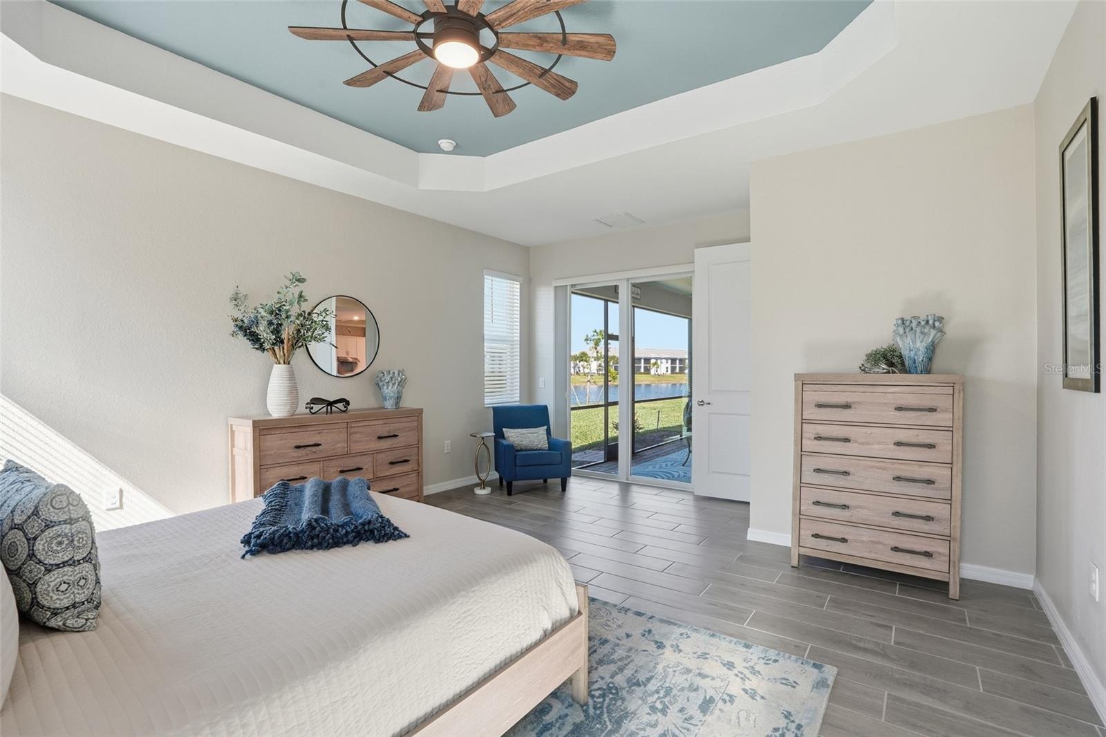 Welcome to this incredible Isabela floor plan home, nestled within the resort-style community of Heritage Landing in Punta Gorda, Florida. Built in 2024 this residence feels brand new, enhanced with thoughtful upgrades throughout. Fresh interior paint, wood-look tile flooring in every room, elegant crown molding in recessed ceilings, and a custom wood valance above the living room sliding door all elevate the home’s modern-coastal charm. The kitchen is a showpiece of style and functionality, featuring a beautifully tiled backsplash, chic rattan pendant lighting, stainless steel appliances, granite countertops, and plenty of shaker cabinetry—perfect for cooking and entertaining. Retreat to the luxurious primary suite, spacious enough for all your bedroom furniture plus seating and offering two generous walk-in closets. The ensuite bathroom delivers a spa-like experience with its garden tub, walk-in shower, split vanities, linen closet, and private water closet. The coastal elegance continues throughout the home with accent paint, ceiling fans, and flexible living spaces. Enjoy three full bedrooms—or customize one as an office, den, or creative retreat. The guest bathroom is equally refined, featuring a sleek frameless glass shower door. Your included social membership unlocks an exceptional lifestyle with pickleball, tennis, and bocce ball, a 24/7 fitness center, spa and sauna and access to five heated community pools. There are dining options of either the Tiki Bar or Clubhouse. Heritage Landing is truly resort living at its finest. Finally, end each day on your spacious lanai, taking in serene water views and spectacular Florida sunsets. This home blends luxury, comfort, and an unbeatable lifestyle—don’t miss your chance to make it yours.