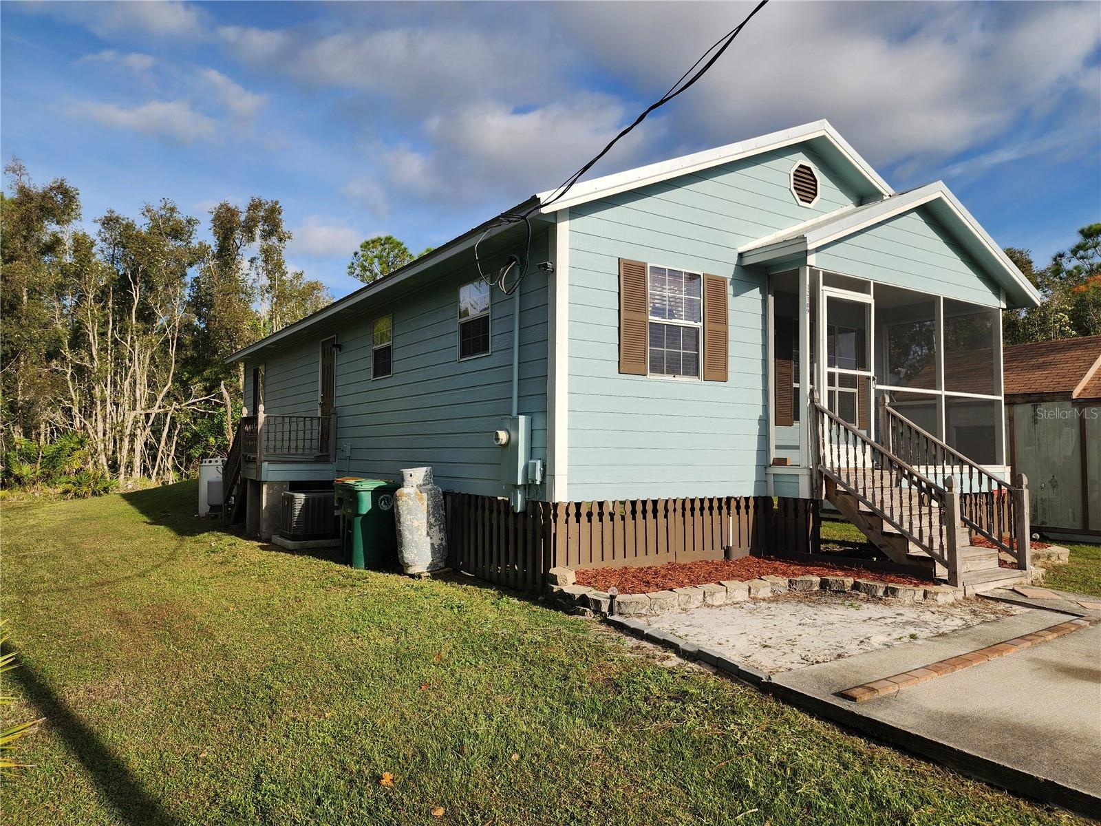 JIM WALTERS SAN ANTONIO CUSTOMIZED MODEL – SPACIOUS 2/2 ON OVER A QUARTER ACRE WITH WORKSHOP! Welcome to this charming 2-bedroom, 2-bath home nestled on over a quarter acre of land in Tropical Gulf Acres—where peace and privacy meet convenience! With no HOA fees, a large workshop, and plenty of storage, this property offers the perfect blend of comfort and functionality.As you enter through the screened front porch, you’re greeted by a bright and spacious living room featuring built-in shelving, a ceiling fan, and abundant natural light—a perfect space for relaxing or entertaining. The dining area flows seamlessly into the kitchen, which is equipped with a stainless steel refrigerator, gas stove, closet pantry, and a large sink.Just off the kitchen, you’ll find the indoor laundry room with convenient back door access to the yard. Down the hall, two generous bedrooms provide comfortable living space. The primary suite features a walk-in closet and a private bath with tasteful tile flooring, single vanity, and a walk-in shower. The guest bedroom offers ample space and access to its own full bath with a tub/shower combo. Step outside to your large workshop, complete with concrete flooring, barn-style doors, and ample storage space—ideal for car enthusiasts, woodworkers, or anyone needing a versatile workspace. Recent updates include a 2022 metal roof, 2024 A/C, 2023 in-ground well pump, and a 2025 water heater—providing peace of mind for years to come! Enjoy quiet, peaceful surroundings while being just minutes from everything—easy access to I-75, US 41, North Port/Sarasota, Cape Coral/Ft. Myers, and historic downtown Punta Gorda with its fine dining, boutique shopping, and waterfront charm. Don’t miss your chance to own this well-maintained Florida home—schedule your private showing today!