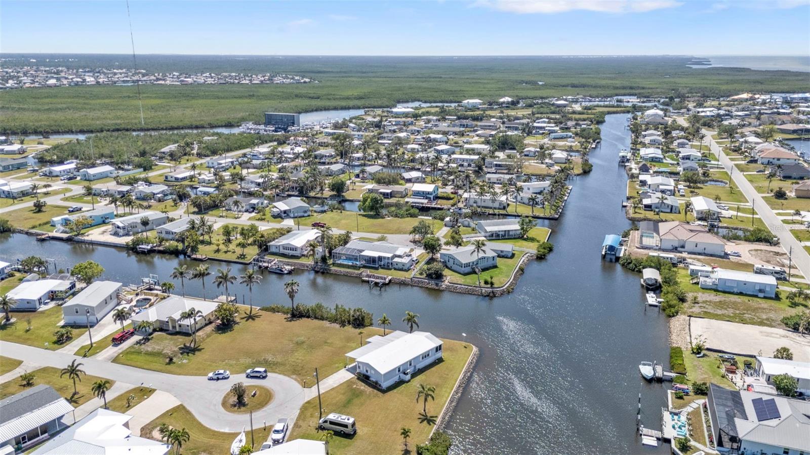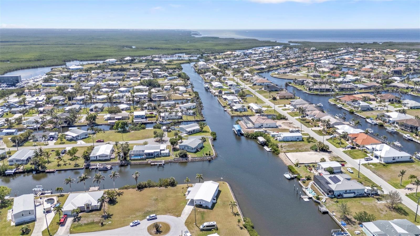 Welcome to your waterfront oasis—featuring an impressive 226 FEET OF SALTWATER CANAL FRONTAGE right outside your back door! Situated on a DOUBLE LOT (.30 acres) at the end of a quiet cul-de-sac, this one-owner, well-maintained, fully furnished home offers a rare blend of privacy, space, and unmatched water views. Enjoy breathtaking 360° water views from almost every room! Recent upgrades include a brand-new metal roof (Oct. 2024), hurricane accordion shutters, and high-elevation construction, providing peace of mind and long-term durability—ideal for your Florida retreat. Step inside to an open, light-filled layout with spacious living areas perfect for hosting family and friends. The kitchen provides ample countertop and cabinet space, giving you plenty of room for all your cooking essentials. The outdoor living space is the true showstopper—TWO large screened porches overlook the serene canal, creating the perfect backdrop for morning coffee, afternoon relaxation, or unforgettable sunset gatherings as boats glide by. Located in a desirable Punta Gorda neighborhood with NO HOA and NO deed restrictions, this property is golf-cart friendly and offers the freedom to bring your boat, RV, and all your toys—store them right at home! Don’t miss this rare opportunity to own a slice of waterfront paradise. Schedule your private showing today!