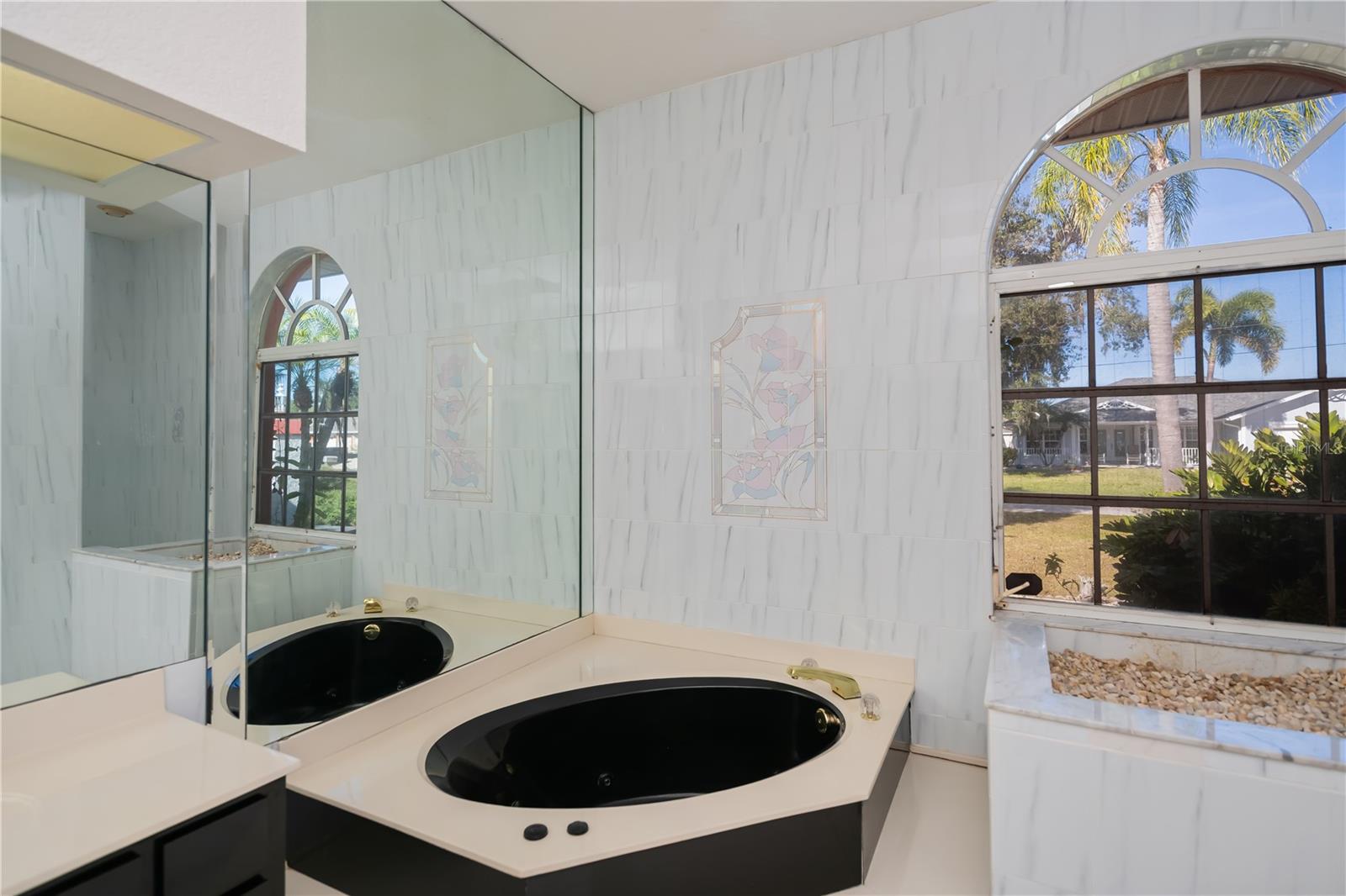 This grand ESTATE SIZED 3-bedroom, 3-bathroom, 2-car garage POOL HOME offers nearly 3,000 square feet of refined living space, perfectly nestled on a TRANQUIL CUL-DE-SAC in Deep Creek. Enjoy SERENE GREENBELT VISTAS that enhance your PRIVACY and create a peaceful retreat. An extended driveway, mature landscaping, and an elegant arched covered entryway welcome you with timeless charm and sophistication. The expansive living room features soaring ceilings adorned with skylights and elegant chandeliers, complemented by marble-look tile flooring that imbues the space with an exquisite sense of grandeur. Wide sliding glass doors seamlessly merge indoor and outdoor living, opening to a spacious lanai and inviting pool area. The open-concept layout flows effortlessly into the family room and dining area, complete with a built-in wet bar—perfect for entertaining guests. The kitchen is a chef’s dream, showcasing a central island with a cooktop, built-in stainless steel appliances, ample cabinetry, generous counters, and abundant natural light, along with sliding doors that offer direct access to the outdoors. The private primary suite is a luxurious sanctuary featuring double-door entry, pool access, a walk-in closet, and an ensuite bath equipped with dual sinks, a walk-in shower, jetted soaking tub, bidet, and linen closet. Two additional guest bedrooms are thoughtfully connected by a convenient Jack and Jill bathroom. Outside, a spacious covered lanai with ceiling fans overlooks the screened pool area, where a sparkling pool with a cascading waterfall and brick paver decking await. A dedicated pool bath with a shower adds to the home's exceptional functionality.Additional highlights include a laundry room with washer and dryer, hurricane shutters, a 2023 roof, and skylights, all combining for unparalleled comfort and value in this distinguished residence.With public sewer, and public water, this home offers carefree Florida living in one of Deep Creek’s most sought-after locations.. This is the Florida lifestyle you have been dreaming of year round or a wonderful winter escape ready for you to start enjoying now. Close to dining, entertainment, beaches, Sunseeker resort, downtown historic Punta Gorda, I-75, PG Airport and in a nice deed restricted community with low yearly hoa. Don’t miss your opportunity to own this gorgeous retreat and enjoy the best of Deep Creek living, this home is priced to move quickly, schedule your showing TODAY!