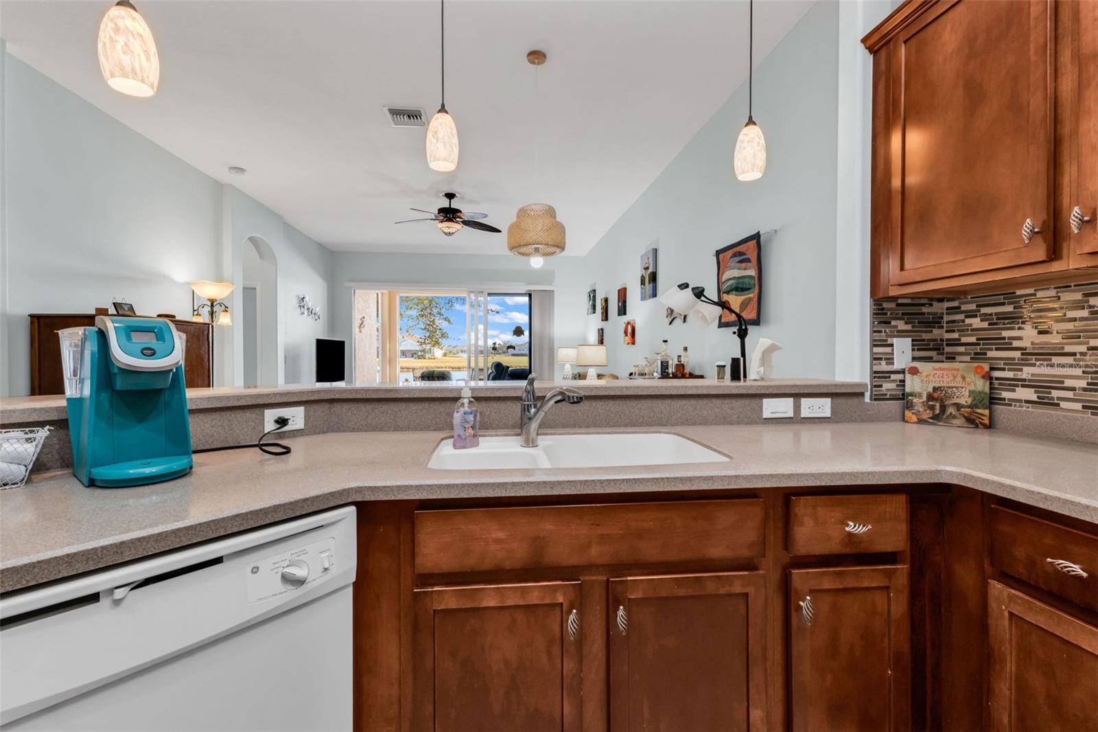 Under contract-accepting backup offers. STUNNING VIEW of fountain, water, 1st hole at this well cared for Villa in the gated golf course/active resort of highly desirable Kings Gate, a 55+ community that is NOT in a flood zone and DOES NOT require flood insurance. This FULLY FURNISHED 2010 built Villa includes hurricane rated windows, 2022 roof, 2022 AC, 2023 HWH, tile/laminate throughout (NO CARPET), freshly painted in 2023, corian counters in kitchens and bathrooms, and an oversized/screened in lanai offering one of the very best views in all of KINGS GATE. As you approach this villa you'll enjoy the gorgeous curb appeal before noticing the screened in entry providing a great location to read the morning paper while enjoying your morning cup of coffee. Step inside this villa and you'll appreciate the seamless nature of the open concept at the kitchen flows into the dining room - living room - lanai. The master bedroom in the back left of the villa offers generous size his/her walk-in closets while the guest bedroom functions as an ensuite with access to the guest bathroom. There's no question though that you are going to love watching the morning sunrise and all the nature provided by the large pond just outside your screened in lanai. And if you haven't been to Kings Gate before - you're going to love the options for activity (Olympic size heated swimming pool and spa, tennis courts, pickle ball, lawn bowling, shuffle board, bocce, horseshoes, gym, billiards, library, euchre, bingo, bridge, Texas hold em, poker, mahjong and more). The onsite AND NEWLY REMODELED Lions Den restaurant and bar is super convenient and also offers Tuesday night Karaoke and monthly trivia contests. Many residents love the fact that they are just a golf cart ride away from the shopping plaza that provides you access to grocery store (ALDI), drug store, bank, restaurants and shopping. Want to explore outside of Kings Gate – you are minutes away from the restaurants and shops of downtown Punta Gorda and Fisherman's village. And if you want to explore more of Florida's fun spots you’re near I75 to quickly head north or south. An AMAZING VILLA with a MILLON dollar view that is nicely updated in a PREMIER gated community won't last long. Call today for a private showing and a golf cart tour of the community/amenities.