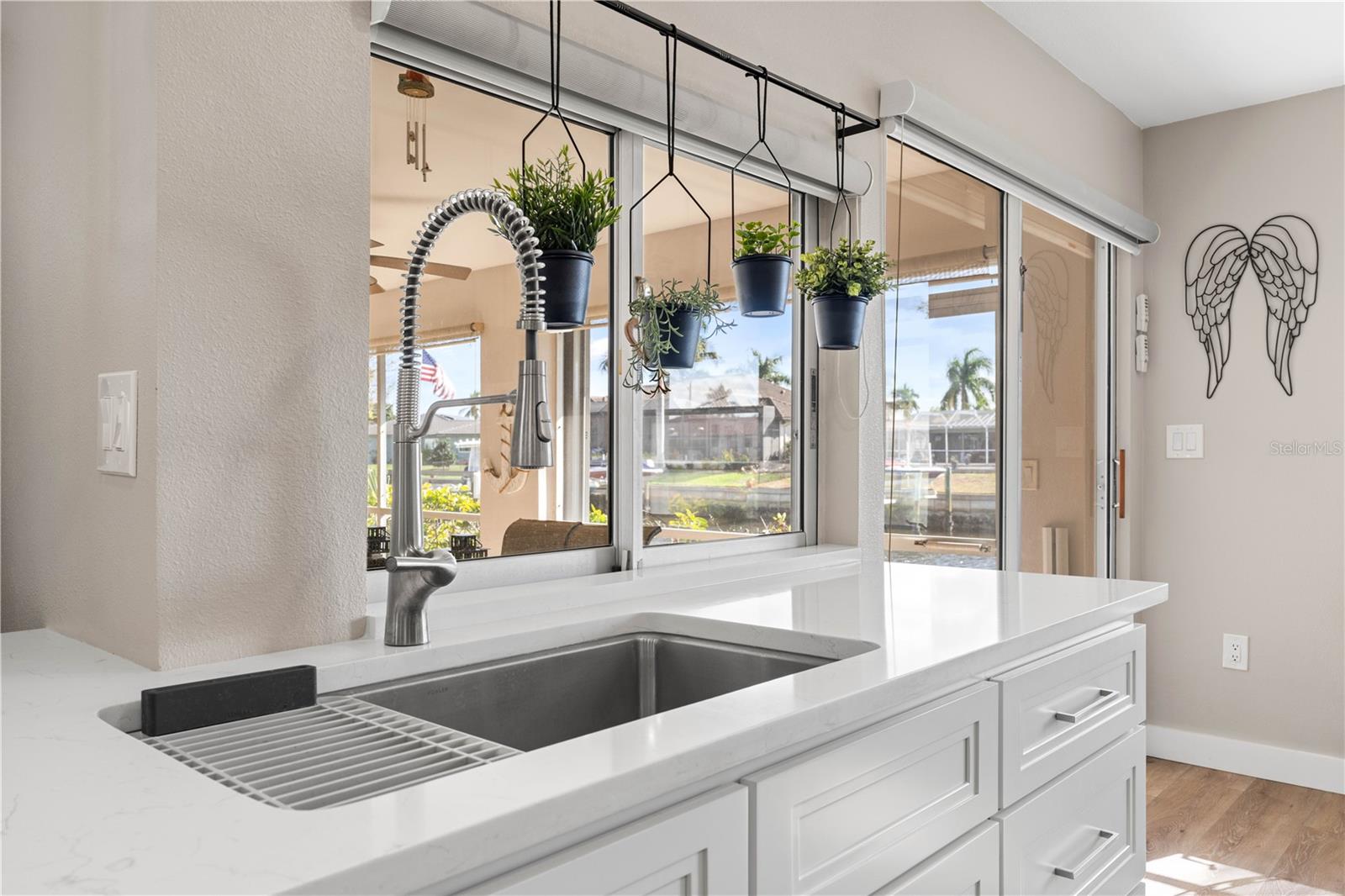 NEWLY RENOVATED PGI WATERFRONT HOME W/82 FT OF SEAWALL, SOUTHERN REAR EXPOSURE & QUICK BOATING ACCESS - Enjoy the Punta Gorda Isles lifestyle from this updated, move-in-ready, 3 beds/2 bath waterfront home. Set along a wide canal with 82 feet of seawall, the property delivers access to open water in under 15 minutes from your backyard. Inside, the open-concept floor plan flows seamlessly from the living room to the dining area and kitchen. Luxury vinyl plank flooring, recessed lighting, and neutral finishes create a bright, cohesive space ideal for entertaining or relaxing. Large sliding glass doors frame the water view and connect the interior to the screened lanai, reinforcing true Florida-style indoor/outdoor living. The updated kitchen features white shaker cabinetry, quartz counters, NEW stainless steel appliances, and an oversized peninsula with seating that acts as the natural gathering point of the home. The dining area sits conveniently between the kitchen and living room, offering flexibility for casual meals or hosting friends and family. The master suite boasts private lanai access and canal views, creating a calm, comfortable retreat. The renovated master bath includes a walk-in tiled shower, modern vanity, and updated fixtures. Two additional guest bedrooms and a full guest bath provide space for visitors, hobbies, or a home office. Out back, the southern rear exposure keeps the screened lanai sun-filled throughout the day. The backyard offers room to add a dock or pool if desired, while the wide canal view sets the stage for boating, kayaking, or simply enjoying the waterfront setting. Recent improvements provide peace of mind and modern appeal, including a NEW metal roof (2023), NEW LVT flooring (2025) throughout most of the home, NEW A/C system (2025), updated kitchen and primary bath (2025), and a NEW water softener (2024). Other amenities include whole-house hurricane protection and an oversized two-car garage. Located in Punta Gorda Isles with no HOA, optional membership to the PGI Civic Association offers social clubs, activities, and community events. Miles of sidewalks connect to St. Andrews South Golf Course, Fishermen’s Village, downtown Punta Gorda, and the Ring Around the City walking trails. Make an appointment today and take advantage of the boating and active waterfront lifestyle that make Punta Gorda Isles so desirable.