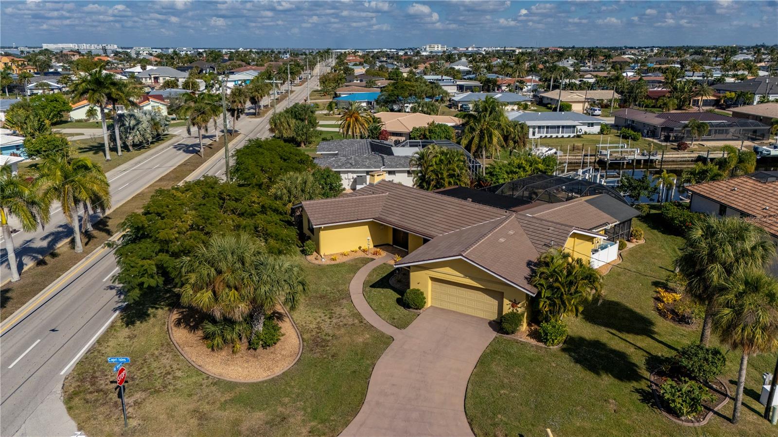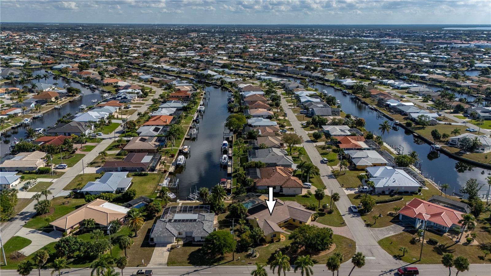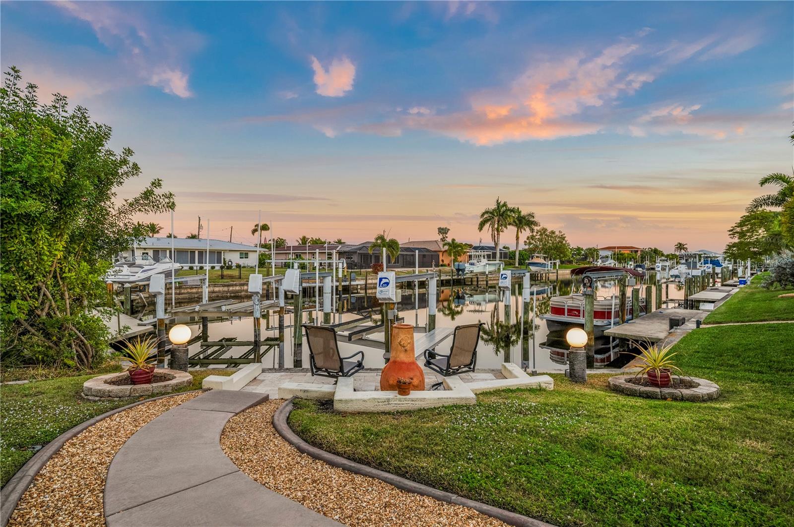 STUNNING WATERFRONT HOME! Days here begin by the water and end beneath glowing skies, with a private dock, heated pool, and thoughtfully updated interior creating a home that lives as beautifully as it looks. An impressive waterfront offering, this home stands apart with DIRECT Gulf access, refined living spaces, and a comprehensive list of recent upgrades. From the street, the home impresses with lush landscaping, irrigation, and fresh exterior paint beneath a new 2024 roof. The NEW Impact-rated windows and doors (2025) also provide peace of mind (front door has Kevlar shutters). Inside the double-door entry, an inviting layout unfolds, highlighted by travertine flooring, upgraded trim work, and abundant natural light. The great room anchors the home and flows seamlessly into the gourmet kitchen, where granite countertops, custom cabinetry, updated appliances, and a modern induction cooktop create a space ideal for both entertaining and everyday living. The adjacent dining area enjoys uninterrupted views of the oversized lanai, pool, and tranquil waterway beyond. One wing of the home offers two guest bedrooms and a beautifully updated hall bathroom. Guest bedroom one features terrazzo flooring and two built-in closets, while the third bedroom is finished with luxury vinyl flooring, offering excellent flexibility for guests or a home office. The Florida Room provides a versatile gathering space with sliding glass doors that open to the expansive outdoor living area. The lanai is a true highlight, offering generous shaded seating, a separate pavered sun deck, and a large 2017 PebbleTec-finished salwater heated pool with both a heater and solar heat. Mature avocado, mango, and starfruit trees enhance the setting, adding both privacy and a tropical backdrop. The primary suite is privately positioned and features a spacious walk-in closet with a large safe and an updated en-suite bathroom with a luxurious vanity with storage, dual sinks and walk-in shower with seating. Nearby, the laundry room offers abundant storage, a second refrigerator, and direct access to the oversized two-car garage with workshop space. At the water’s edge, a dock and boat lift added in 2019 are perfectly suited for a monohull vessel and provide fast, direct access to Charlotte Harbor and the Gulf. A second waterfront patio with an outdoor chimenea and seating creates an ideal space for relaxing by the water. Transferable flood insurance adds additional value and convenience. Ideally located for both boating and walkability, this home is just minutes from Ponce Park, Fishermen’s Village, and downtown Punta Gorda, offering easy access to restaurants, shopping, farmer’s markets, festivals, and waterfront events. This exceptional property seamlessly blends luxury, comfort, and an effortless coastal lifestyle.