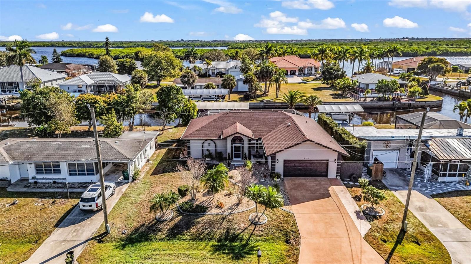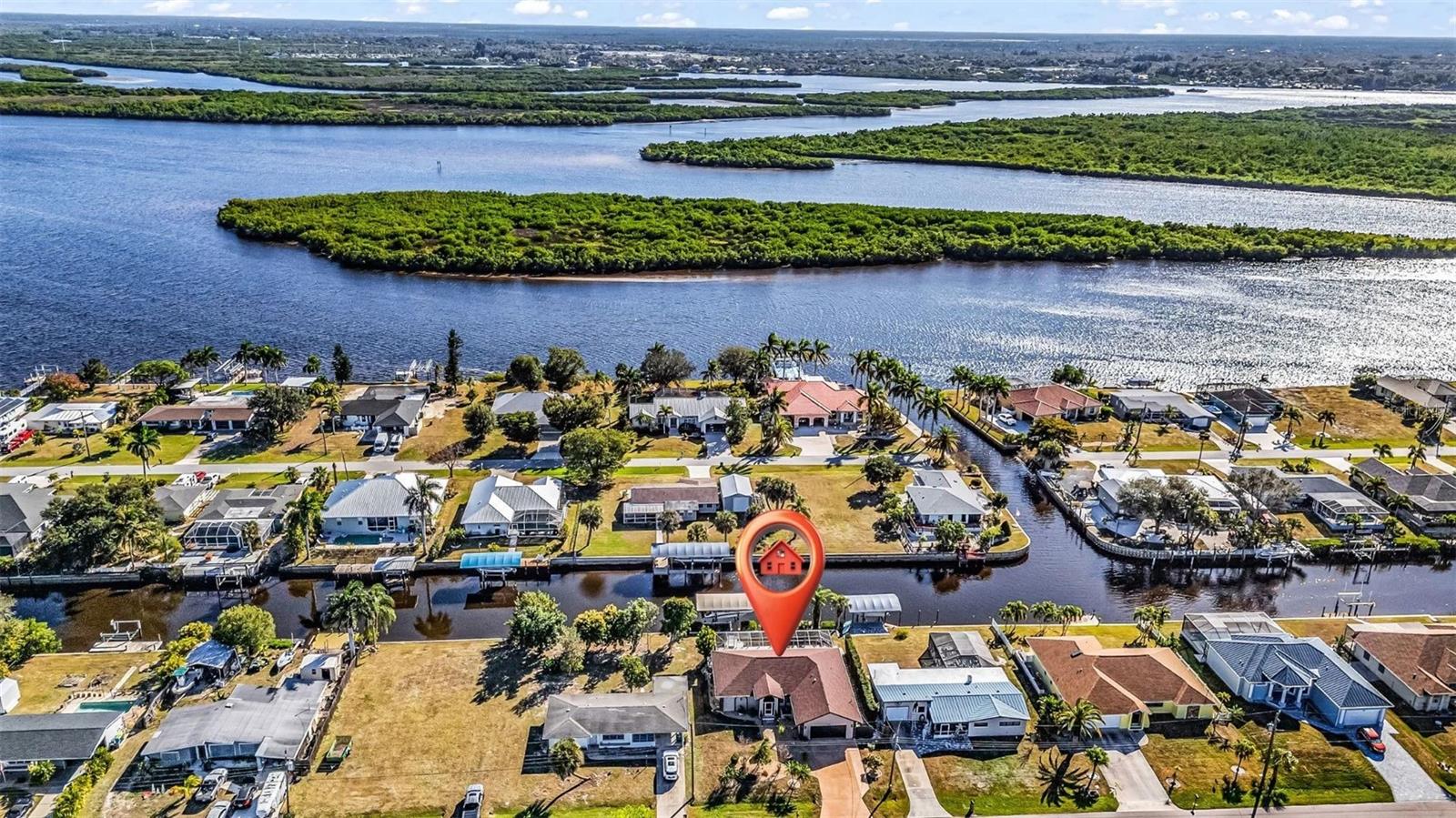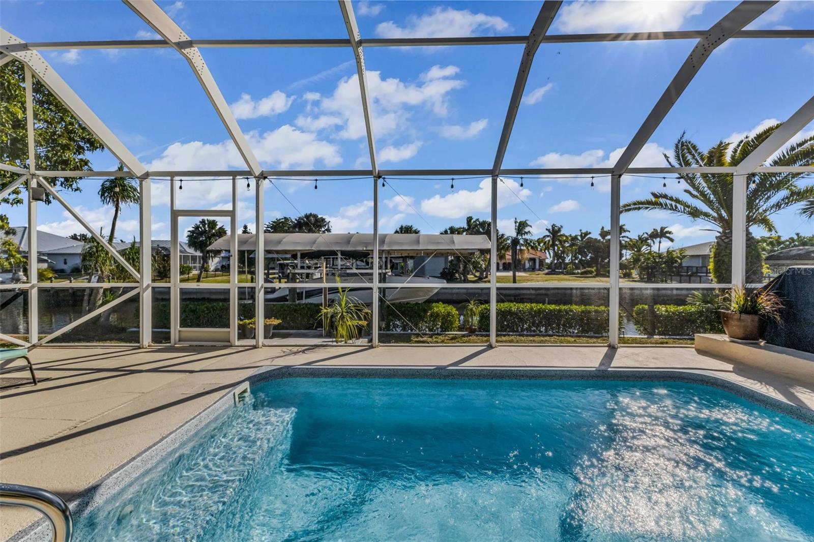 Welcome to your Florida dream home in desirable Harbor Heights, where boating, fishing, and waterfront living come together effortlessly. This beautifully remodeled 2-bedroom, 2-bath residence is perfectly situated on a saltwater canal with no bridges and quick Gulf access, allowing you to jump on your boat and be out to the Peace River and the Charlotte Harbor In in just minutes. Designed for both comfort and entertaining, the home features an open and split floor plan with stunning water views from the main living areas. The gourmet kitchen overlooks the pool and canal and offers granite countertops, updated cabinetry, and a layout ideal for everyday living or hosting guests. The spacious living room is enhanced by a custom electric fireplace, creating a warm and inviting atmosphere. Step outside to a large screened lanai that showcases tranquil canal views, perfect for relaxing after a day on the water. The heated pool invites year-round enjoyment, while the covered boat lift with electric makes boating simple and convenient. Cast a line from your own backyard or enjoy the peaceful waterfront setting—this is true Florida living with views of Peace River from Backyard. The primary suite is generously sized with tile flooring, a walk-in closet, and a well-appointed en-suite bath featuring dual sinks, a walk-in shower, and abundant storage. The second bathroom doubles as a pool bath and includes a jetted tub with shower, ideal for guests or post-pool convenience. This property has been meticulously maintained and upgraded throughout, offering peace of mind and pride of ownership. Located in a no HOA community, you’ll enjoy flexibility and freedom with quick access to boating, fishing, and the open waters of Charlotte Harbor. Flood insurance is currently approximately $2,400 and assumable, adding additional value. Whether you’re seeking a full-time residence, winter retreat, or waterfront getaway, this exceptional Harbor Heights home delivers lifestyle, location, and lasting value—all in one remarkable package.