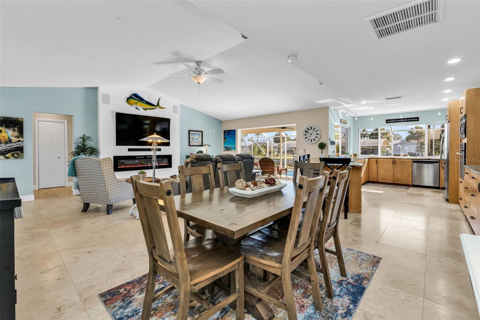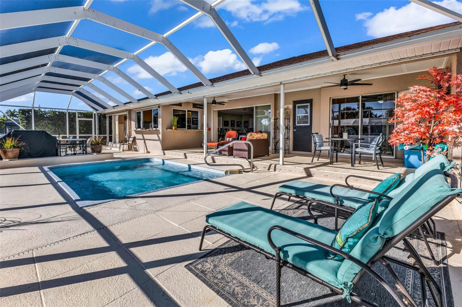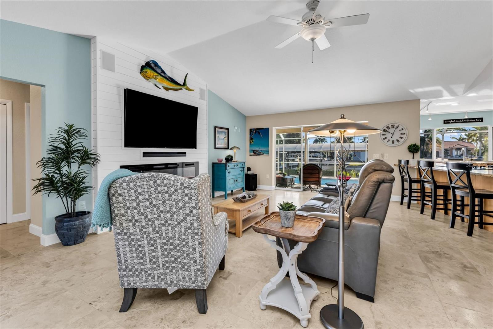 Welcome to your Florida dream home in desirable Harbor Heights, where boating, fishing, and waterfront living come together effortlessly. This beautifully remodeled 2-bedroom, 2-bath residence is perfectly situated on a saltwater canal with no bridges and quick Gulf access, allowing you to jump on your boat and be out to the Peace River and the Charlotte Harbor In in just minutes. Designed for both comfort and entertaining, the home features an open and split floor plan with stunning water views from the main living areas. The gourmet kitchen overlooks the pool and canal and offers granite countertops, updated cabinetry, and a layout ideal for everyday living or hosting guests. The spacious living room is enhanced by a custom electric fireplace, creating a warm and inviting atmosphere. Step outside to a large screened lanai that showcases tranquil canal views, perfect for relaxing after a day on the water. The heated pool invites year-round enjoyment, while the covered boat lift with electric makes boating simple and convenient. Cast a line from your own backyard or enjoy the peaceful waterfront setting—this is true Florida living with views of Peace River from Backyard. The primary suite is generously sized with tile flooring, a walk-in closet, and a well-appointed en-suite bath featuring dual sinks, a walk-in shower, and abundant storage. The second bathroom doubles as a pool bath and includes a jetted tub with shower, ideal for guests or post-pool convenience. This property has been meticulously maintained and upgraded throughout, offering peace of mind and pride of ownership. Located in a no HOA community, you’ll enjoy flexibility and freedom with quick access to boating, fishing, and the open waters of Charlotte Harbor. Flood insurance is currently approximately $2,400 and assumable, adding additional value. Whether you’re seeking a full-time residence, winter retreat, or waterfront getaway, this exceptional Harbor Heights home delivers lifestyle, location, and lasting value—all in one remarkable package.