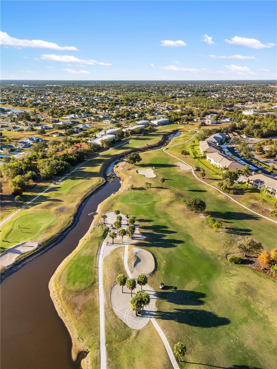 Front Row Seats to the Fairway! Turnkey End-Unit Townhome Experience the ultimate Florida lifestyle in this beautifully maintained 2-bedroom, 2.5-bathroom end-unit townhome, overlooking holes 13, 14, and 15 of the prestigious Deep Creek Golf Course. Sold turnkey furnished, this home is ready for you to move in and start playing! The open-concept main floor features a with warm kitchen wood cabinetry and solid-surface countertops, flowing seamlessly into a spacious living area. Step through the sliders to your private screened lanai—the perfect spot for morning coffee with a golf course view. Upstairs, the primary suite serves as a true retreat with its own private balcony and en-suite bath. Guest accommodations are equally impressive, featuring a "Jack and Jill" style entry for added privacy. With one of the lowest HOA fees in deed-restricted Deep Creek and a sparkling community pool just steps away, this is high-end living without the high-end price tag. Minutes from PGD Airport, Fisherman’s Village, and world-class Gulf beaches! Option 2: The "Move-In Ready" Pro Best for first-time buyers or investors looking for a low-maintenance property. Headline: Rare 2-Story End-Unit in Deep Creek – Just Bring Your Suitcase! Golf course living meets effortless convenience in this stunning 2-story townhome. Located in the heart of Deep Creek, this unit offers privacy as an end-unit and breathtaking views of three different golf holes. The layout is designed for comfort, featuring a convenient half-bath on the ground floor, a breakfast bar for casual dining, and a large pantry. The second floor hosts two spacious bedrooms, including a master suite with a private balcony overlooking the greens. This home comes fully furnished, making it an ideal choice for winter home or a first-time buyer wanting a seamless transition. Enjoy the community’s screened-in pool area or take a short drive to Punta Gorda’s historic district. Situated just 9 miles from Allegiant-serviced PGD Airport and less than 30 minutes from the Rays' spring training stadium and beaches you are perfectly positioned for work, play, and travel. Minutes to fine dining, shopping and the best beaches in Florida just a short drive.