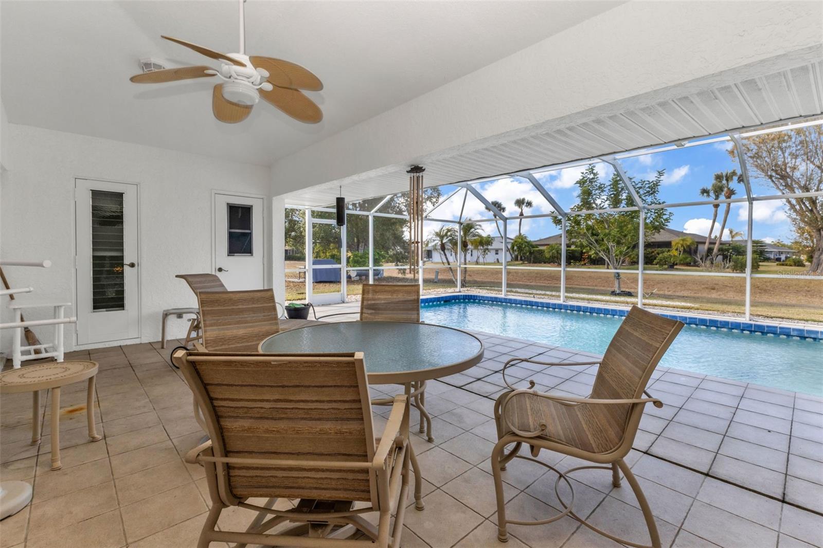 Welcome home to this spacious and inviting 3-bedroom, 2-bath single-family Pool home located in the highly desirable Deep Creek – Section 23 community. Thoughtfully designed on a single level, this home offers over 2,000 square feet of comfortable living space, ideal for everyday living and entertaining. The open, split-floor plan creates a warm and welcoming feel while providing privacy, with generously sized bedrooms—each featuring walk-in closets. Step outside to your screened lanai and pool, the perfect space for hosting gatherings or relaxing poolside while enjoying Florida’s natural surroundings. The home sits on a .23-acre lot with eastern front exposure, allowing for beautiful natural light throughout the day. Offered furnished, this property makes moving in easy—whether you’re looking for a full-time residence, seasonal getaway, or investment opportunity. Additional highlights include an attached two-car garage, durable stucco and concrete construction, and Flood Zone X, meaning no flood insurance is required by lenders. Deep Creek is a deed-restricted community, helping maintain its well-kept appearance and long-term value. Residents enjoy low annual HOA fees, public utilities, pet-friendly living, and a convenient location close to shopping, dining, schools, and major roadways in Punta Gorda. This well-located home offers comfort, convenience, and value at an attractive price point. Don’t miss your opportunity to make it yours.