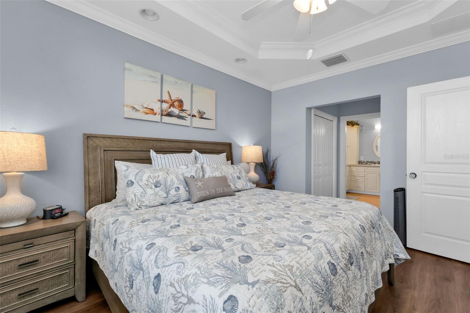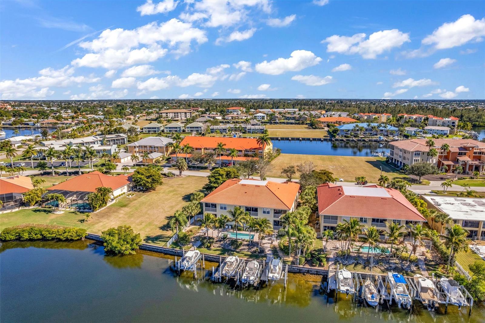 Enjoy effortless Florida waterfront living in this beautifully upgraded second-floor furnished condo offering 2 bedrooms plus a versatile den, 2 full baths, a private garage, and a deeded dock in the sought-after Estuary at Punta Gorda Isles. Perfect for hosting family and friends, this versatile floor plan comfortably accommodates eight guests with a den serving as a third sleeping area, and a queen pull-out sofa in the main living space. Positioned on a quiet cul-de-sac, this residence delivers true sailboat access with no bridges to Charlotte Harbor and the Gulf, making it ideal for boaters and sunset lovers alike. The bright, airy interior features an inviting open layout designed for both everyday comfort and entertaining, with a chef-friendly kitchen showcasing granite counters, custom tile backsplash, stainless appliances, ample cabinetry, and a breakfast bar overlooking the main living space. Expansive sliding doors lead to a screened lanai where tranquil canal and preserve views combine with western exposure for unforgettable evening skies. The private primary suite offers peaceful water views, dual closets, and a well-appointed ensuite bath, while a spacious guest room, full guest bath, and flexible den easily accommodate guests or a home office. Thoughtful upgrades include luxury vinyl plank flooring, crown molding, tray ceilings, impact windows, lanai hurricane protection, retractable front door screen, Nest thermostat, updated baths, inside laundry with sink and storage, and multiple mounted smart TVs. Major improvements include a 2023 HVAC with extended warranty, newer appliances(2020), water heater(2020), washer and dryer(2021), garage door opener(2023), ceiling fans, and plumbing fixtures. The Estuary is a beautifully maintained Mediterranean-style community with new tile roofs, brick pavers, and a newly renovated resort-style pool and spa (2025), supported by a financially strong HOA with no storm-related assessments. Just minutes from downtown Punta Gorda, Fishermen’s Village, golf, waterfront parks, trails, dining, shopping, and cultural events, this move-in-ready condo offers the perfect blend of boating, comfort, and coastal lifestyle.