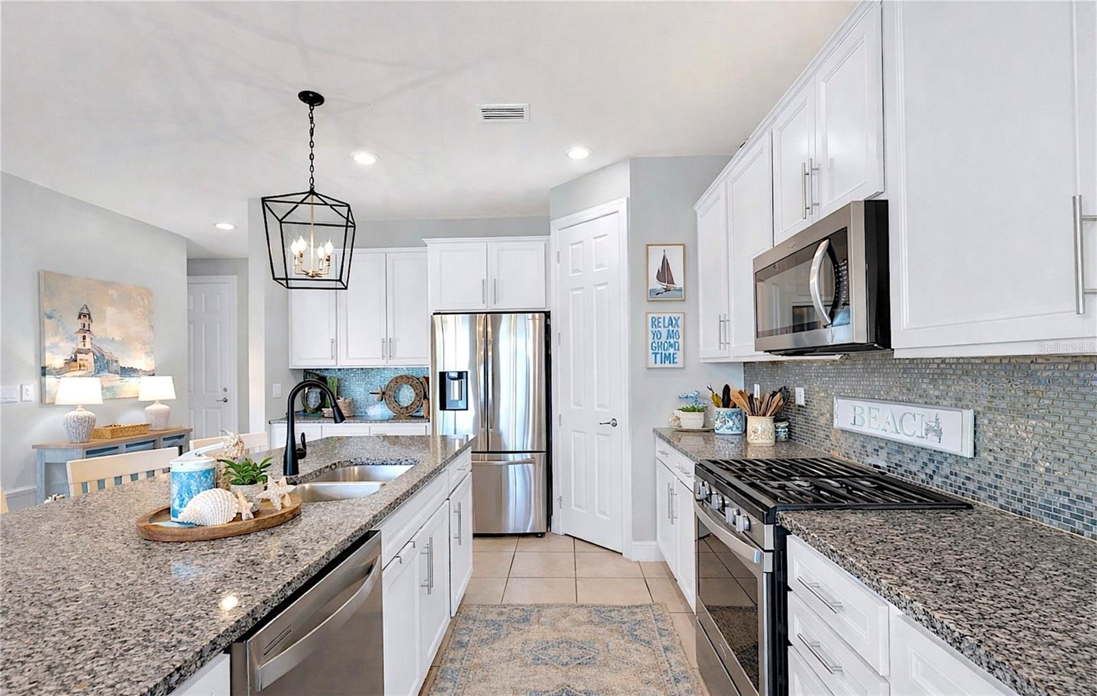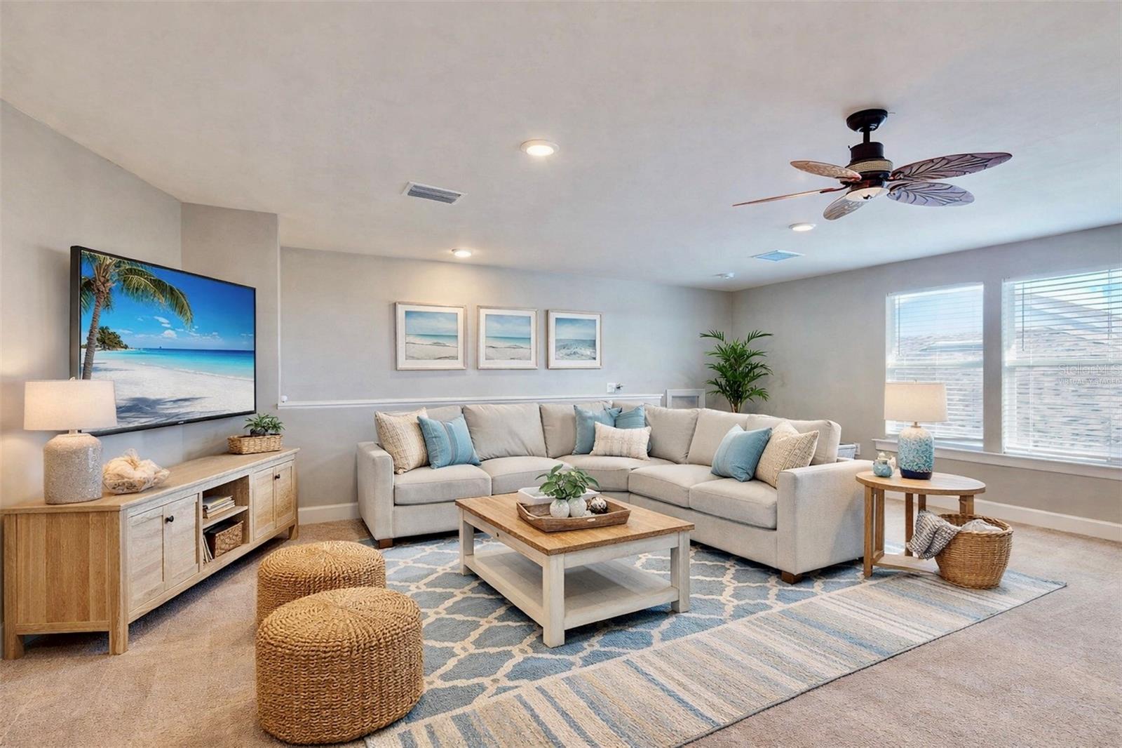 One or more photo(s) has been virtually staged. Welcome to 16129 Bluestem Lane, an exceptional residence located in Babcock Ranch, proudly recognized as the first solar-powered community in the United States. Situated on a quiet cut de sac in Lake Babcock neighborhood, this beautifully upgraded home offers a refined blend of space, style, sustainability, and everyday convenience. Offering over 2,800 square feet of thoughtfully designed living space, this two-story home features 4 bedrooms, 3.5 baths, a private flex room/den, and a generously sized upstairs loft, providing exceptional versatility for family living, guests, work-from-home needs, and entertaining. A welcoming foyer leads past a private den with French doors into a bright, open great room seamlessly connected to the kitchen. The chef-inspired kitchen showcases granite countertops, stainless steel appliances, an extended center island, walk-in pantry, and abundant cabinetry—ideal for both daily living and effortless gatherings. The primary suite is conveniently located on the main level, offering privacy and comfort with a walk-in closet with ample room. The laundry room located on the first floors equipped with loads of custom cabinetry granite counter tops and utility sink. A well-placed half bath completes the first floor just off of the entry way and home office/den. Upstairs, a spacious loft creates the perfect setting for movie nights, a playroom, or additional living space, accompanied by three additional bedrooms and two full bathrooms, offering flexibility for family or visiting guests. One of the upstairs bedrooms also has a private full bathroom. Outdoors, enjoy a fully fenced backyard with tranquil lake views and a new extended paver lanai, ideal for entertaining around a fire pit, relaxing in a hammock, or enjoying peaceful Florida mornings. With room to add a pool, the backyard is ready to be transformed into your own private retreat. The 2-car garage features a 4-foot extension and epoxy-coated floors, providing extra storage and a clean, durable finish and drive way that also has been extended. Living in Babcock Ranch is truly a lifestyle. This golf-cart-friendly community allows for easy walking, biking, or golf cart rides to in-community schools, making daily routines both convenient and connected. Residents enjoy an unmatched level of accessibility with urgent care, grocery store, shopping, restaurants, banking, and everyday services all located within the community. Combined with low HOA fees, X flood zone status, and proximity to Cypress Lodge, the Parkway trail system, and resort-style amenities—including pools, tennis and pickleball courts, playgrounds, a fishing lagoon, miles of scenic trails, weekly farmers markets, food trucks, live music, and year-round community events—this home offers a way of life unlike anywhere else in Southwest Florida.