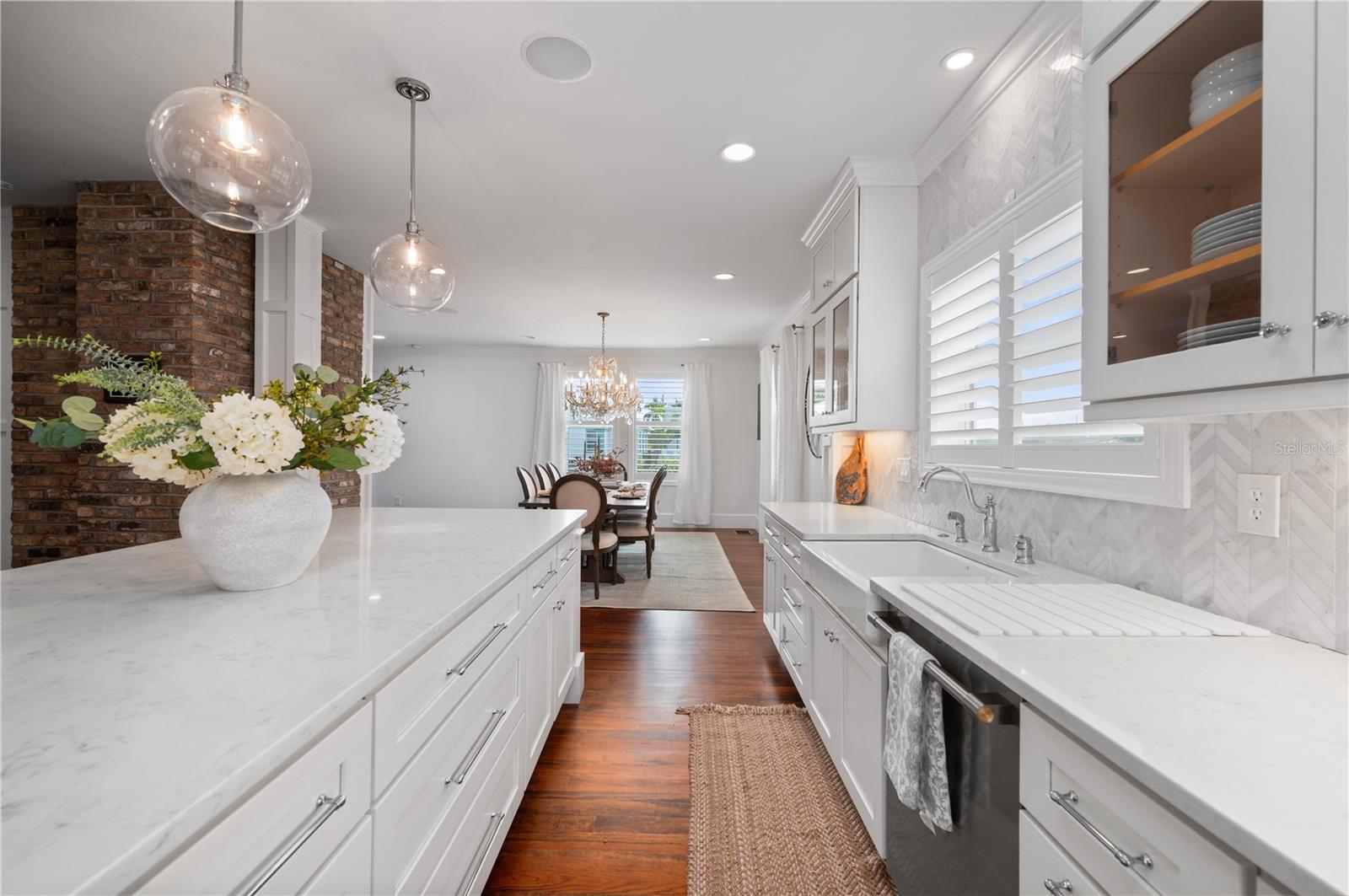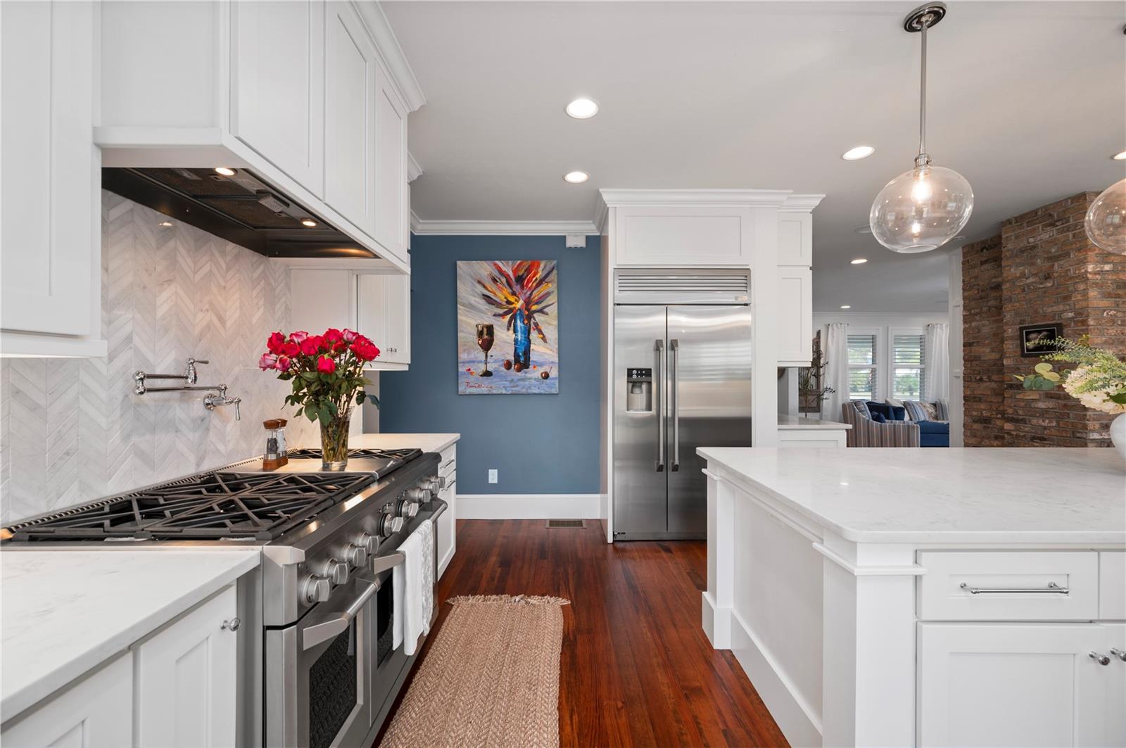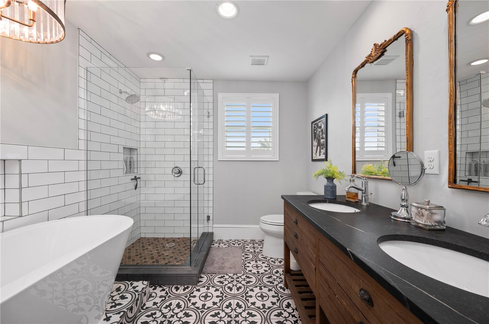 Downtown Punta Gorda has a rhythm all its own, and this move-in ready home moves in perfect time with it. Offered with intention and a motivated relocating seller, a rare opportunity emerges along one of the historic district’s most coveted brick-paved streets. Originally crafted to command attention and now fully reimagined, the home unfolds across more than 3,900 sqft of thoughtfully curated space. A welcoming screened porch sets the tone, softly illuminated by restored sconces with origins at the iconic Belleview Hotel. It is a detail that signals what lies within: reverence for history paired with unapologetic refinement. Inside, hardwood floors carry through expansive living spaces designed for both intimacy and celebration. A brick wood-burning fireplace anchors the living room, while the kitchen asserts itself as the heart of the home. Outfitted with a Monogram six-burner gas range, quartz countertops, solid wood cabinetry, farmhouse sink, walk-in pantry, and an expansive center island, it balances chef-level performance with inviting warmth. Entertaining unfolds effortlessly here, supported by a built-in wine bar that keep gatherings fluid and elegant. The dining room glows beneath a restored crystal chandelier from the 1920s, transforming everyday meals into occasions. On the first floor, a private guest bedroom currently styled as an office introduces a modern counterpoint to the home’s historic roots. A striking geometric three-dimensional wood accent wall adds texture and drama, while a nearby full bath with walk-in shower offers comfort and flexibility for guests or a dedicated work-from-home retreat. Upstairs, the home opens into a collection of spaces designed to adapt and evolve. Four additional guest bedrooms offer generous proportions and endless possibilities, whether reserved for family, visitors, creative studios, or media rooms. A beautifully appointed guest bathroom features soapstone countertops, dual sinks, a garden tub, a glass-enclosed walk-in shower with rain head, classic subway tile, & a bold Art Deco porcelain tile floor. An upstairs laundry area adds everyday convenience while reinforcing the home’s thoughtful design. The primary suite remains a private sanctuary, set apart for quiet moments. Two walk-in closets complement an en-suite bath that feels both indulgent and artful, complete with a claw-foot soaking tub beneath a crystal chandelier, dual quartz-topped vanities, a separate makeup vanity, and marble flooring throughout. Beyond the interiors, a large fenced yard provides rare outdoor space in the heart of downtown. An oversized two-car garage and an additional bonus area currently outfitted as a gym further expand the home’s versatility, limited only by imagination. Three HVAC zones, impact windows throughout, fresh exterior paint, and a 2024 hot water heater ensure modern peace of mind. Remodeled in 2017 by Charlotte Harbor Construction, the home reflects thoughtful craftsmanship, intentional design, and enduring quality throughout. Dining, events, waterfront strolls, and the cultural pulse of downtown Punta Gorda remain just steps away, while the home itself offers the space and freedom to shape a lifestyle entirely your own. In a city defined by charm, this property stands apart. Rare. Memorable. Ready for its next chapter.