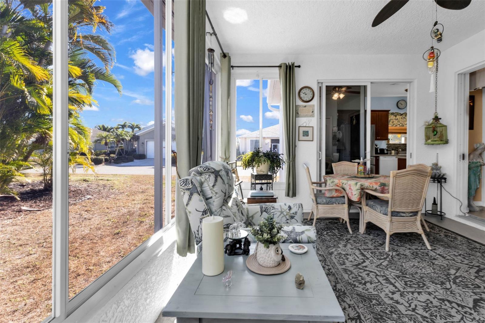 STUNNIG SHEFFIELD with HIGH ceilings in the gated golf course/active resort of highly desirable Kings Gate, a 55+ community that is NOT in a flood zone and DOES NOT require flood insurance. This TURNKEY (with a few exceptions) home has been nicely updated including 2023 roof, 2018 AC, HWH 2020, freshly painted exterior, accordion shutters for enclosed lanai and rest of house with hurricane impact windows. Tile throughout the main living area with LVP in master and den. Step inside this extremely well maintained home and you'll notice the high ceilings before bringing your gaze to the SPACIOUS living room and then that EXPANDED and ENCLOSED lanai. Great options for entertaining and/or relaxation. Master bedroom with his/her walk in closets and dual vanities located in back left of home with guest bedroom/bathroom in the front right of home - providing tremendous PRIVACY for both you and your guests. Den/study/TV room or 3rd bedroom if needed offers flexibility. Kitchen has corian counters - decorative back splash and new SS refrigerator + induction stove. Great location in community - very close to front gate. And if you haven't been to Kings Gate before - you're going to love the options for activity (Olympic size heated swimming pool and spa, tennis courts, pickle ball, lawn bowling, shuffle board, bocce, horseshoes, gym, billiards, library, euchre, bingo, bridge, Texas hold em, poker, mahjong and more). The onsite AND NEWLY REMODELED Lions Den restaurant and bar is super convenient and also offers Tuesday night Karaoke and monthly trivia contests. Many residents love the fact that they are just a golf cart ride away from the shopping plaza that provides you access to grocery store (ALDI), drug store, bank, restaurants and shopping. Want to explore outside of Kings Gate – you are minutes away from the restaurants and shops of downtown Punta Gorda and Fisherman's village. And if you want to explore more of Florida's fun spots you’re near I75 to quickly head north or south. An AMAZING TURNKEY home with tons of UPDATES in a PREMIER gated community needs a look. Call today for a private showing and a golf cart tour of the community/amenities.