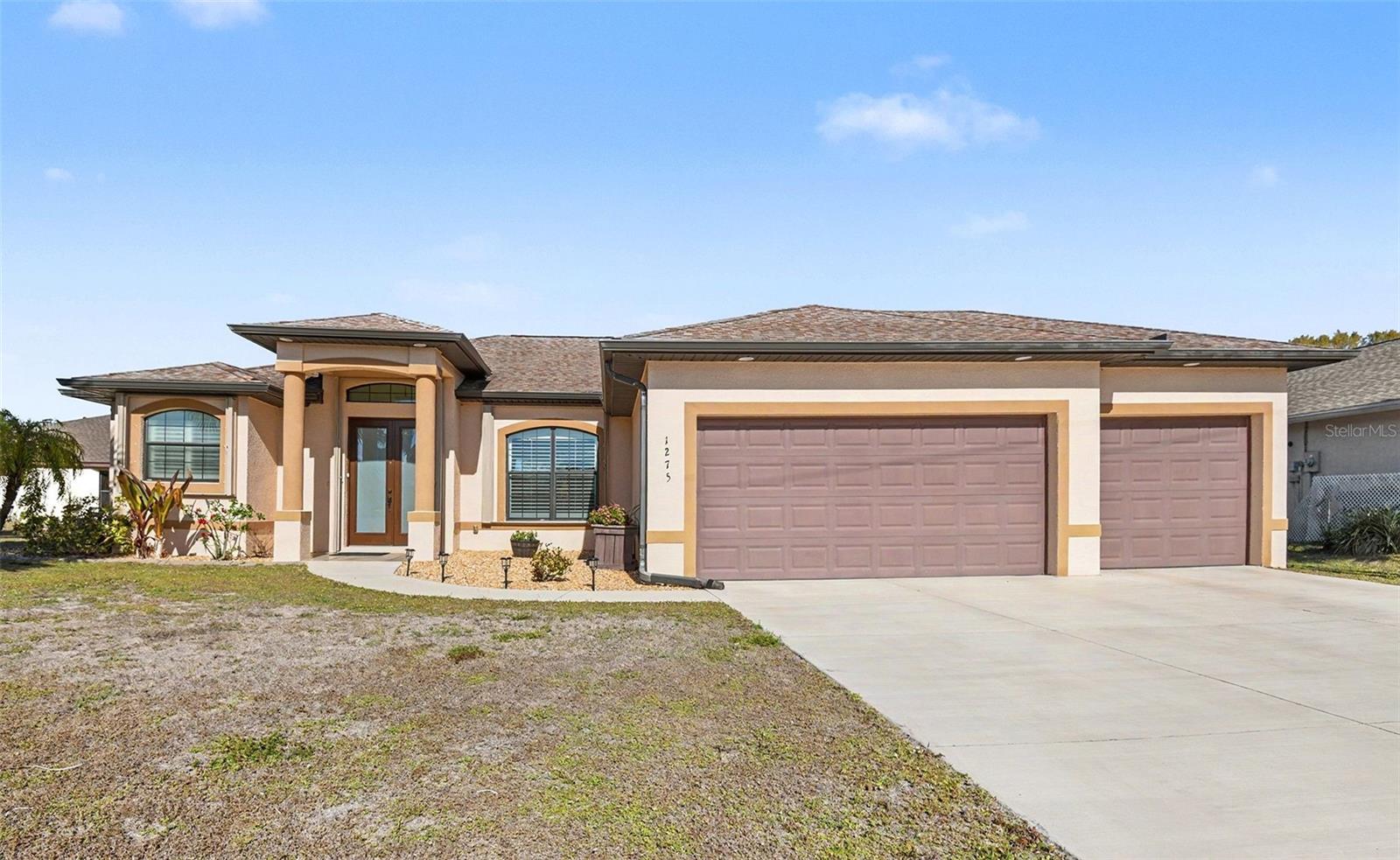 Discover refined luxury in this exquisite 2018 custom-built Impact home, spanning 2,020 square feet of air-conditioned living space in the highly desirable, deed-restricted community of Deep Creek. Thoughtfully designed for effortless modern living, this 3-bedroom, 2-bathroom gem features an open-concept kitchen and great room with soaring tray ceilings that create an airy, sophisticated ambiance. The chef-inspired gourmet kitchen is a true centerpiece, showcasing rich solid-wood cabinetry, premium Level 5 granite countertops, a striking tiled backsplash, and top-tier stainless steel LG appliances—including a rare pot filler over the range for ultimate convenience. Retreat to the generous primary suite, your private sanctuary with dual-sink vanity in elegant wood cabinetry and Level 5 granite, a deep soaking tub for relaxation, and a spacious tiled walk-in shower. Exquisite tile flooring graces the main living areas, while plush carpeting enhances the bedrooms' comfort. Every room opens through oversized 8-foot sliders to an expansive, fully tiled lanai—ideal for al fresco entertaining or simply savoring peaceful views of the lush private greenbelt. Architectural details like arched 8-foot entries, plantation shutters, custom blinds, and subtle front/back soffit lighting elevate curb appeal and interior charm. Nestled in tranquil Deep Creek—known for its beautifully maintained greenbelts, serene lakes, and family-friendly vibe—this home offers peaceful seclusion while placing you moments from I-75 for seamless access to Fort Myers, Sarasota, the beaches and beyond. Enjoy quick drives to charming waterfront dining, boutique shopping, and vibrant events at downtown Punta Gorda's Fishermen's Village, and the area's renowned restaurants and marinas. This is more than a home—it's an elevated lifestyle of comfort, style, and convenience. Schedule your private showing today and experience the exceptional quality that awaits!