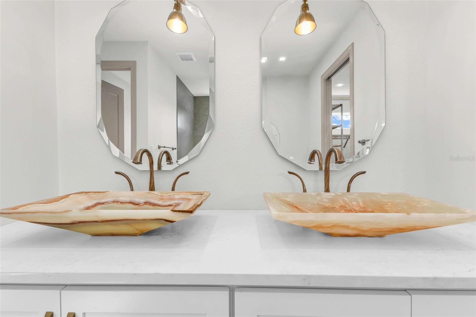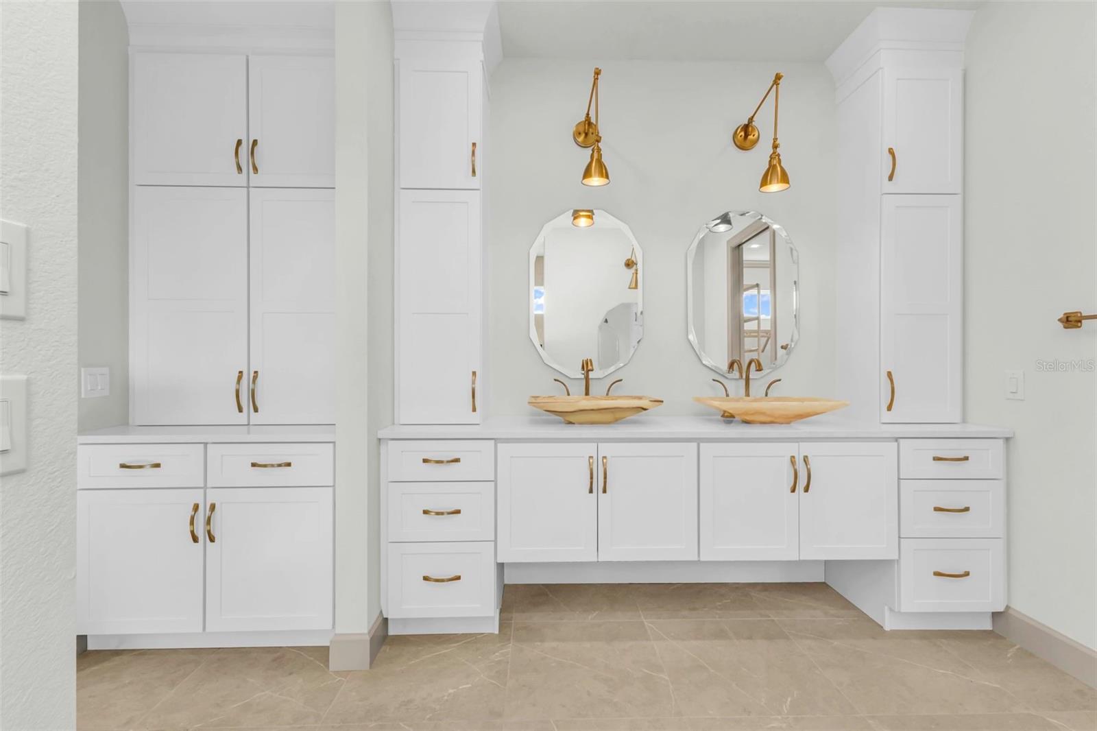 A WORK OF ART, CASUAL-MODERN ELEGANCE - designed for contemporary - Florida waterfront living. This BRAND-NEW, custom home, just completed, never occupied - thoughtfully designed. It is aesthetically pleasing incorporating both "form and function". NO WAITING, your "next chapter begins today." SUBLTLE, nature inspired- color palette combines the warmth of natural cherry wood & crisp linen white SHOWPLACE cabinets, (quality cabinets with dovetail joinery and soft-close glide hardware, made in the USA) rose gold hardware, a neutral West Highland White wall color, adds a wisp of color- the walls are accented by 7" crown molding, 7" baseboards & doors, all painted a subdued fawn tone. The ISLAND, the FOCAL POINT of the room adds an explosion of color w/ Magma Gold- level V -Granite! (One SLAB- 6' W x 9' L) it makes a statement! The Bes Renoir polished porcelain, marble look tile is luxurious, 24" x 48" the veining adds a pulse of color! Appliances are the GE - professional CAFE' Collection, matte white with brushed-bronze hardware; these complement the kitchen decor & not only- are they "SMART" but they add personality. The PANTRY would make a butler proud; it is amazing- 2 ENTIRE SEPARATE ROOMS - not just a closet! Loads of cupboards, drawers, cabinets, a Franke sink & microwave-convection oven. Keep all the prep work, the coffee station, serving dishes, seasonal dishes & decor, supplies behind closed doors! The Great Room is open to the Kitchen & Dining area. The back wall with floating cabinetry will accommodate an expansive entertainment screen. WATERFRONT, on the Albacore Canal (with 45' dock and lift) - SALTWATER POOL, SPA & fountain, and lanai- MERGE with the living spaces, a wall of glass- six- 10' sliding doors can be opened and the exterior and living spaces seamlessly integrate. The lanai and pool showcase Westerly VIEWS and gazing at golden SUNSETS, through the PANORAMIC screens will become a favorite pastime. The EXTERIOR Weatherstrong KITCHEN, with BLAZE grill, stainless hood, fridge and sink will make outside dining a pleasure. The SPLIT FLOOR PLAN is perfect for entertaining overnight guests. The PRIMARY ENSUITE BEDROOM is on the left, with a massive walk-in closet, private water closet with an "Intelligent bidet toilet" two gorgeous artisanal onyx marble vessel sinks, a separate makeup/vanity area, Roman Shower, with elegant tile- adorned with body sprays, a handheld & a rain shower faucet! Two GUESTROOMS & the OFFICE/study (with water view) ARE ON THE right side of the house, there are 2 additional- very exquisite baths for guest use as well- one to accommodate easy POOL access! The Laundry Room with generous cabinetry- side by side- LG ThinQ washer & dryer, BLANCO sink, a countertop for the "folding" area - additional storage is well thought out too! 3 CAR garage, with Epoxy coated floor. Gorgeous custom garage doors, Ext. keypad entry. SYSTEMS: GENERAC panel. TANKLESS water heater, Seamless Gutters, Standing seam METAL roof, IMPACT windows, BAHAMA exterior accent shutters. Irrigation System. Gray paver stone driveway. LED soffit lighting. TAEXX pest system. TRANE AC, Hayward Pool Pump, Gulf Stream Pool heater. GEM BOAT LIFT REMOTE, Minka-Aire ceiling fans, Elegant light fixtures and an abundance of LED ceiling lights. T&G wood ceilings in entry and lanai. This house truly must be seen to appreciate all the detail & quality. SELECT your BOAT, SHOP for furniture and art, the dock and house are ready.