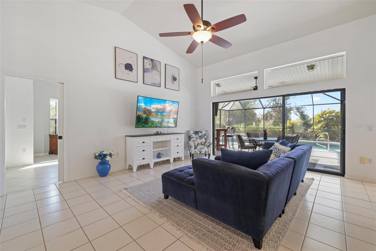 Welcome to a peaceful retreat in the desirable Deep Creek community. As you enter, you’re greeted by a clear view of the sparkling pool and the beautifully private backyard. The spacious great room features vaulted ceilings and opens seamlessly to the large kitchen, which includes an oversized island with custom beadboard, granite countertops, a stylish backsplash, and updated lighting. A separate dining area provides additional space for gatherings or everyday living. This home is not located in a flood zone and has been thoughtfully updated throughout. The screened lanai and heated pool offer year-round enjoyment, and the lanai was rescreened in 2023 for a comfortable, bug-free outdoor living experience. Crown molding adds a refined touch, enhancing the home’s warm and elegant character. Recent improvements include a full interior repaint, updated light fixtures, and a beautifully remodeled primary suite featuring a soaker tub, wet-area shower, and new quartz countertops. The kitchen has been refreshed with granite surfaces and custom details, while the roof and solar panels—installed in 2022—provide long-term durability and energy efficiency. New soffits were added in 2023, contributing to the home’s well-maintained exterior. The backyard offers exceptional privacy with lush greenery, creating a tranquil environment ideal for relaxation. This property blends comfort, style, and modern upgrades in a sought-after Punta Gorda neighborhood, offering a wonderful opportunity to enjoy Florida living with convenience and peace of mind.