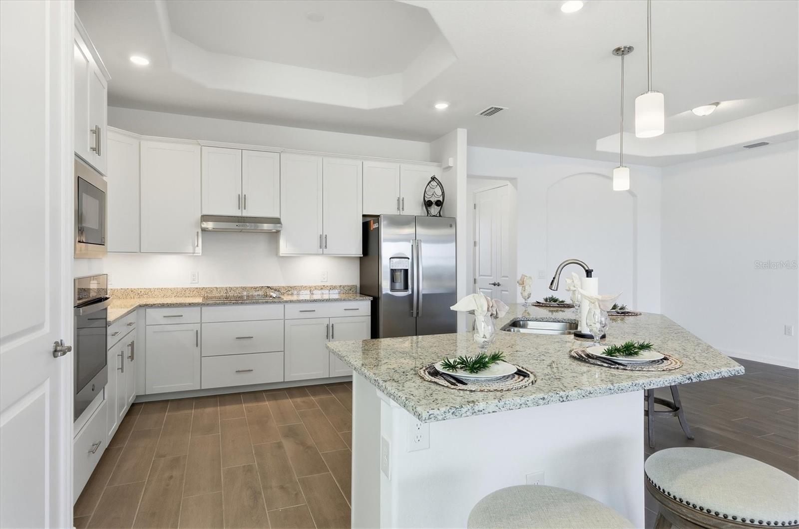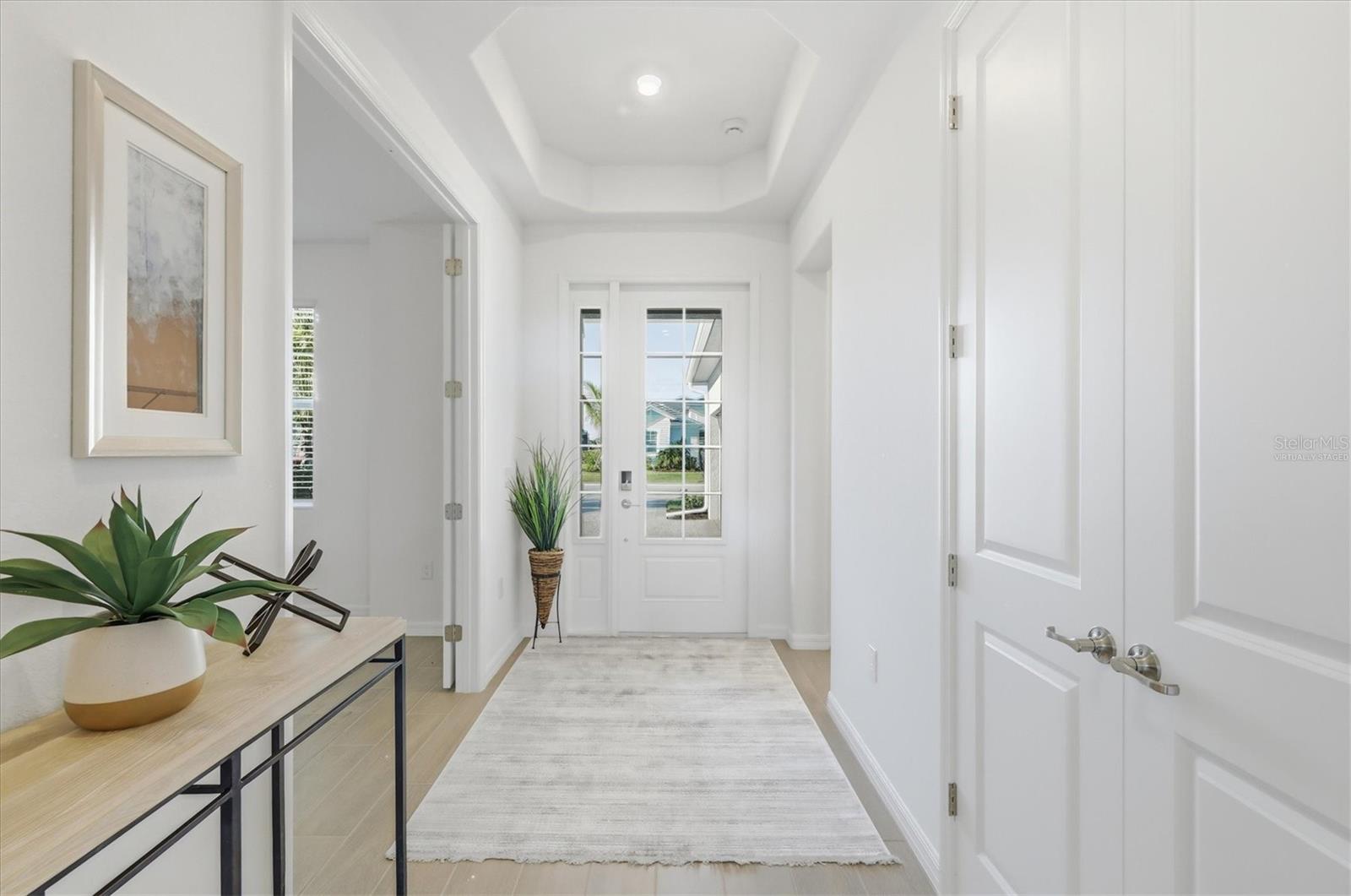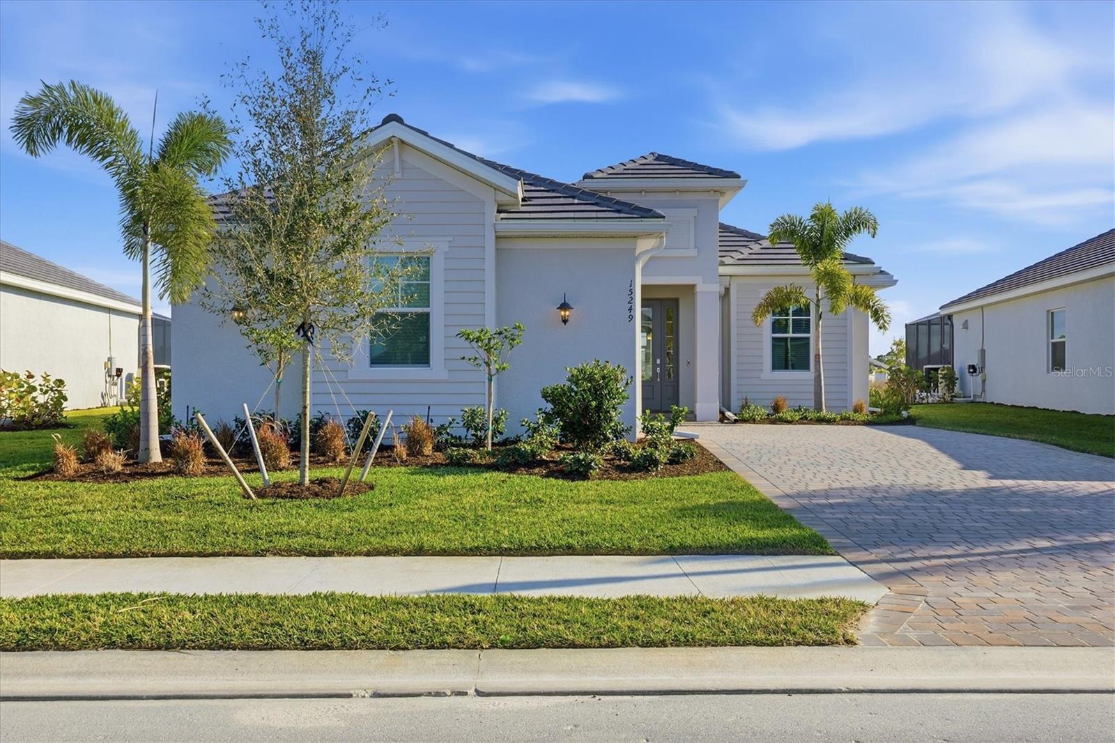 One or more photo(s) has been virtually staged. * BRAND NEW! NEVER LIVED IN!* Welcome home, where every day feels like a vacation in paradise. This brand-new, never-lived-in Victoria offers the pinnacle of low maintenance living and Florida luxury. Nestled on a quiet interior lot with a rare southern exposure, the home is bathed in natural light all day. You’ll love the peace and privacy – and there’s ample space in the backyard to design your own custom pool retreat. From the moment you step through the grand entry, you’ll see why the Victoria is one of the most popular designs in Heritage Landing. Plank tile flooring extends throughout the entire home, creating a sleek and cool feel underfoot. Overhead, tray ceilings in multiple rooms add an airy elegance and a touch of sophistication. The gourmet kitchen is a chef’s dream, featuring granite countertops, a built-in oven and microwave, and modern recessed lighting. Whether you’re hosting family holidays or a casual dinner, this kitchen’s open layout and stylish finishes make every meal a joy. A split-bedroom floor plan ensures privacy for all – the primary suite is a luxurious retreat with a spa-like bath and patio access, while the guest bedroom and a versatile den sits on the opposite side of the home. Every detail has been thoughtfully designed, from abundant closet storage to upscale touches like a Ring doorbell and impact glass windows and doors that provide storm security without the need for shutters. Indoor-outdoor living is what Florida is all about, and this home delivers. Slide open the glass doors to a 33-foot-wide covered lanai that’s perfect for entertaining or relaxing with a morning coffee. The lanai even includes a dedicated pool bath – a convenient feature ready for when you add that custom pool or host outdoor gatherings. Living in Heritage Landing means resort-style amenities at your fingertips. Start your morning with a swim in the expansive resort-style pool, then stroll over to the poolside bar & grille for lunch and a tropical cocktail. Stay active in the state-of-the-art fitness center, complete with a separate aerobics/spin/yoga studio for group classes. After a workout, indulge yourself at the full-service spa and salon, which offers everything from massages and facials to nail services – perfect for unwinding and pampering. Sports enthusiasts will adore the community’s championship tennis and pickleball facilities. Challenge friends on six Har-Tru tennis courts, or join a friendly game on the six pickleball courts and two bocce ball courts, all just a short golf cart ride from your doorstep. Grab dinner or cocktails with your friends or make new ones at the grande clubhouse. Scenic walking and biking paths wind through the neighborhood, so you can soak in the picturesque lakes and nature preserves during an evening stroll. There’s also a bustling social calendar with daily activities, events, and clubs, ensuring you’ll quickly become part of an active, welcoming community. Best of all, this home includes a coveted Social Membership. That means you have full access to Heritage Landing’s incredible amenities without paying for golf – a fantastic perk with very low fees for the level of luxury provided. Spend your days lounging by the pool, dining at the clubhouse or tiki bar, playing tennis and pickleball, or relaxing at the spa, all at a fraction of the cost of a typical country club. A home that has never been lived in is extremely rare, so HURRY! Call today to schedule your personal tour!
