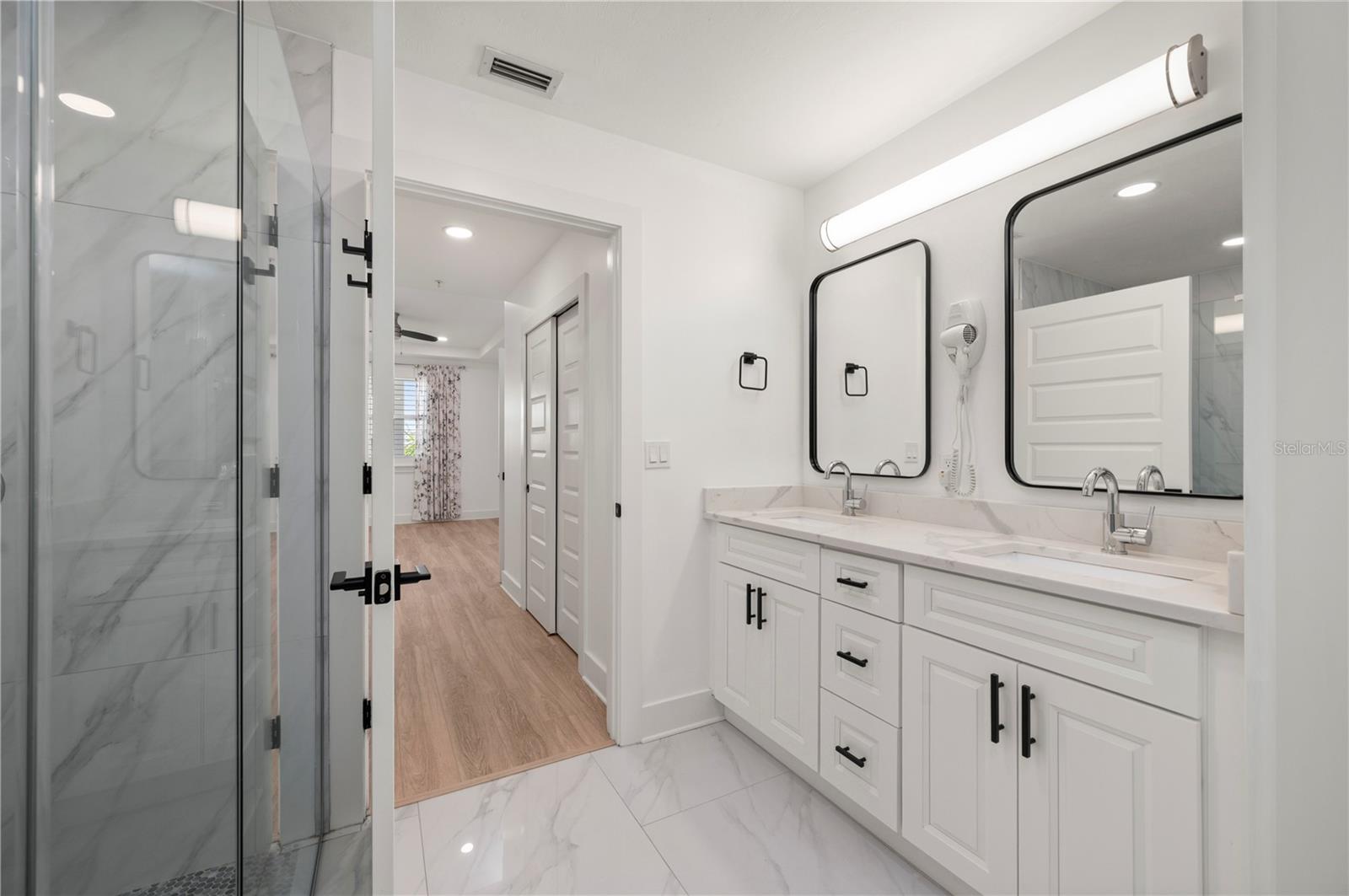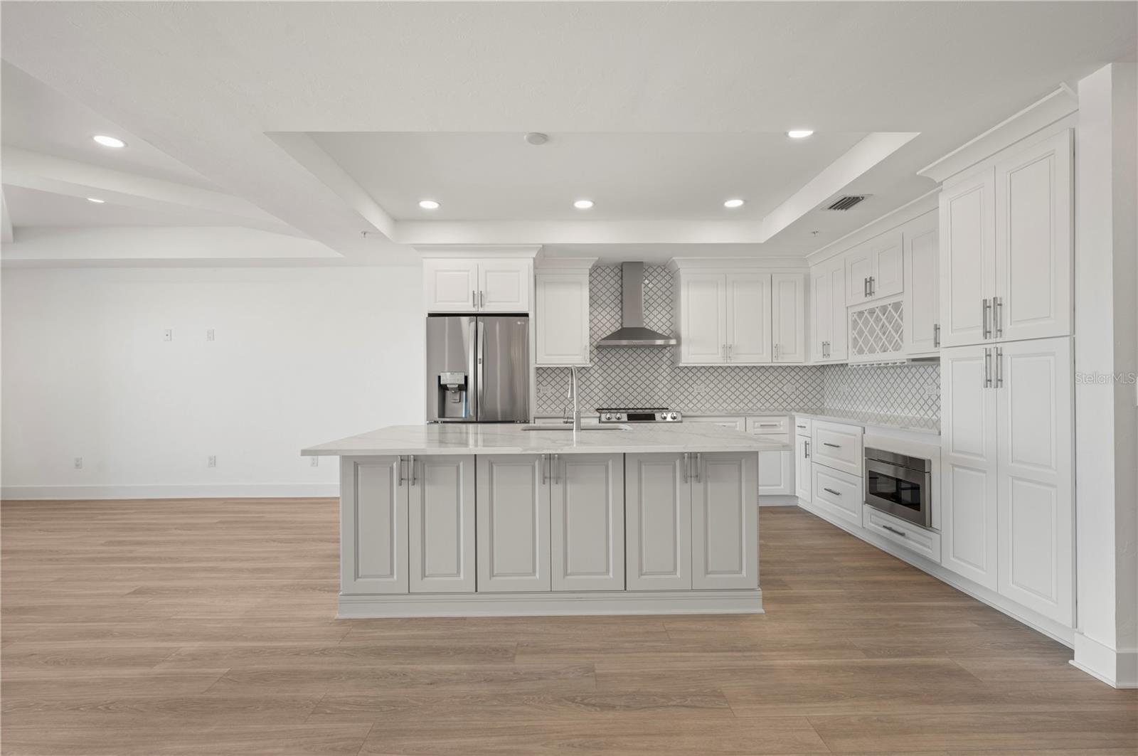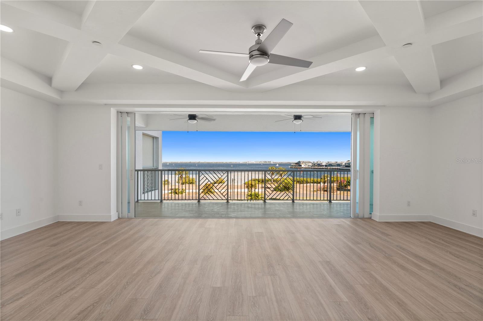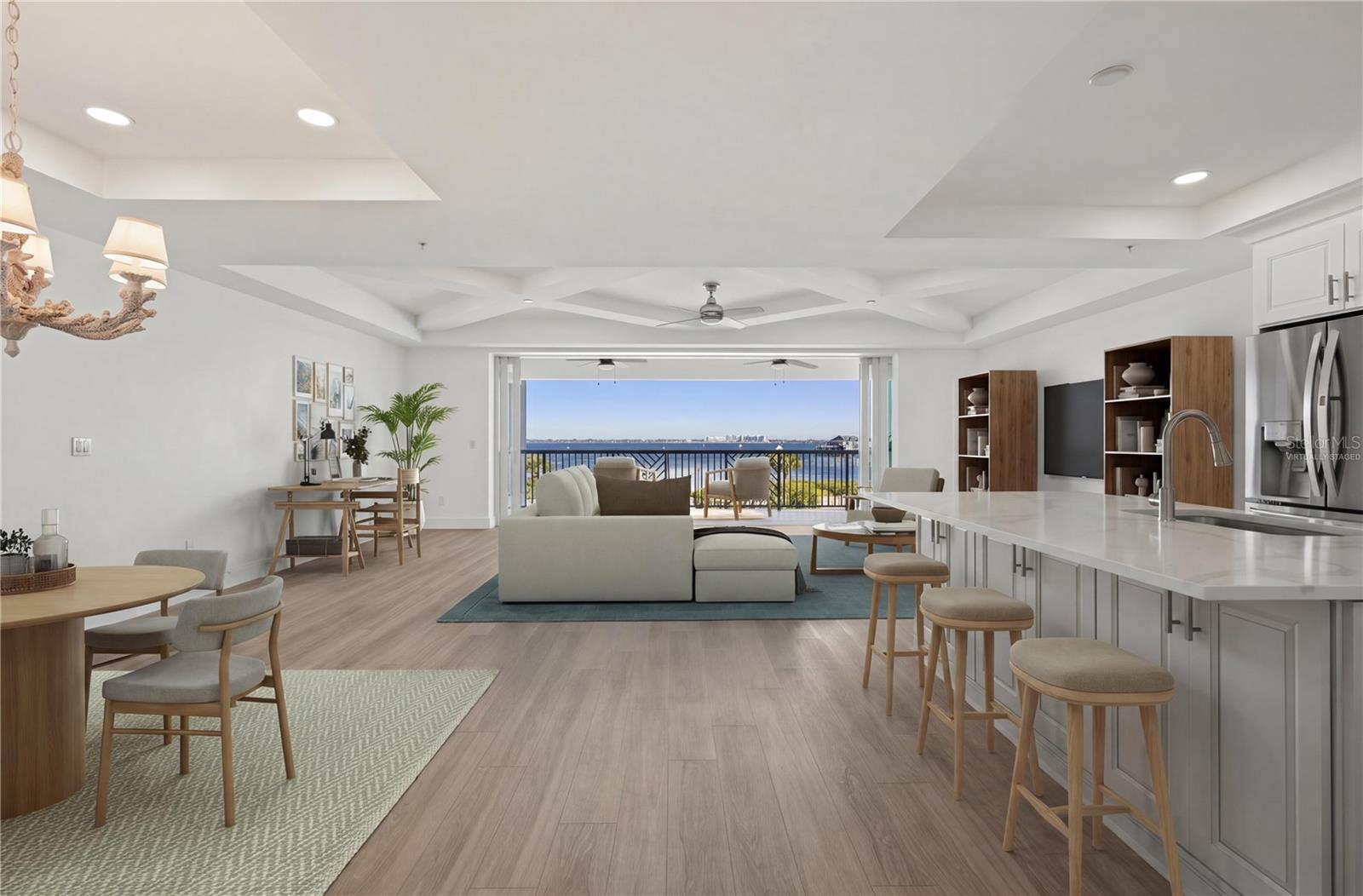 One or more photo(s) has been virtually staged. Sweeping views of Charlotte Harbor anchor this immaculate 2 bedroom, 2.5 bath residence at Paradise Pointe, where refined European-influenced design unfolds alongside the amenity-rich, harbor front setting of historic downtown Punta Gorda. Daily living and entertaining are framed by unobstructed harbor vistas through dual sets of hurricane-impact pocketing sliders, connecting the expansive living, dining, and kitchen spaces to the ever-changing coastal scenery just moments from Fisherman’s Village, waterfront parks, and miles of scenic harbor front trails. Architectural detailing enhances the open floor plan with dining room tray ceilings transitioning into dramatic double cross-coffered patterns, complemented by luxury vinyl flooring throughout and a kitchen designed for gathering, featuring abundant quartz countertops, raised-panel wood cabinetry with crown molding, wine-shelf detailing, brushed stainless hardware, and a full suite of stainless steel appliances. Each bedroom offers a private retreat with en suite baths appointed with high-gloss European wall slabs, mosaic tile flooring, clear glass shower enclosures, and custom walk-in closets with wood shelving, while the primary suite invites end-of-day relaxation with dual vanities, custom mirrors, a soaking garden tub, and a frameless glass shower accented by serene blue mosaic tile. Plantation shutters and curated window treatments add tailored warmth, and a stylishly updated half bath accommodates guests with ease. Paradise Pointe completes the experience with a heated pool and spa, covered cabana and BBQ area for sunset gatherings, secure lobby entry, private elevator access, under-building garage parking, and EV-ready charging, all within easy reach of boutique shopping, waterfront dining, the weekly farmers market, boating and fishing, and the convenience of Punta Gorda’s regional airport. This is coastal living shaped by location, design, and the effortless charm of one of Florida’s most beloved harbor front towns.