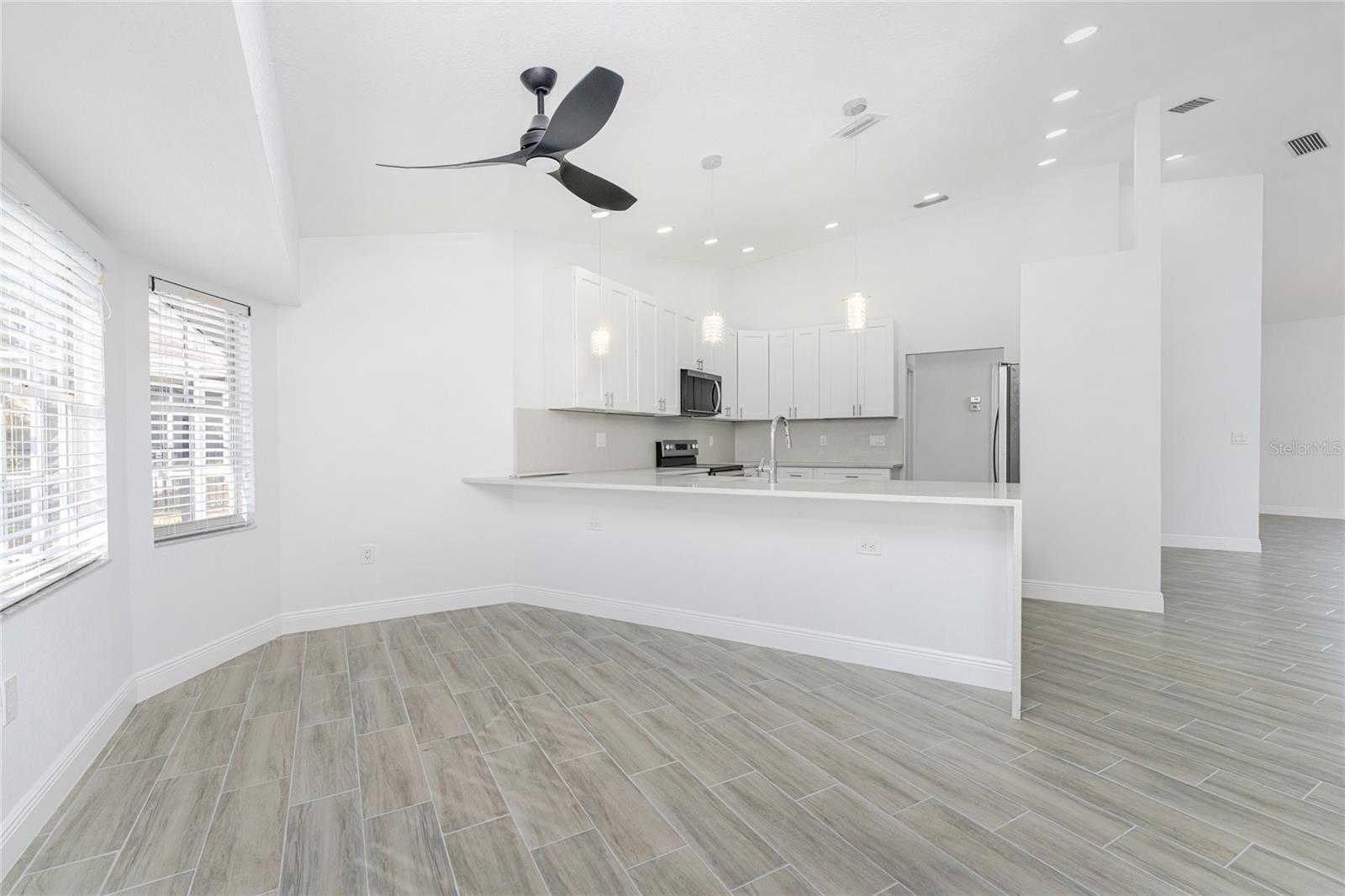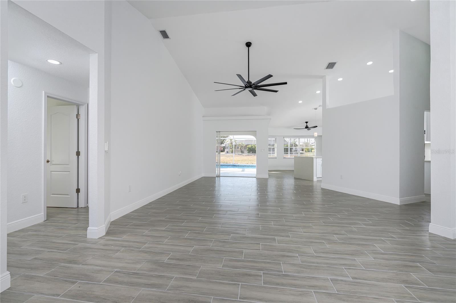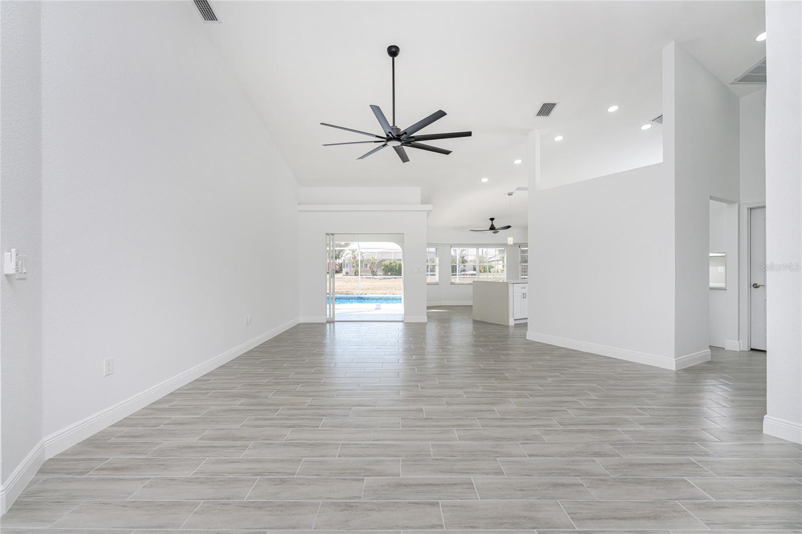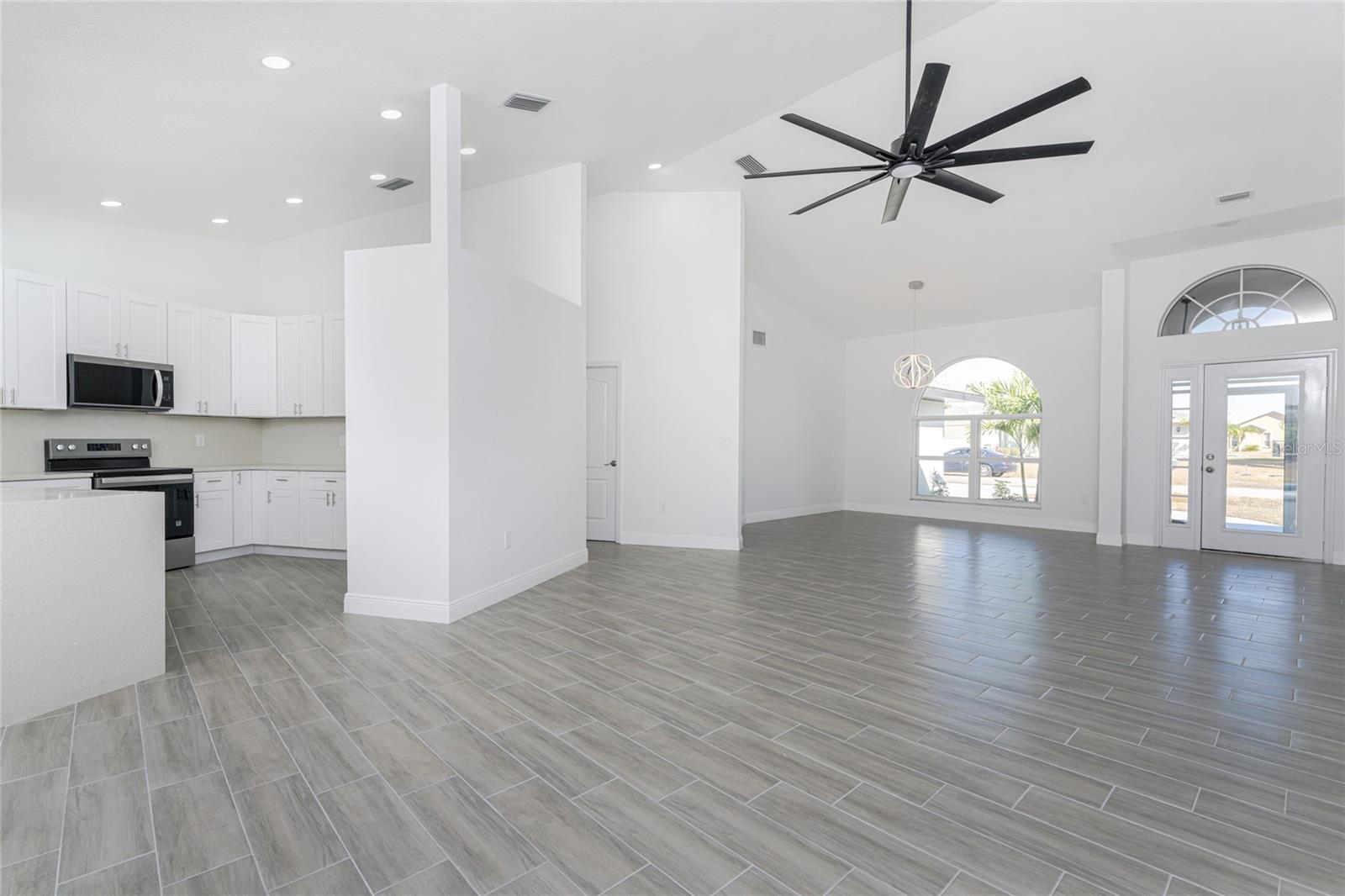 Located in DEEP CREEK, this 3 bedroom, 2 bath POOL HOME offers extensive upgrades, energy efficiency, and exceptional outdoor living. The interior features SOARING CEILINGS THROUGHOUT, creating an open and spacious feel, along with TILE FLOORING THROUGHOUT and a FULLY REMODELED finish. The kitchen is beautifully updated with QUARTZ COUNTERTOPS and ample workspace, ideal for everyday living and entertaining. The home also offers TONS OF LOFT SPACE FOR STORAGE, adding valuable functionality rarely found in homes of this style. Major improvements include a NEWER ROOF INSTALLED IN 2021, IMPACT WINDOWS INSTALLED IN 2019 with additional storm protection including ACCORDION SHUTTERS ON THE REAR LANAI and PAID OFF SOLAR PANELS INSTALLED IN 2023, providing long term durability and energy efficiency. Outdoor living is a standout feature with an OVERSIZED POOL MEASURING 14 X 27, surrounded by an expansive POOL DECK MEASURING 52 X 21 with plenty of space for a garden, sunbathing area, or outdoor grilling and entertaining. An OVERSIZED GARAGE offers excellent storage and flexibility. This home is NOT IN A FLOOD ZONE and is located in a deed restricted community with a VERY LOW HOA FEE. Conveniently close to shopping, dining, golfing, I-75, and SWFL's Gulf beaches, this move in ready home delivers comfort, quality, and value in one of the area’s most desirable communities.
