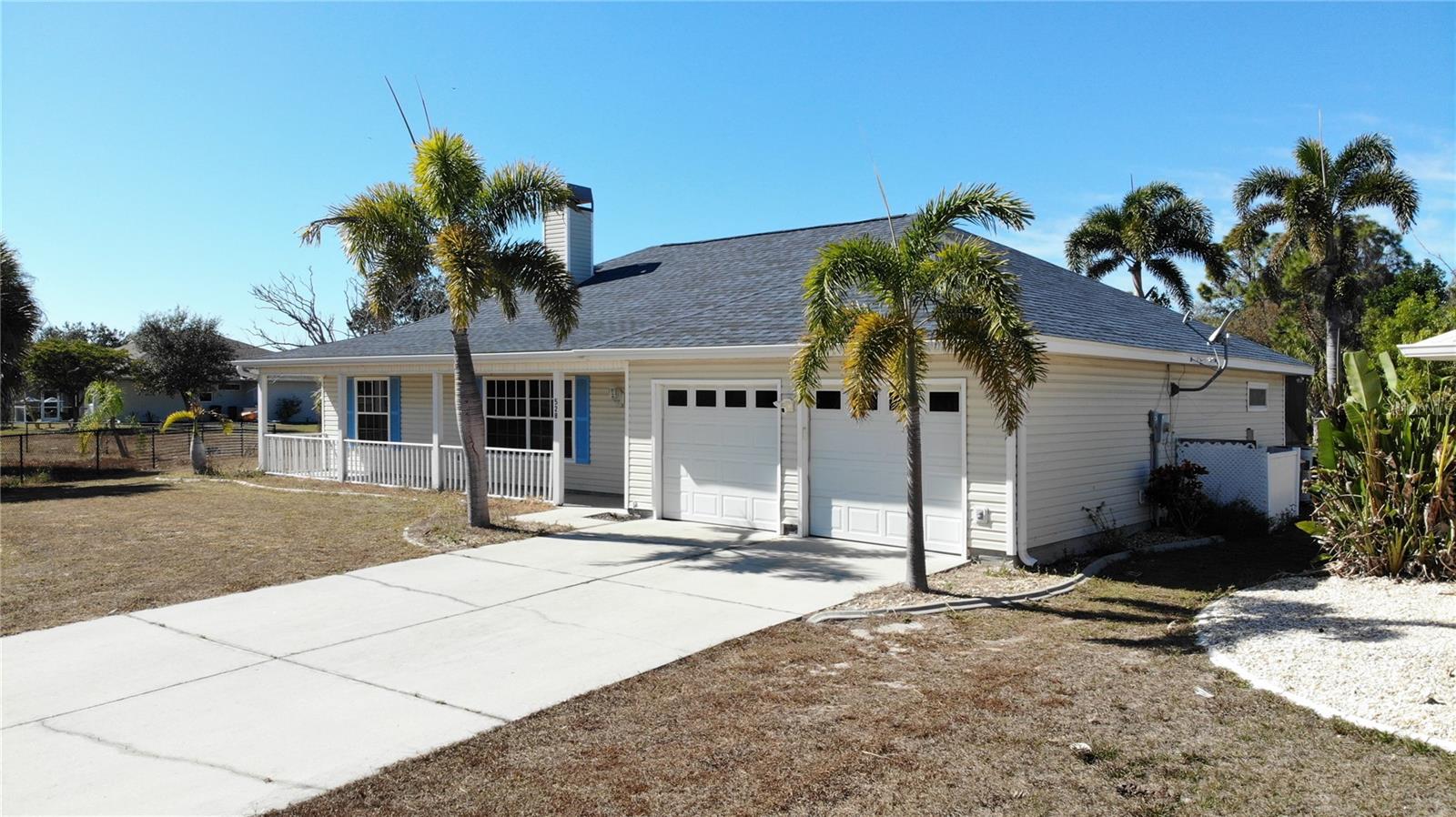 Welcome to Burnt Store Meadows! This 3-bedroom, 2-bath pool home offers 1,585 sq ft under air and is located at the end of the cul-de-sac on a spacious lot—a great setting in this desirable community. Featuring a rock wall fireplace in the living room and an open floor plan, this home has great bones and tons of potential for the buyer with vision. The kitchen features newer stainless steel appliances. Enjoy the spacious lanai and oversized pool, perfect for creating your own private outdoor oasis. The home does need TLC, making it an ideal opportunity for investors, renovators, or buyers looking to customize their space. Major update includes a NEW ROOF. Located in a NO flood zone and on public water & public sewer. Conveniently just 10–15 minutes from shopping and restaurants. Bring your ideas and make this one shine!