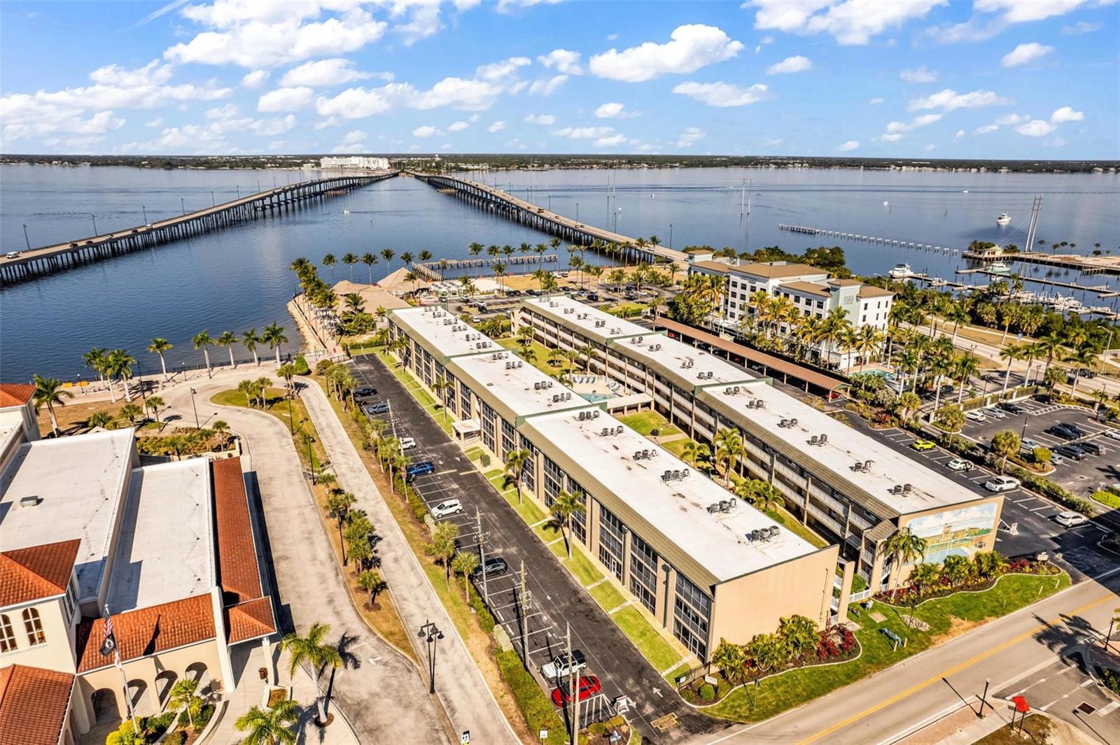 Discover the joy of relaxed waterfront living in one of Punta Gorda’s most beloved 55+ communities. Set along the shores of Charlotte Harbor, this second-floor corner residence in the Charlevoi Condominiums offers an unbeatable location paired with a welcoming, active lifestyle. Designed for comfort and ease, this 2-bedroom, 2-bath condo features a light-filled layout and an inviting east-facing screened-in lanai, the perfect place to unwind in the evening. The home has new floors and both bathrooms have been completely redone! The kitchen is both functional and social, offering a pantry, appliances, and a breakfast bar that keeps you connected to the living and dining areas. The primary suite provides a comfortable retreat with dual closets, including a walk-in, and a private bath. The home has a generously sized guest bedroom with its own full bath ensures visitors enjoy both space and privacy. Beyond your front door, Charlevoi delivers true resort-style living with a heated pool, fitness room, card room, covered outdoor patio, and a large community space for events and meetings. Best of all, you’re just a short stroll from downtown Punta Gorda’s dining, activities, and a 2.5-mile path that showcases the beauty of the harbor. Book a showing and come see your new home today!