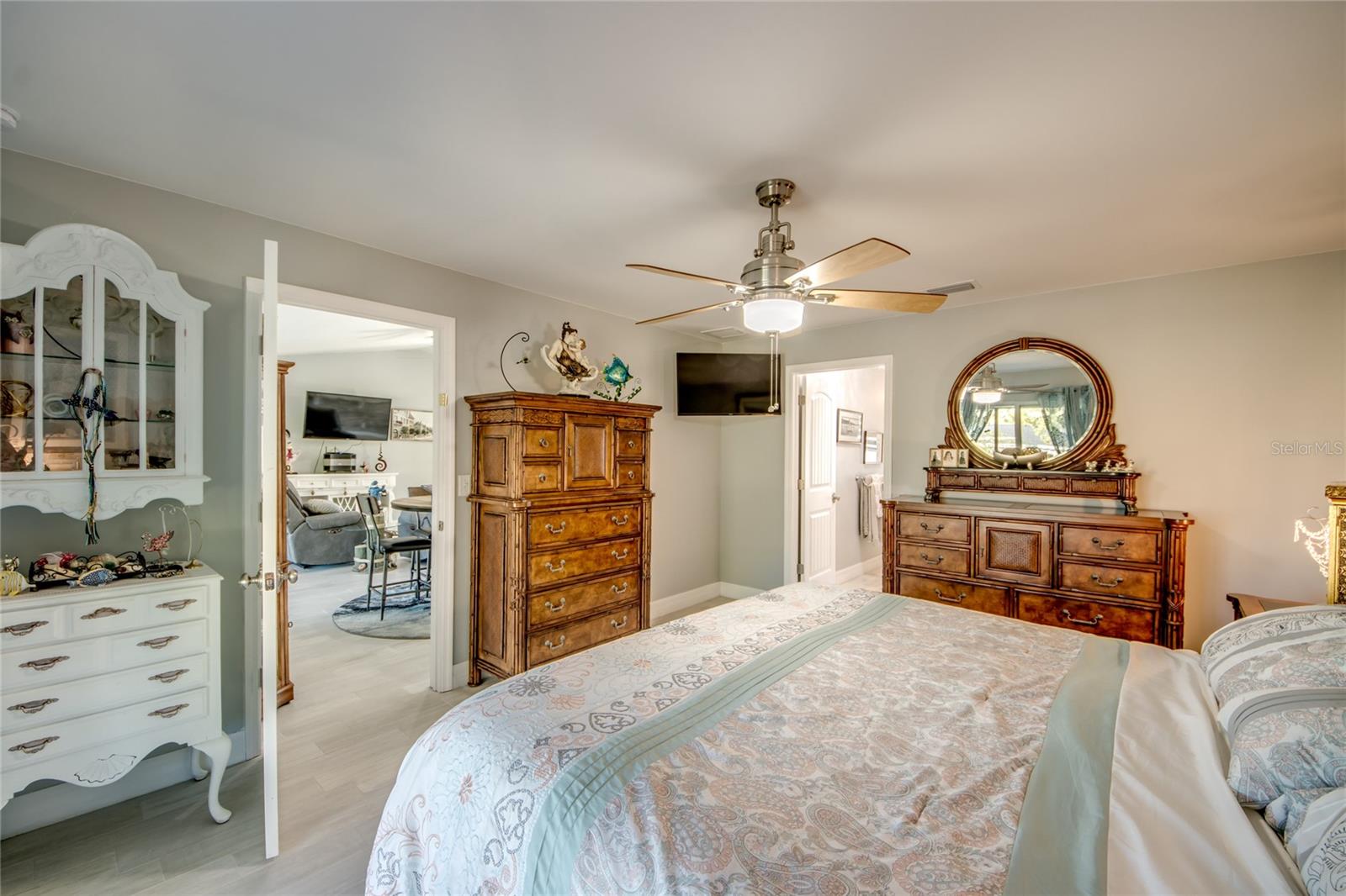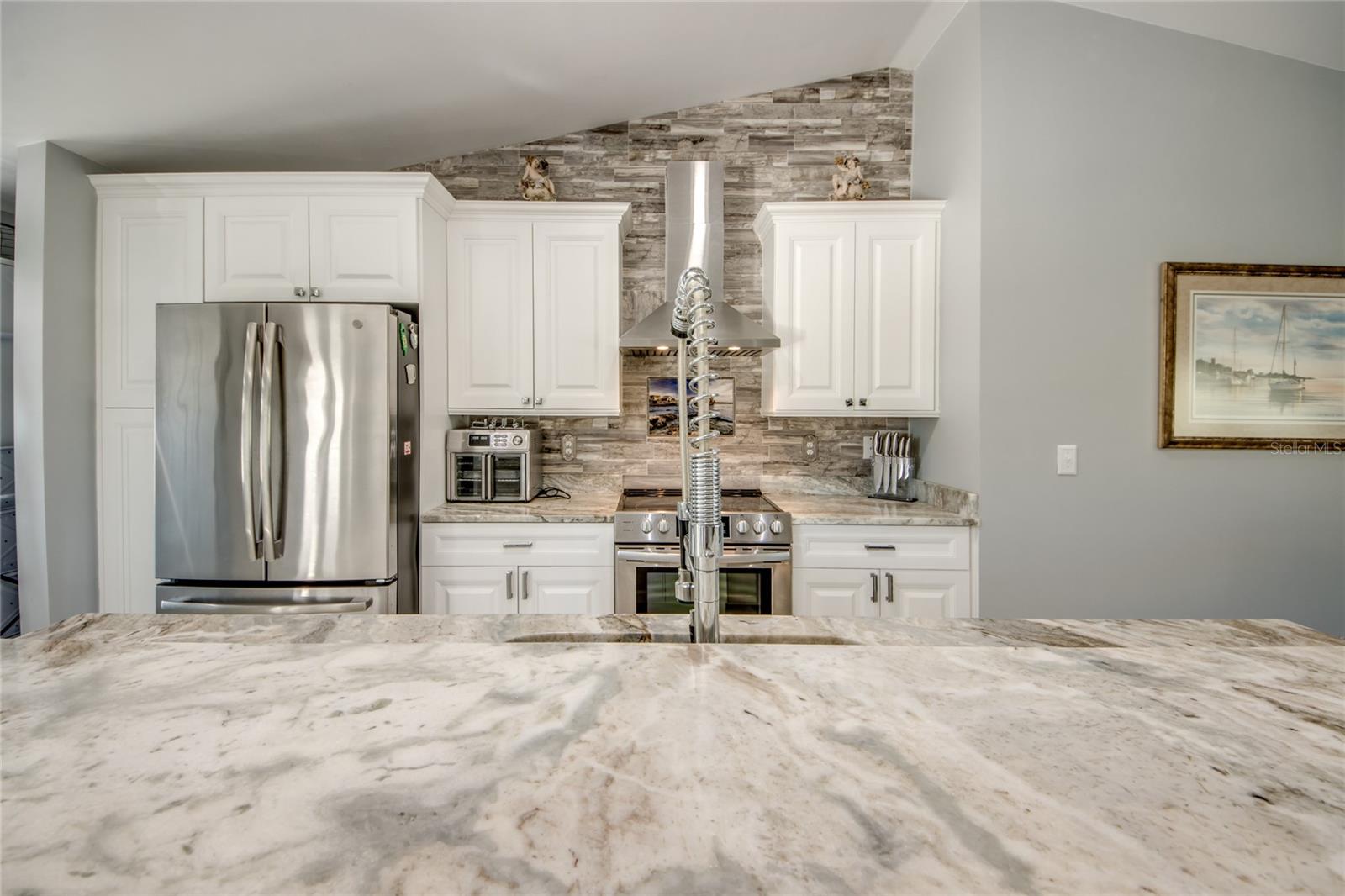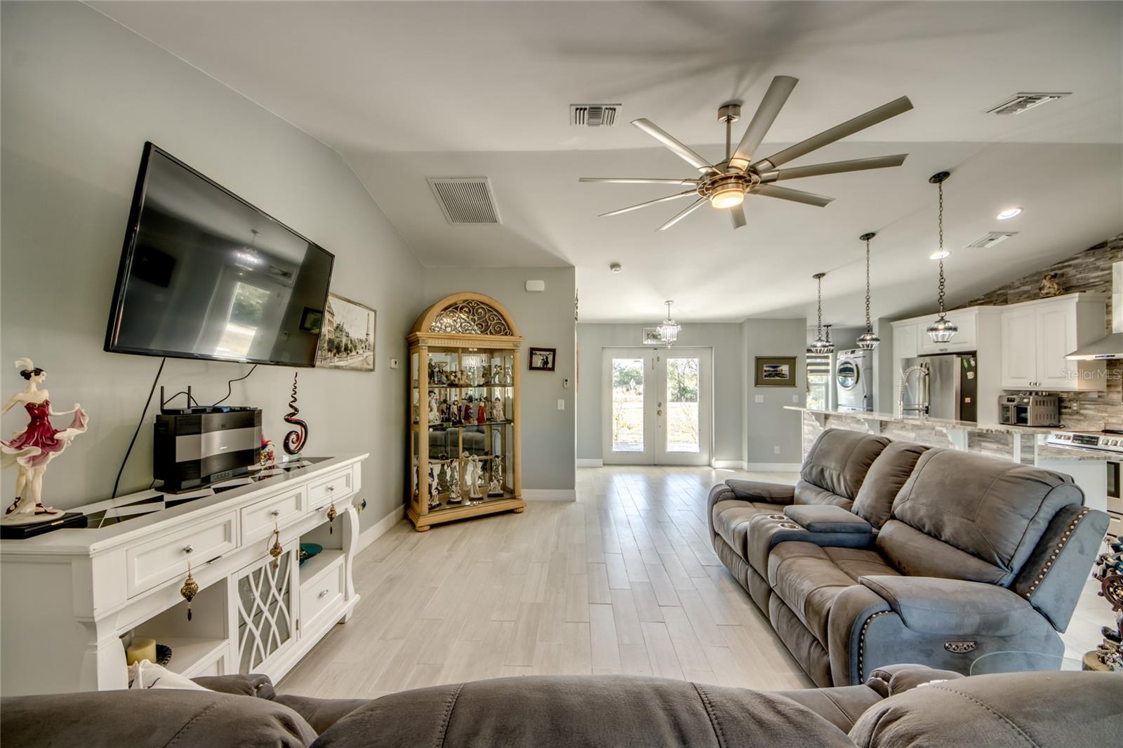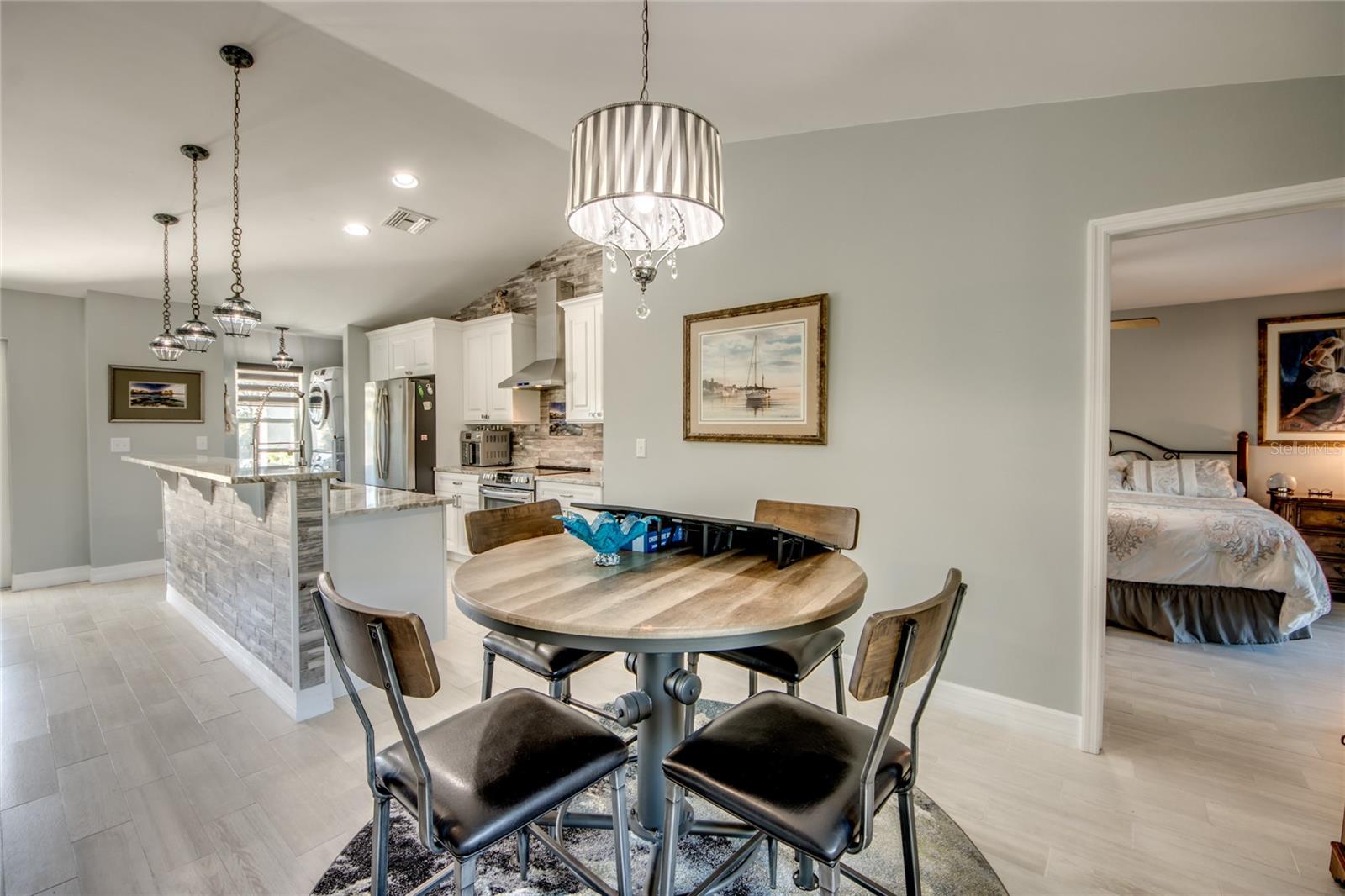 Here is your opportunity to own a beautifully designed custom-built 2-bedroom, 2-bath home with the perfect blend of comfort and style. All the while being situated on a HUGE built up housed on an oversized triple lot. Already setup with tropical lush palms, plants and trees scattered throughout the property. With the Standalone Shed large enough for a car, you will not lack curb appeal or storage space. A lovely walkway guides you to the home’s covered front porch, the ideal spot to start your morning or unwind in the evening while enjoying the peaceful neighborhood atmosphere. The elegant French doors lead you into a bright, open-concept living area filled with natural light that highlights the luxury plank tile flooring stretching seamlessly throughout the home. The kitchen is both beautiful and functional, featuring Level 2 granite countertops, ( also in all the bathrooms ), stainless steel appliances, and elegant pendant lighting that gives the space a refined, upscale touch. The split-bedroom layout ensures privacy for homeowners and guests. The guest suite, conveniently located on one side of the home, features a walk-in closet and direct access to the guest bath. On the opposite side, the oversized owner’s suite is a true sanctuary with a large walk-in closet, dual vanities, and a walk-through shower complete with a built-in bench and dual shower heads for a spa-like experience every day. There are large sliding glass doors from either the living area or owner’s suite that lead the expansive screened-in back lanai that stretches across the entire back of the home. This outdoor living area is perfectly designed for enjoying the crisp breeze and snow free Florida retreat. With its prime location close to I-75 and downtown Punta Gorda, you’ll have effortless access to some of the area’s best dining, entertainment, and nightlife, all while enjoying the tranquility of your spacious, beautifully crafted home.