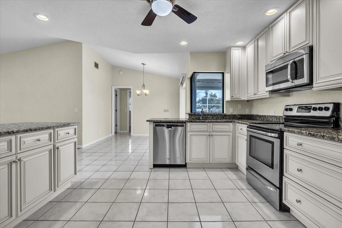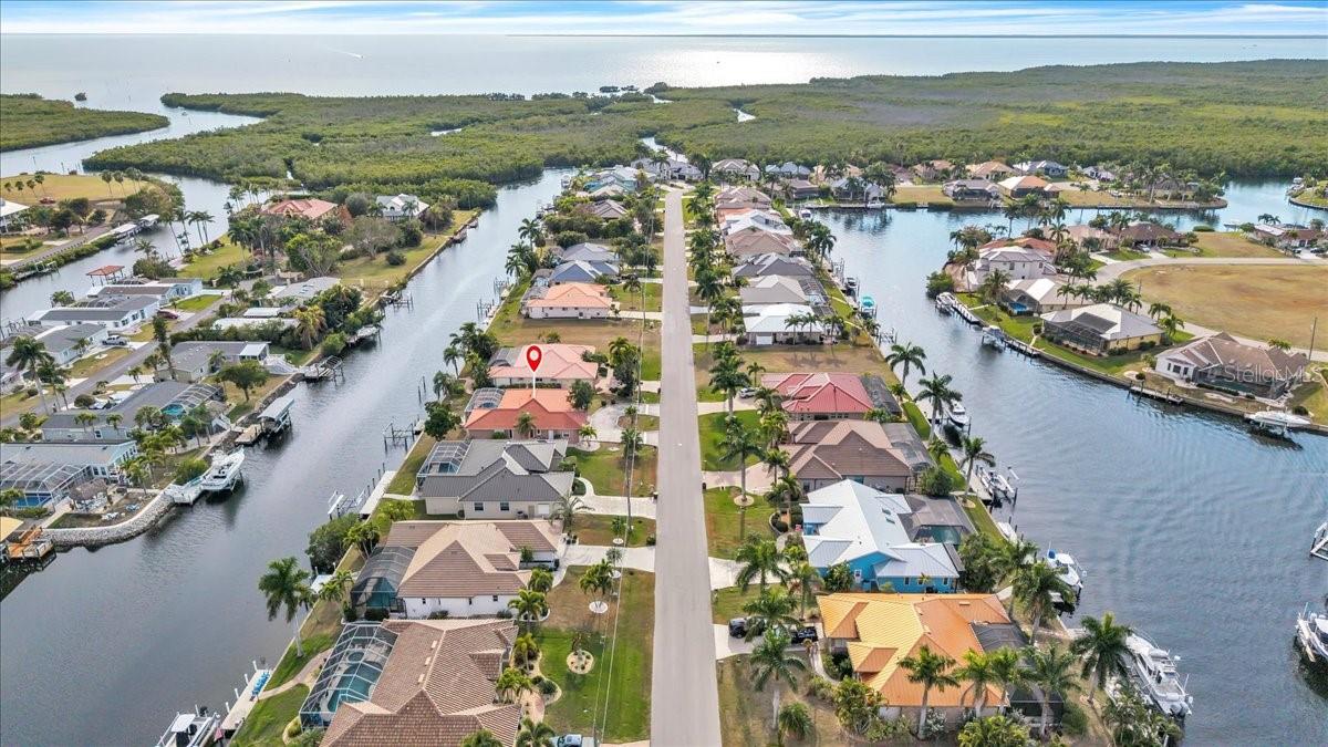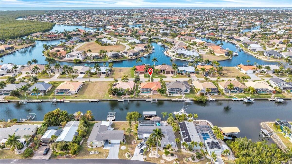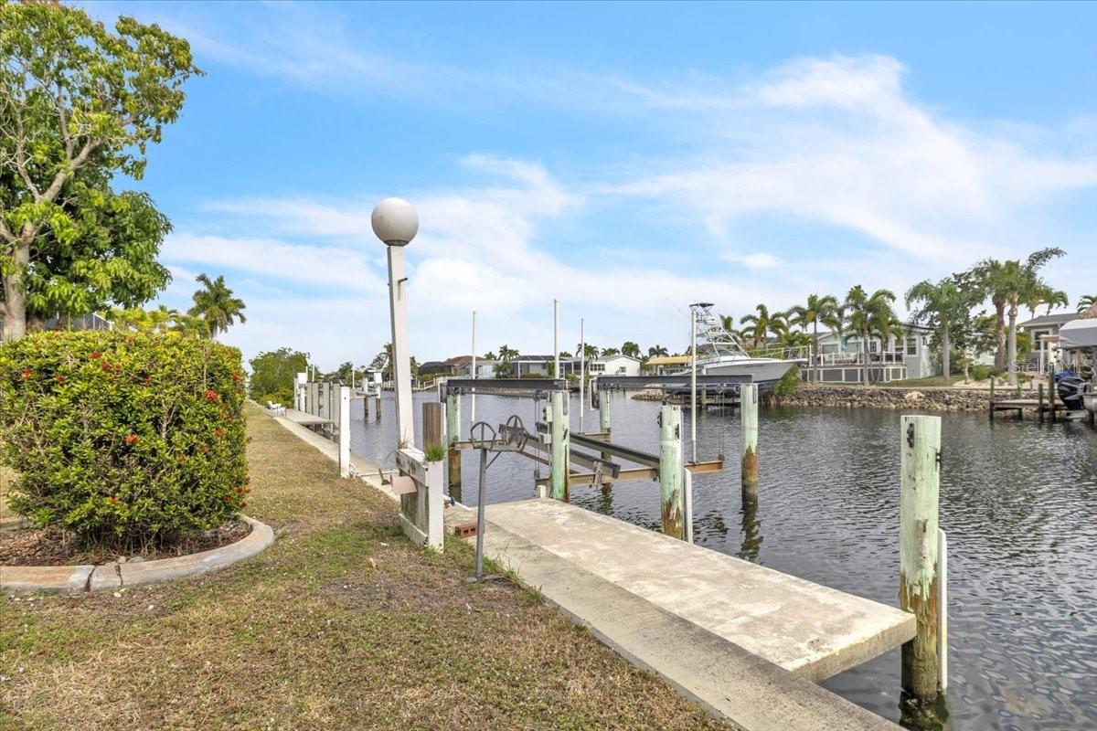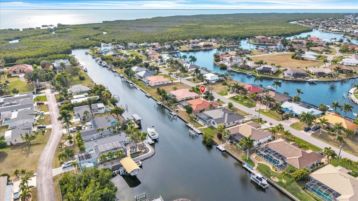 Waterfront Living in Punta Gorda Isles! Located in the highly desirable Punta Gorda Isles, this inviting 3-bedroom, 2-bathroom waterfront pool home offers lovely curb appeal with a spacious circular driveway, a 2-car garage, and mature tropical landscaping that complements its classic tile roof. Featuring 2,040 square feet of living space—including a welcoming family room - this home is designed for relaxed Florida living from the outside in. The property boasts 80 feet of waterfront with a city-maintained seawall for added peace of mind, along with a concrete dock equipped with a boat lift, water, and electric. Enjoy quick boating access to Charlotte Harbor and the Gulf of Mexico—making this a true haven for water enthusiasts. A sparkling pool and generous outdoor space complete the serene backyard setting, surrounded by well-kept neighboring homes in one of Punta Gorda’s most desirable waterfront areas. Upon entering the home you are greeted by soaring ceilings and a formal living and dining room. Sliders in the living room open the space up to the lanai pool area while the bright and welcoming dining room features a beautiful bay-style window that fills the space with natural light and offers a lovely view of the front landscape. Elegant chair-rail molding and decorative wall paneling add a touch of classic charm, while the neutral color palette makes it easy to complement any décor style. This spacious kitchen is perfectly designed for everyday living and entertaining, offering a seamless open view into the family room. Featuring sleek stainless-steel appliances, granite countertops, and an abundance of classic raised-panel cabinetry, the space feels bright, clean, and inviting. A convenient breakfast peninsula provides extra seating and prep space, while the adjacent dinette area is surrounded by natural light and offers direct access to the pool and lanai. Whether cooking, gathering, or enjoying casual meals, this kitchen serves as the central hub of the home with an effortless flow to the main living areas. The spacious primary suite offers private access to the pool area, a huge walk-in closet and features plush carpeting for added comfort. The attached bathroom offers a bright, modern feel with its crisp white cabinetry and dual sink expansive countertop. The highlight of the space is the large, beautifully tiled walk-in shower featuring a frameless glass enclosure with sleek fixtures. Two additional guest bedrooms are located on the opposite side of the home, providing privacy and comfort for family or visitors, and share a full guest bath. Step outside to your own private oasis featuring a covered lanai with ceiling fans for year-round comfort, overlooking a screened-in, sparkling heated swimming pool. An outdoor shower enhances the space, making it perfect for relaxing, entertaining, and fully embracing the Florida lifestyle. Additional highlights include an interior laundry room with utility sink and extra storage, plus a new A/C installed in 2025. Close to I-75/US41 and nearby to Fishermen's Village, downtown Punta Gorda shops & restaurants, great boating, fishing, sailing, and more. Come enjoy the Florida lifestyle in this PGI home. **PLEASE ENJOY THE 3D INTERACTIVE VIRTUAL TOUR ASSOCIATED WITH THIS LISTING**