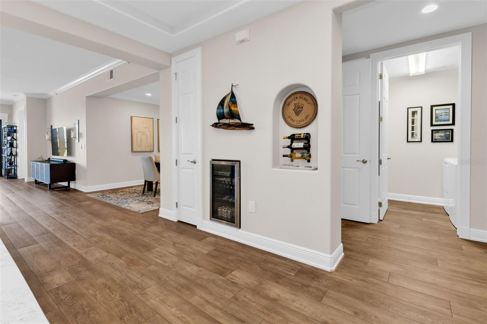 Waterfront Oasis with Deeded Slip! Nestled in the highly sought after area of Punta Gorda Isles, this exceptional waterfront residence combines timeless elegance with a contemporary twist. This beautifully renovated home features a large, stunning kitchen with quartz countertops, new appliances, lighting, and a center island. New luxury vinyl flooring, crown molding and plantation shutters throughout presents a warm, cohesive feel. A custom fireplace in the dining room truly sets this home apart. The spacious primary suite offers a generous walk in closet and well-appointed bath. The guest rooms offer privacy and a fully renovated guest bathroom. The updated lanai faces east allowing for evening enjoyment while watching dolphin and manatees in one of the widest canals in the area. The dock and slip are in view from the lanai and feature an updated 10,000 lb lift, new pilings, and a new water/electric pedestal. With unobstructed sailboat access to Charlotte Harbor and no bridges, you’re just minutes to open water boating. Over $124,000 in documented improvements have been invested into the residence, reflecting a meticulous standard of ownership. Additional improvements include new hurricane impact windows (2026), a 2022 water heater, complete air-conditioning replacement, interior paint, custom closet upgrades, and thoughtful updates throughout — creating a truly move-in-ready waterfront retreat. The building has also undergone significant enhancements, including a new roof, resurfaced heated pool, fresh exterior paint, driveway improvements, paver resealing, and updated dock power and water pedestals — reinforcing long-term value and structural integrity. Grand Cove offers elevator access, under-building parking, a heated pool, and maintenance-inclusive living. Ideally located in prestigious Punta Gorda Isles near golf, Fishermen’s Village, downtown dining, walking and biking paths, I-75, and Punta Gorda Airport.
