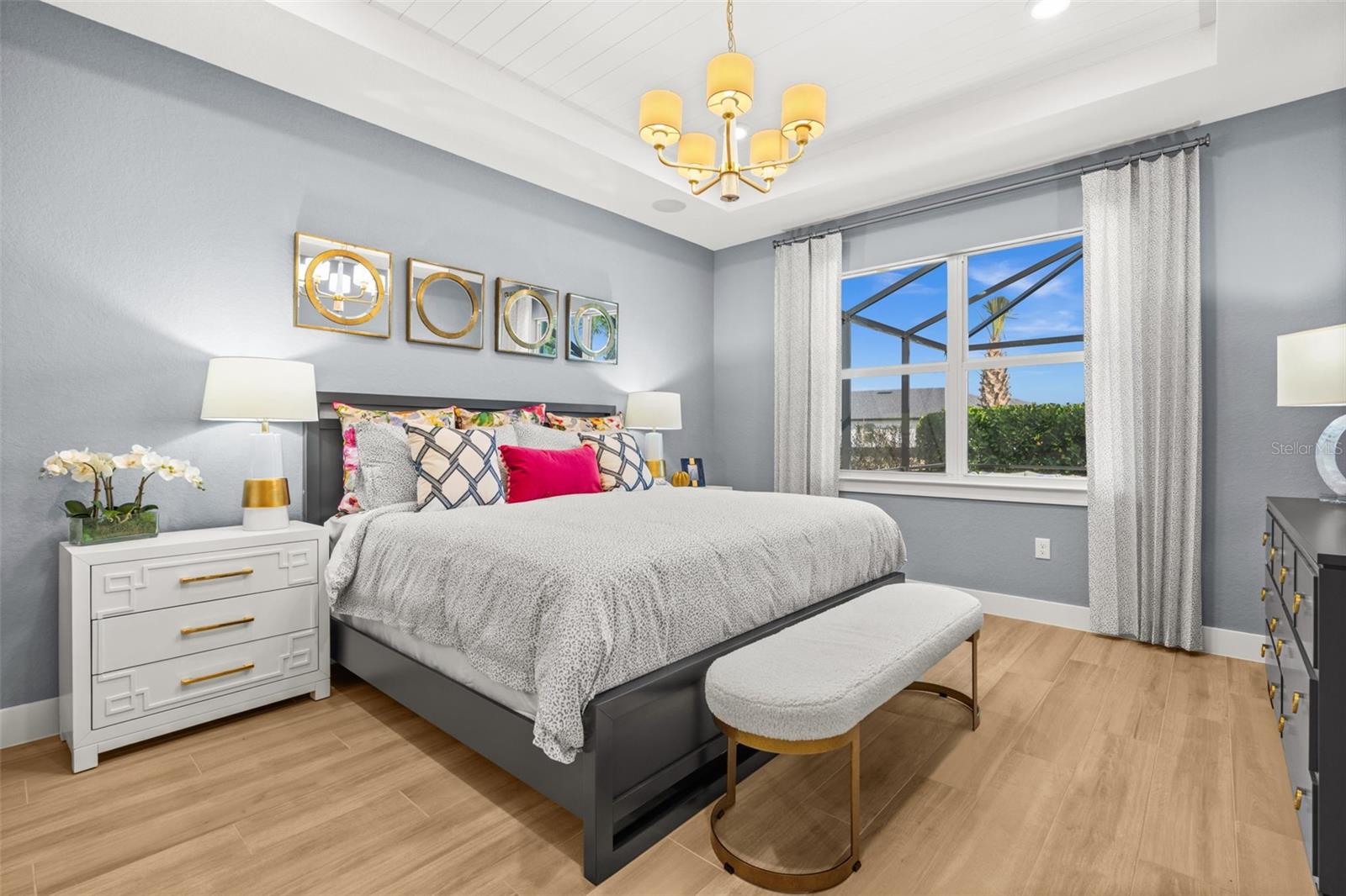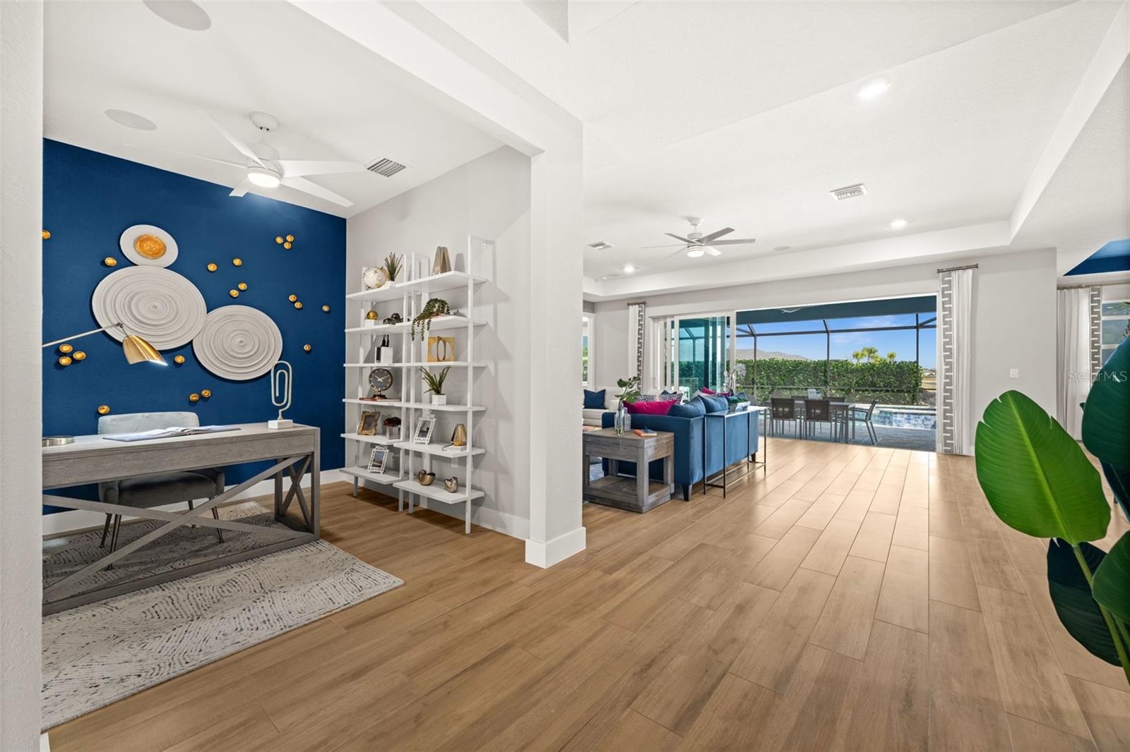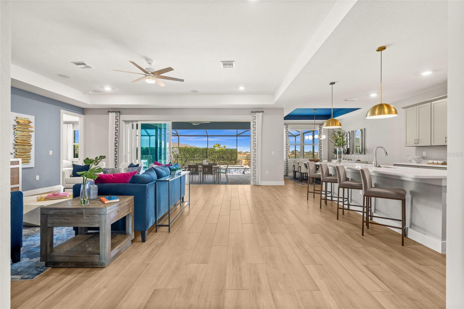 Experience the pinnacle of model home living in Babcock Ranch with this extraordinary Magnolia model by Christopher Alan Homes, located in the desirable Creekside Run neighborhood. This new construction home offers 4 bedrooms, a den, 2.5 baths, and a 3-car garage. This rare opportunity includes all designer furnishings, custom finishes, and stylish upgrades featured in the builder’s model. The kitchen is thoughtfully crafted with premium cabinetry, quartz countertops, and elegant lighting. The oversized island provides the perfect centerpiece for entertaining, gathering, and everyday living, all flowing seamlessly into the spacious great room and dining area. Custom carpentry details and carefully selected finishes elevate every space with warmth and sophistication. The spacious primary suite is a true private retreat, featuring generous proportions, designer accents, and a luxurious en-suite bathroom with two walk-in closets. Additional bedrooms, bathrooms, and the den are located near the front of the home, providing functional separation of living space for all. Oversized pocket sliding doors open to your screened backyard oasis, complete with a heated pool and spa designed for year-round Florida enjoyment. Whether hosting guests or enjoying peaceful mornings, this outdoor living space delivers the ultimate in privacy and relaxation. The expansive 3-car garage has epoxy floors and provides ample space for vehicles, storage, and hobbies. Impact rated doors and windows keep the home storm safe and energy efficient. As a builder’s model home, every detail has been professionally designed and executed, offering a rare opportunity to own a residence with the highest level of upgrades, craftsmanship, and style. Moving to Babcock Ranch means embracing an unparalleled lifestyle centered around nature, innovation, and community. Residents enjoy miles of scenic walking and biking trails, beautiful lakes, parks, community pools, vibrant social events, and a charming downtown district — all within America’s first solar-powered town. This is more than just a home — it’s a lifestyle defined by beauty, connection, and sustainable living. Up to $20K in Closing Cost Credit and conventional interest rate buy down for qualified buyers using CAH’s preferred lender and title company — ask for more details!