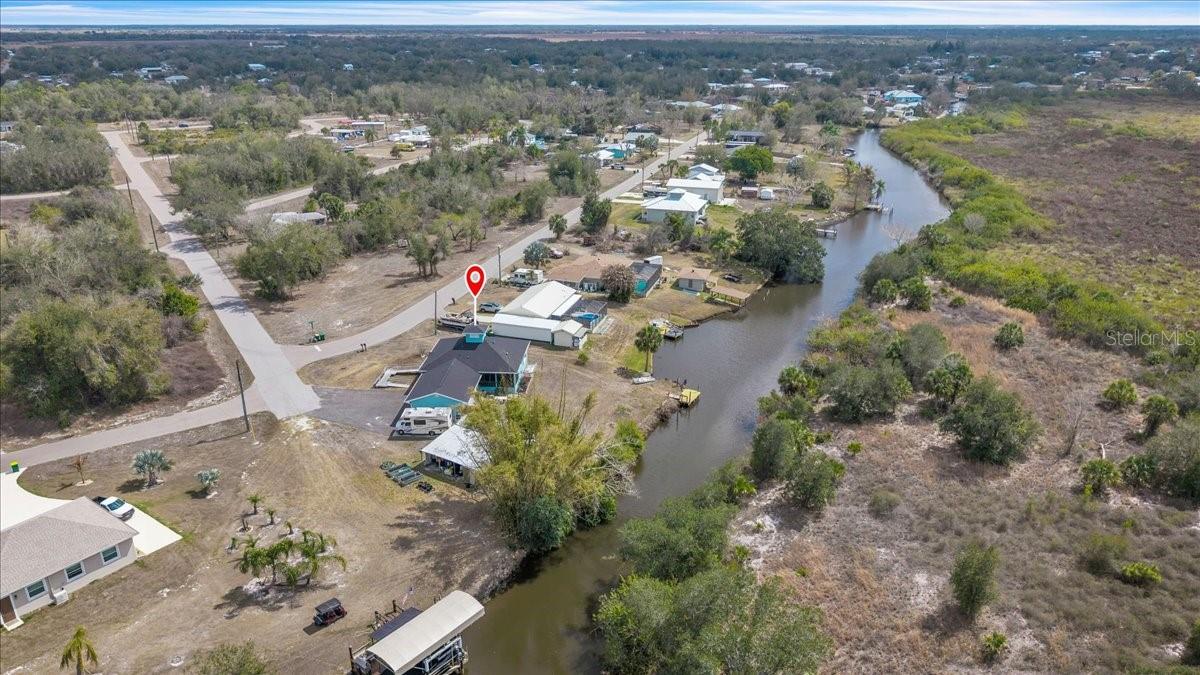 Welcome to Your Private Riverfront Retreat in Peace River Shores! Experience true Florida living with peaceful water views, wide-open skies, and the serenity of a riverfront lifestyle. The home is elevated above standard grade, providing added protection and peace of mind against flooding. Situated on an oversized lot, this charming 3-bedroom, 1.5-bath home offers 1,485 square feet of living space and an attached 2-car garage—perfectly blending comfort, privacy, and waterfront charm. The single-story home greets you with a bright, coastal-inspired exterior. A soft blue façade pairs beautifully with bold red doors and a matching garage, creating a warm, inviting first impression. A distinctive cupola crowns the roof, adding character, while a new roof installed in 2023 ensures peace of mind. A handicap ramp at the front door provides easy accessibility for all. Boating and nature enthusiasts will love the 175 feet of river frontage, complete with a new 6x13 pressure-treated wood dock, ideal for fishing, kayaking, or launching a boat. You have direct access through Lake Jim Long onto the Peace River, Charlotte Harbor, and the Gulf of Mexico—an exceptional opportunity for boating and water lovers. The property also features a 450 square foot insulated Quonset Hut with electric, A/C, LED lighting and workbench on cement floor, perfect for hobbies, projects, or extra storage. Additionally, the 32x22 oversized garage provides abundant space for vehicles, tools, and seasonal equipment, featuring a hurricane-code garage door, shutters, and LED lighting for added convenience and safety. A 28x14 parking pad offers room for your RV, boat, or additional cars. Inside, the open-concept layout is perfect for both everyday living and entertaining. The inviting kitchen overlooks the living and dining areas and features creamy beadboard-style cabinetry with glass-front display cabinets, stainless steel appliances, ample counter space, and a convenient breakfast bar. A large window over the sink fills the space with natural light, while tile and wood laminate flooring flow seamlessly throughout. French doors off the dining area open to a spacious screened-in lanai, extending your living space for year-round relaxation and entertaining. The primary bedroom offers two walk-in closets, while the adjacent bath features a walk-in shower and jetted soaking tub. One guest bedroom includes a new half bath, while the other is currently used as a hobby room or home office, providing flexible options for your lifestyle. The laundry area, located off the bathroom, includes a washer and dryer (2021) and utility sink. The home also boasts hurricane impact windows, shutters, and a 2019 A/C unit. Just minutes from the Peace River, this home also offers optional access to the Peace River Shores Community Association, including a private boat ramp, clubhouse, park, and picnic area—all for a one-time $250 membership fee and just $75 per year thereafter. Conveniently located near downtown Punta Gorda, restaurants, shopping, Fishermen's Village, Gilchrist Park, boating, community events, and entertainment, with I-75 and US-41 just a short drive away, this location combines tranquility with accessibility. Don’t miss your chance to own a piece of paradise in this quiet, close-knit riverfront community! **PLEASE ENJOY THE 3D INTERACTIVE VIRTUAL TOUR ASSOCIATED WITH THIS LISTING**