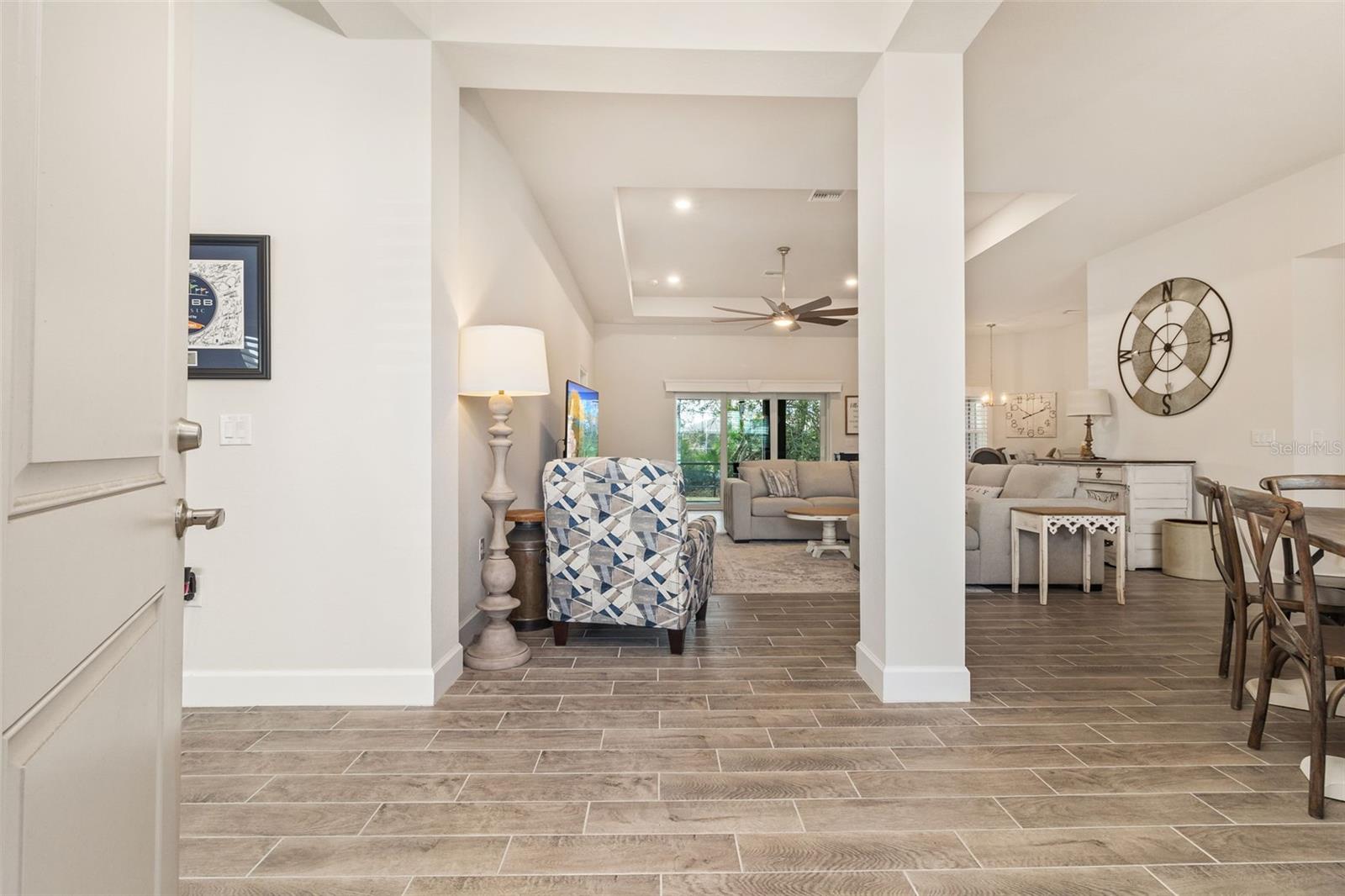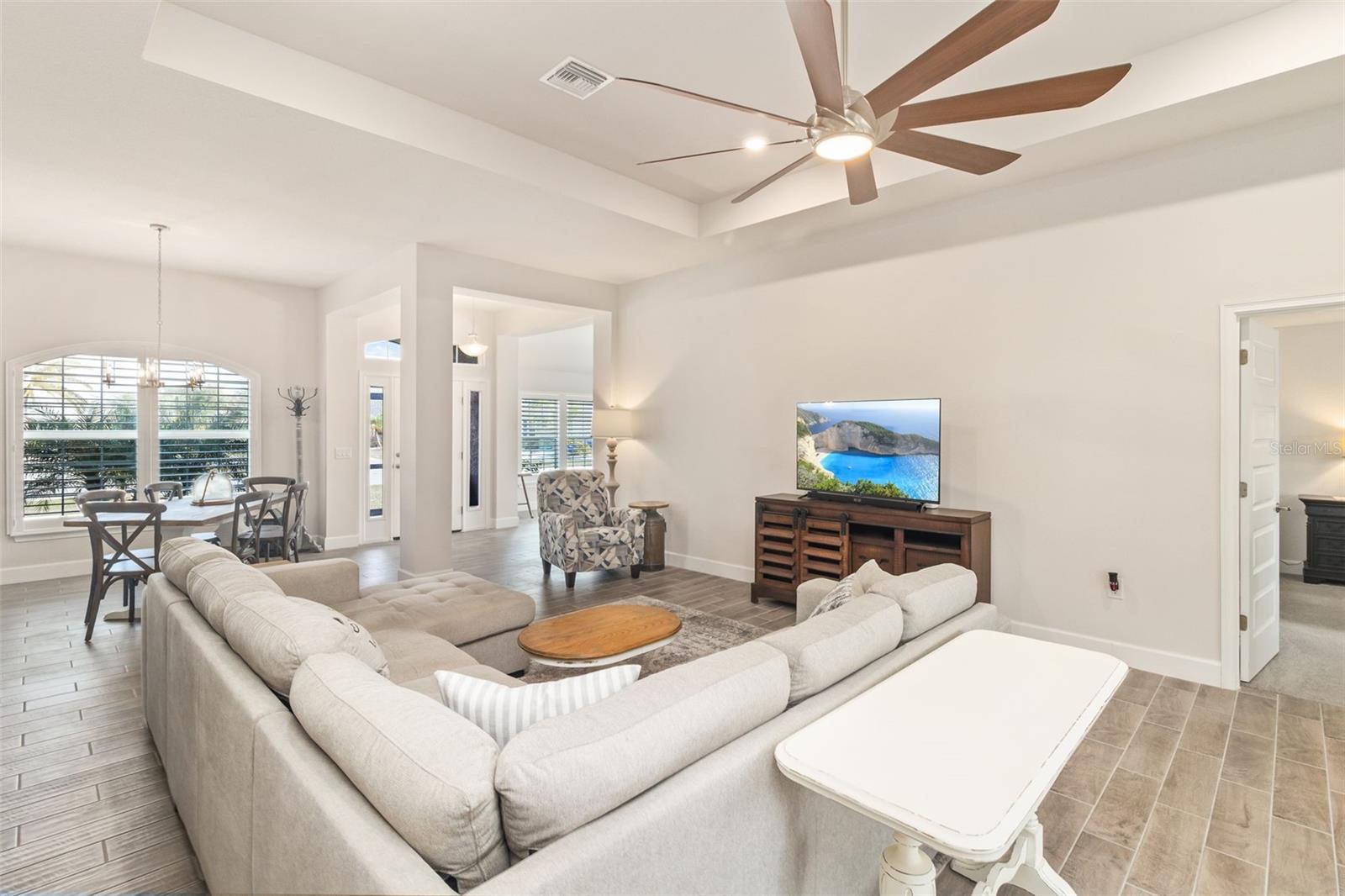 Welcome to the coveted 2265 model in Deep Creek — gracefully situated on an oversized cul-de-sac homesite with protected wooded views and an expansive greenbelt backdrop. Lightly lived in and impeccably maintained, this almost Brand New 4-bedroom, 3-bath, 3-car garage residence presents like new while offering enhancements no longer available through the builder. Homes of this caliber — especially this floorplan with the pool bath — are in constant demand, and once inside, the appeal is unmistakable. Designed with both elegance and functionality in mind, the open-concept interior showcases elevated finishes and thoughtful upgrades throughout. The kitchen serves as the heart of the home, featuring premium cabinetry, sought-after dual pots-and-pans drawers, and a built-in dual trash pull-out system — details that elevate everyday living and are no longer offered in new construction. Expansive 9-foot sliding glass doors, adorned with plantations blinds & custom motorized shades, open seamlessly to serene, preserved views — creating a up scale indoor-outdoor experience. Custom Plantation Shutters and designer ceiling fans enhance each space with timeless style and comfort. This residence is truly turnkey, including all appliances, washer, dryer, refrigerator, and garage door openers — allowing for effortless transition into your new home. This home even has the very hard to find Shower & Tub combo. in the Primary En-Suite Bathroom. Even the garage has been up upgraded with premium Epoxy Floors and a wash tub. Gutters & Downspouts have also been installed all around this home. When you buy a new house it takes time and expense to transform to a home, the features of this home are exquisite. Perfectly positioned just minutes from I-75 for convenient access, yet far enough removed to ensure peace and privacy, Deep Creek remains one of Southwest Florida’s most intelligently located communities — ideally nestled between Fort Myers and Sarasota.