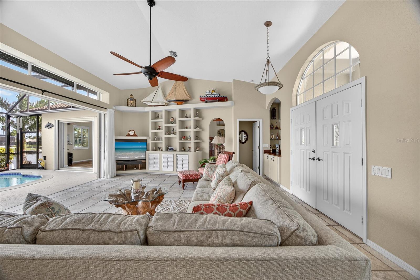 BEST INTERSECTING CANAL VIEWS IN PUNTA GORDA ISLES! BEAUTIFUL 3 BEDROOM, 2 BATH, 2-CAR GARAGE CUL-DE-SAC POOL HOME BUILT BY TIM TOWLES WITH QUICK SAILBOAT ACCESS TO CHARLOTTE HARBOR LEADING TO THE GULF VIA PONCE INLET OR ALLIGATOR CREEK! Watch the dolphins and parade of boats pass through the intersecting waterway on their way to open water. A boater’s dream offering 105’ of waterfrontage on a dredged large deep-water canal, 30’ concrete dock complete with water and electric plus 10,000 lb. boat lift. Inviting open floor plan features high ceilings, transom windows for an abundance of natural light, large pocketing slider seamlessly blending the indoor and outdoor living spaces, formal dining room, neutral décor, easy-care tile flooring in the main living areas, and a living room outfitted with a built-in entertainment center and wet bar showcasing a custom African Mahogany countertop. Well-appointed kitchen includes white cabinetry, granite counters, tile backsplash, built-in desk, wine refrigerator, breakfast bar plus breakfast nook. Generous primary offers direct access to lanai/pool, tri-color oak flooring, his and her walk-in closets and ensuite bath with dual vanities, soaker tub, tile walk-in shower and water closet. Split floor plan ensures maximum privacy, featuring two guest bedrooms and a shared updated bathroom that conveniently doubles as a pool bath. All three bedrooms feature plantation shutters, offering both timeless style and excellent light control. Step outside to the covered lanai, perfect for entertaining or soaking up the sun, and enjoy the newer screened pool, complete with an outdoor shower, all with true eastern exposure offering unobstructed views of gorgeous sunrises and stunning intersecting water vistas. Plus, there's a convenient storage closet to keep everything organized and within reach. The backyard is a true waterfront haven, featuring a newer aluminum fence and a charming pathway that guides you to two private docks. One with a boat lift, water and electric hookups, and even a convenient fish cleaning station. Additional features include new hurricane-rated windows paired with accordion shutters at the rear as well as accordion shutters for front door, new stone coated steel roof with a 40-year transferable warranty, and epoxy flooring in the garage. Meticulously maintained with pride in ownership! One of the quietest streets nestled in popular golf and boating community close to St. Andrews South Golf Club, The Yacht Club, Fishermen’s Village, award-winning fishing, beautiful parks, walking and biking paths, fine dining, shopping and downtown historic Punta Gorda with community events and entertainment. Don’t miss the opportunity to make this fabulous home your new snowbird retreat or permanent residence. Schedule your private showing today!