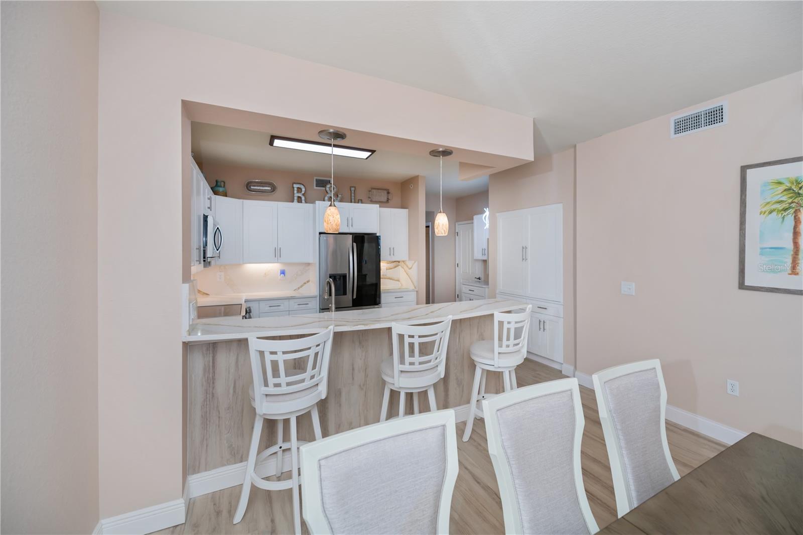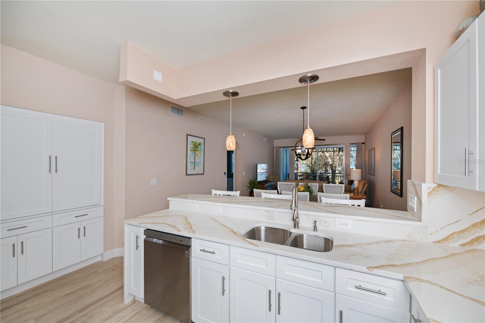 Welcome to your island sanctuary in The Preserve at Charlotte Harbor—a stunning 1st-floor Key West-inspired condo that radiates laid-back luxury with a huge touch of flair! This beautifully renovated 3-bedroom, 2.5-bath retreat boasts $150k in custom upgrades, creating a private oasis that feels like paradise the moment you step inside. Step into an airy, open floor plan where soaring ceilings and graceful arched entryways greet you, complemented by chic plantation shutters and rich luxury vinyl flooring that flows seamlessly throughout. The chef’s kitchen is a masterpiece of modern design—white shaker cabinetry, sleek quartz waterfall countertops, brand-new stainless steel appliances, and a bespoke coffee and wine nook crafted with built-in cabinetry that blends style and function. The inviting breakfast bar beckons for casual dining, while the adjacent elegant dining and living areas open effortlessly to a large screened balcony. Here, you can soak up serene views of mature shade trees and lush tropical landscaping, perfect for evening cocktails or a morning breeze. Escape to your Zen-inspired primary suite where a tray ceiling and private patio access set the mood for relaxation. Gleaming ensuite bathrooms boast dual walk-in closets, dual vanities, a full shower, and an adjacent flex space ideal for a cozy office, dressing room, or reading nook. Your guests will feel right at home with two spacious bedrooms, one offering direct access to a guest bath—ideal for privacy and comfort. Beyond the gorgeous interiors, enjoy conveniences like inside laundry with brand-new washer and dryer, covered deeded parking, guest spaces, and a sprinkler system for lush landscaping. The resort-style lifestyle is yours with amenities including a clubhouse, putting green, heated pool and spa, fitness center, gas grills, and a serene library. Condo fees cover all the essentials: cable, internet, water, sewer, elevators, grounds, gated entry, and full access to all community luxuries. This coveted location places you just minutes from the sparkling waters of Charlotte Harbor and the Sun Seeker Resort, offering endless boating, fishing, and easy access to the charm and culture of historic downtown Punta Gorda. Punta Gorda airport, Boutique shopping, specialty dining, golfing, art district, farmers markets, music, festivals/events and more are closeby. Step into island elegance and vibrant coastal living—your Key West getaway awaits!