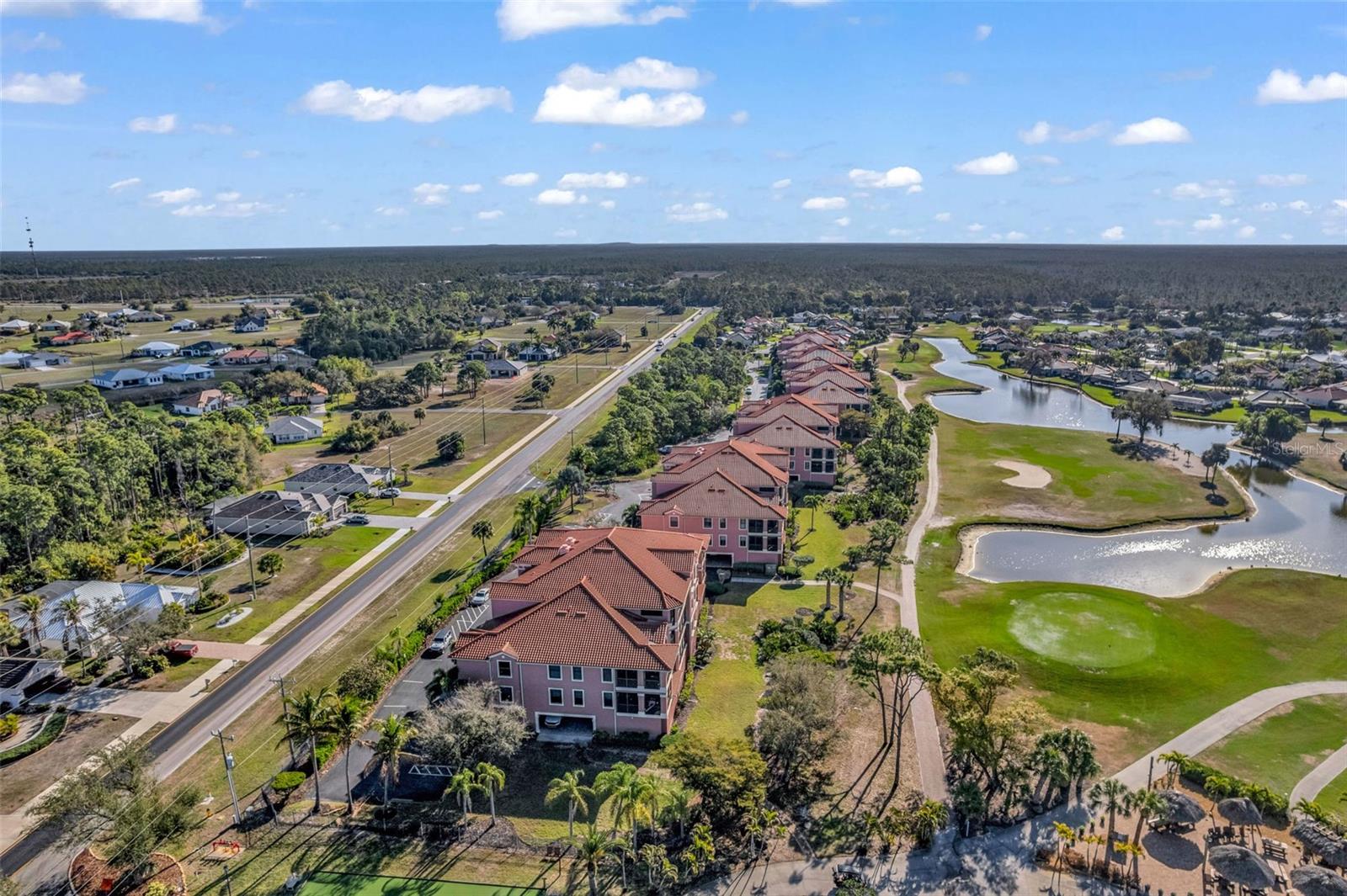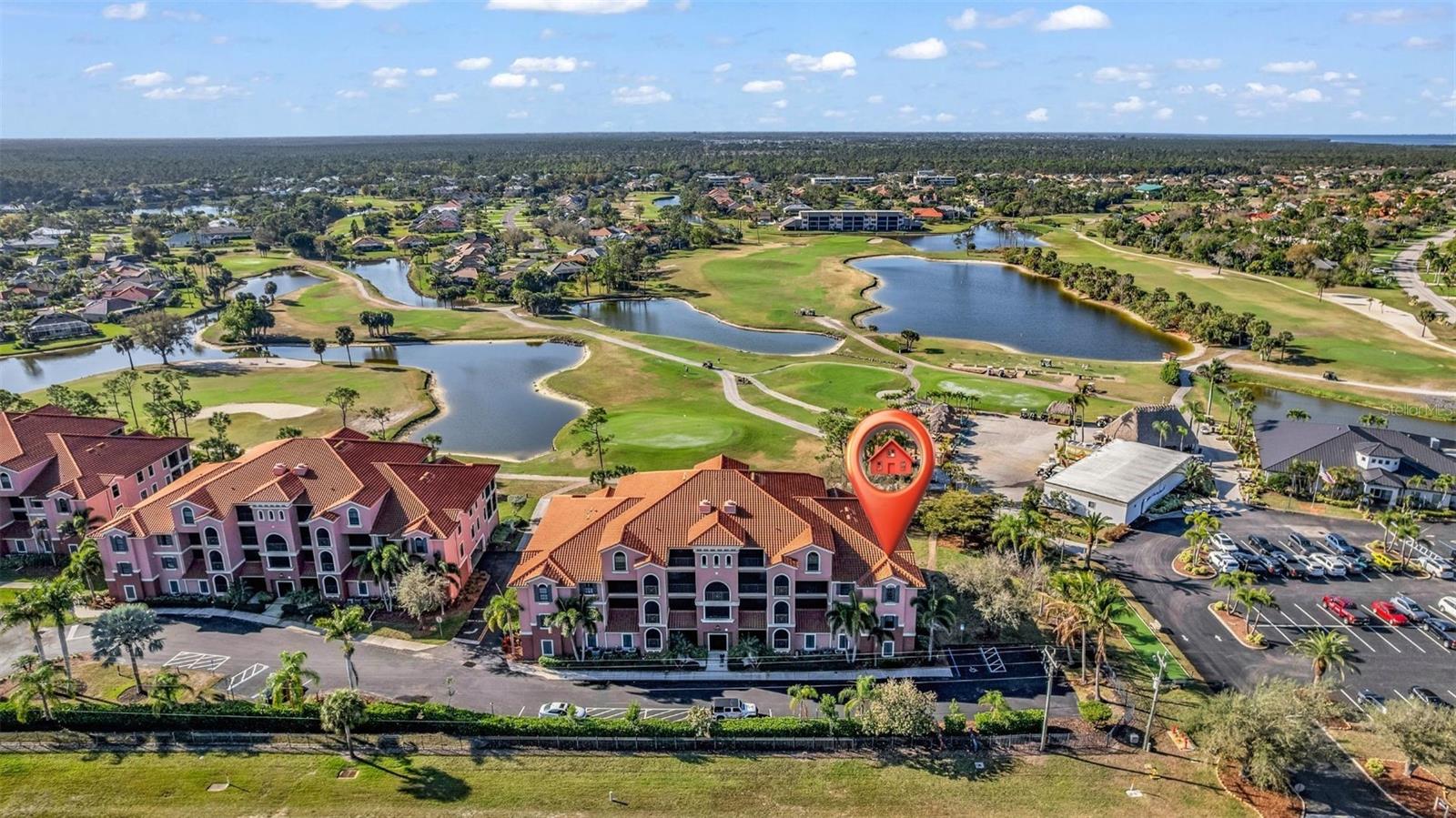 Welcome to Esplanade, featuring this pristine, 3rd FLOOR, END-UNIT, TURNKEY, 2-bedroom, 2.5-bathroom, den/office/media room residence located in the amazing Burnt Store Marina gated community! Each Esplanade unit has an oversized TWO-CAR garage, and this particular unit boasts an EXTRA GOLF CART GARAGE AND GOLF CART! The condo offers soaring ceilings and 3 additional living-room windows that enhance the bright, airy feel of its 1,852-square-foot space. Let's talk equity! The complex features a new roof, blacktop, landscaping, and exterior paint, all completed in 2023. The cook will delight in a large, updated kitchen with solid-wood cabinetry and stylish granite countertops. Your favorite spot will likely be the oversized screen lanai with views of the golf course, its amenities, abundant wildlife, and beautiful ponds. The lanai has hurricane shutters for storm protection, or just to keep the sun at bay during those hot afternoons. Esplanade Condominiums showcase gorgeous Mediterranean architecture, as well as a private resident pool, spa, and fitness room. This is a quiet, gated community where you can enjoy all that Burnt Store Marina has to offer - 3 onsite restaurants, the largest marina in Florida's Gulf Coast, 27 holes of executive golf, fitness center, Freedom Boat Club, and so much more. Esplanade at Burnt Store Marina is waiting for you!